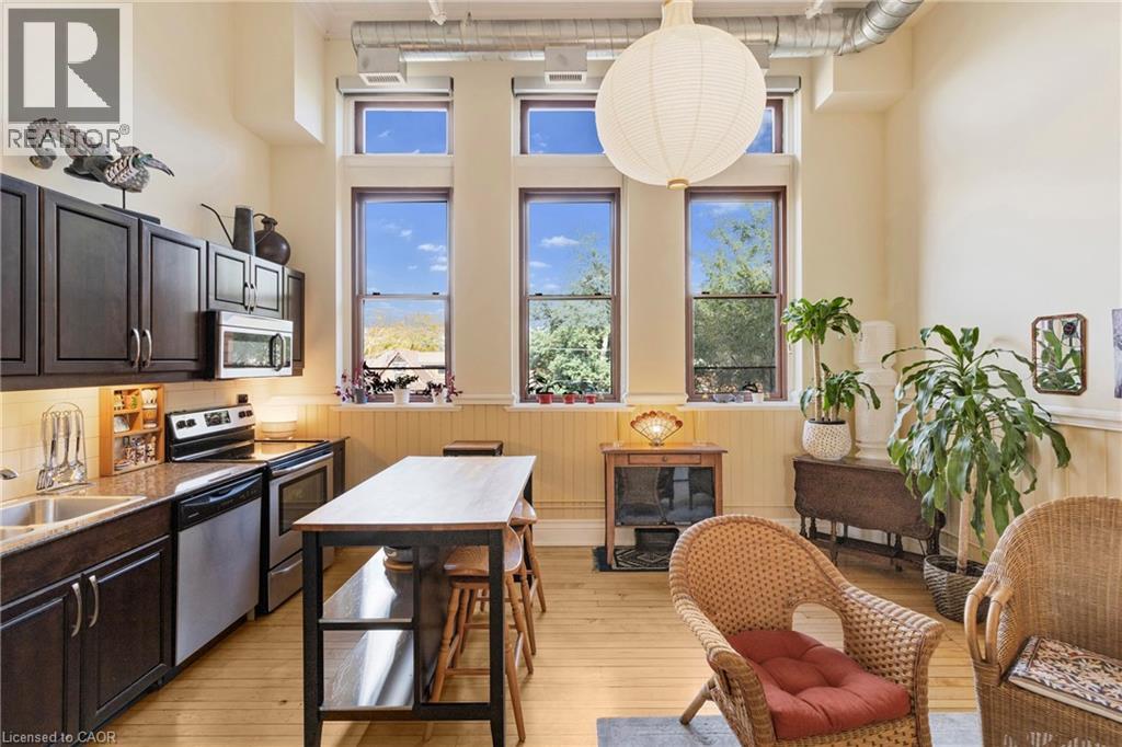 $531.97 MonthlyWelcome to the historic Stinson School Lofts, where heritage charm meets modern living. This bright and airy studio loft features soaring 13 foot ceilings, original hardwood floors, and oversized windows that flood the space with natural light. Designed for convenience and character, this open concept suite offers in unit laundry, all major appliances, and an assigned parking spot in the rear lot. Perfect for students, professionals, or down-sizers, this unique loft sits steps from the Bruce Trail, GO Station, and public transit with direct routes to McMaster University, Ancaster Meadowlands and Stoney Creek. Situated between three major hospitals and close to downtown, it’s an ideal spot for commuters or anyone seeking a walkable, connected lifestyle. Experience the charm of an 1800s schoolhouse reimagined into modern, boutique style living in one of Hamilton’s most iconic condo buildings. (id:51158)