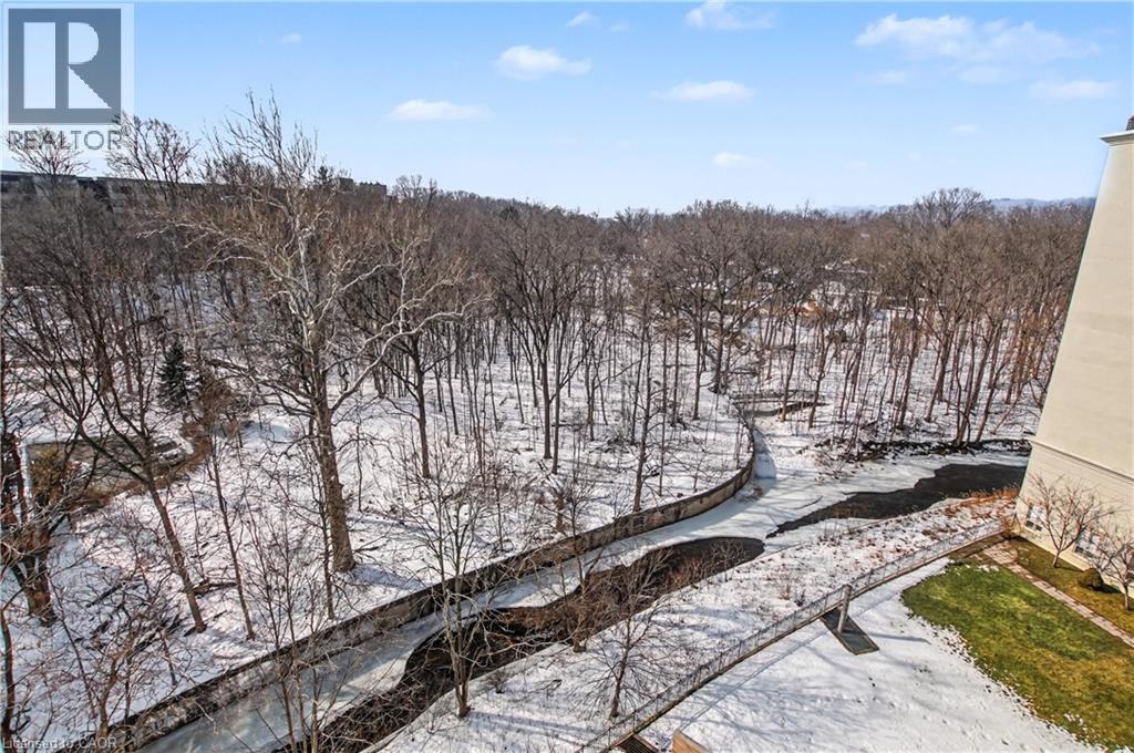$654.63 MonthlyWelcome to Spencer Creek Village. This luxury condominium has much to offer! The suite itself has been updated and includes 1 bed + den, 2 baths; one of which is a private ensuite. Updates include kitchen cupboards, granite counter, all kitchen appliances, moveable coffee station with cupboards, sink and faucet; flooring in living and dining room. The spacious primary bedroom offers a walk-in closet. Enjoy outdoor time on your balcony which offers southern exposure and picturesque views of the ravine. The condo fee includes just about everything: heat, water, Bell fibe TV, and high speed internet! Condo amenities include card room, social room, library, exercise room, bike storage, underground parking and locker. Located steps from walking trails, local attractions and all that the charming village of Dundas has to offer. Call today for your personal showing! (id:51158)