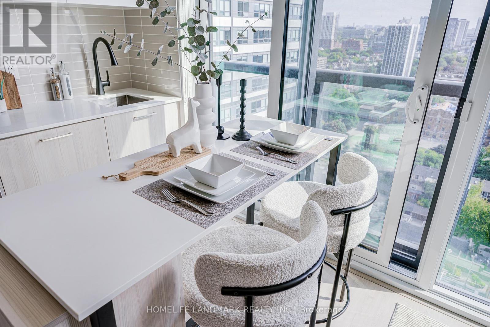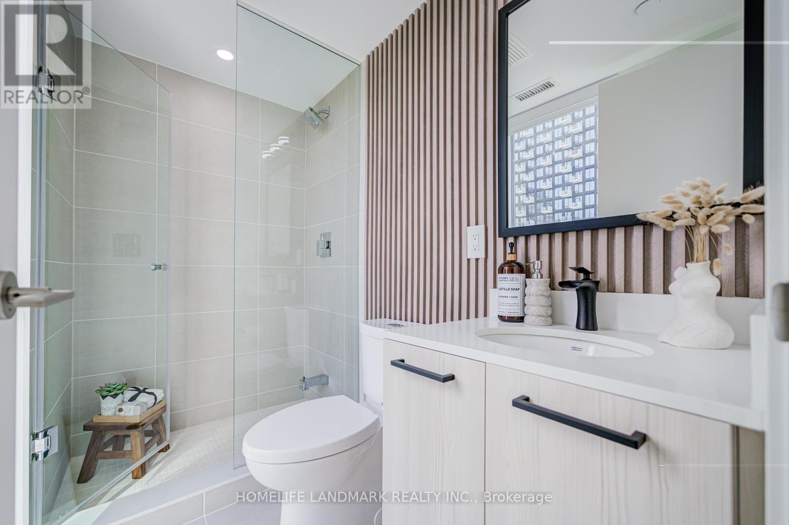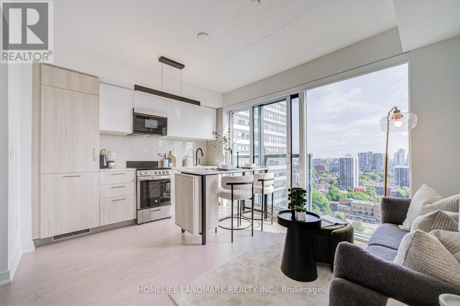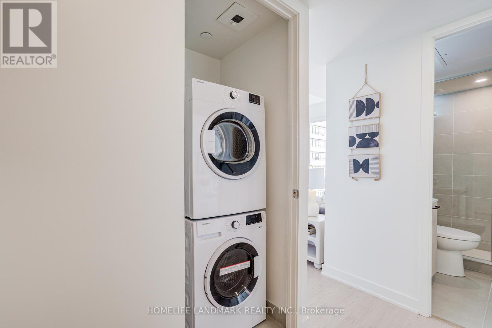 $494.96 MonthlyIn the heart of the Church/Yonge Corridor, you're steps to the subway, TMU, Eaton Centre, restaurants, parks, and a new No Frills. This bright, east-facing 2-bed/2-bath split layout showcases floor-to-ceiling windows that flood the space with natural light and provide unobstructed city and partial lake views. The primary bedroom features a rare windowed 3-pc ensuite; both bathrooms have added wall panels, and updated accessories. A modern kitchen anchors the living area with a versatile island that doubles as a dining table, built-in appliances, stylish LED lighting, and ensuite laundry. (id:51158)
