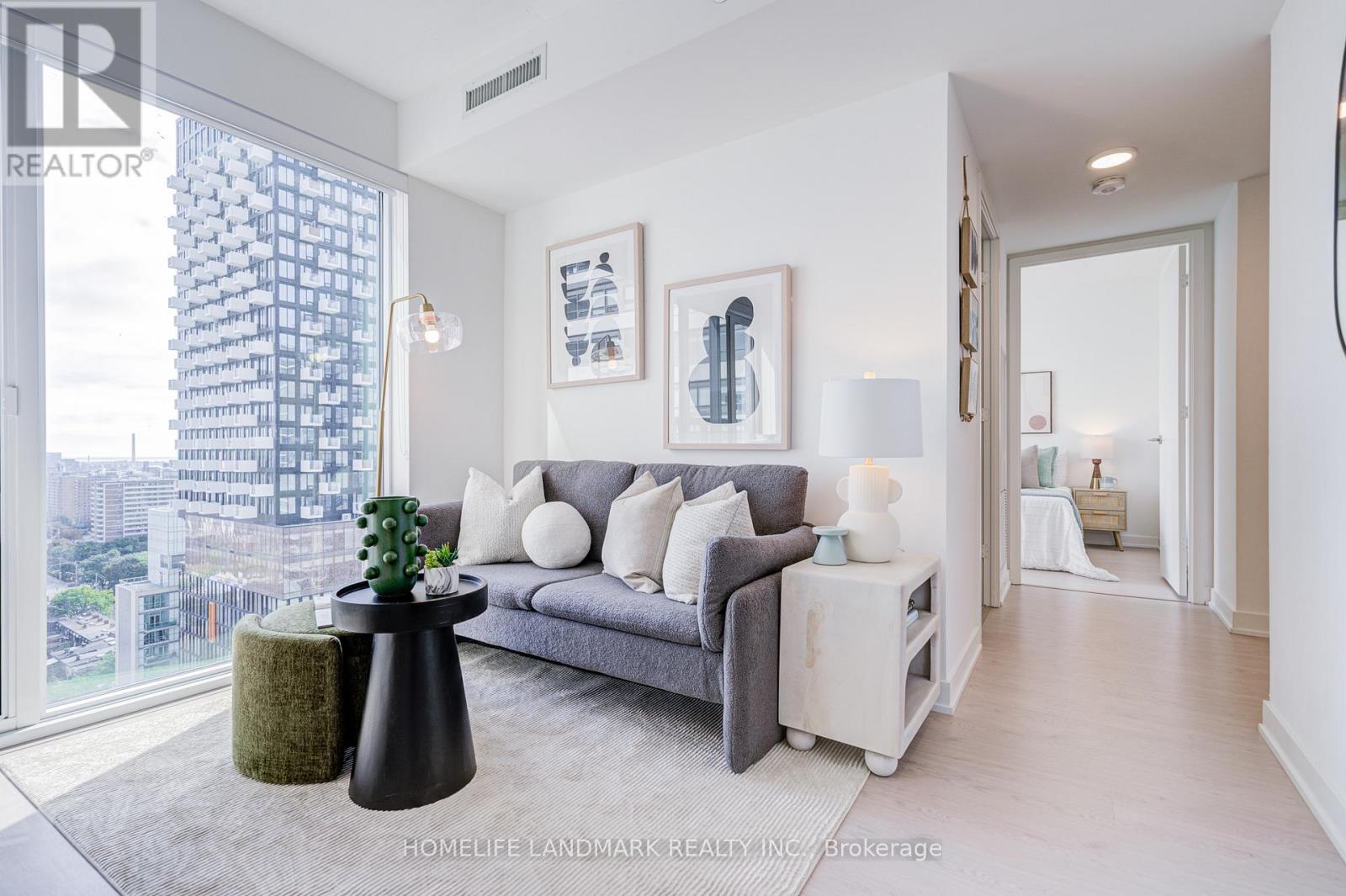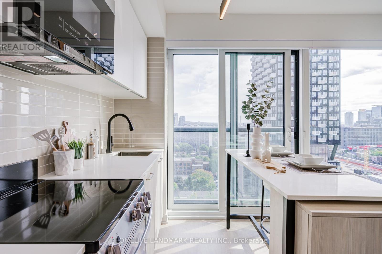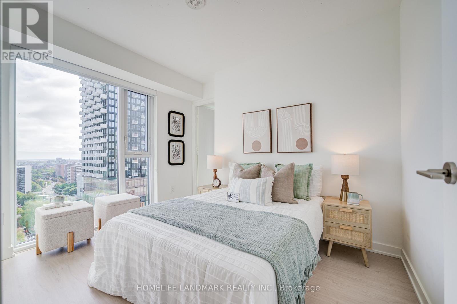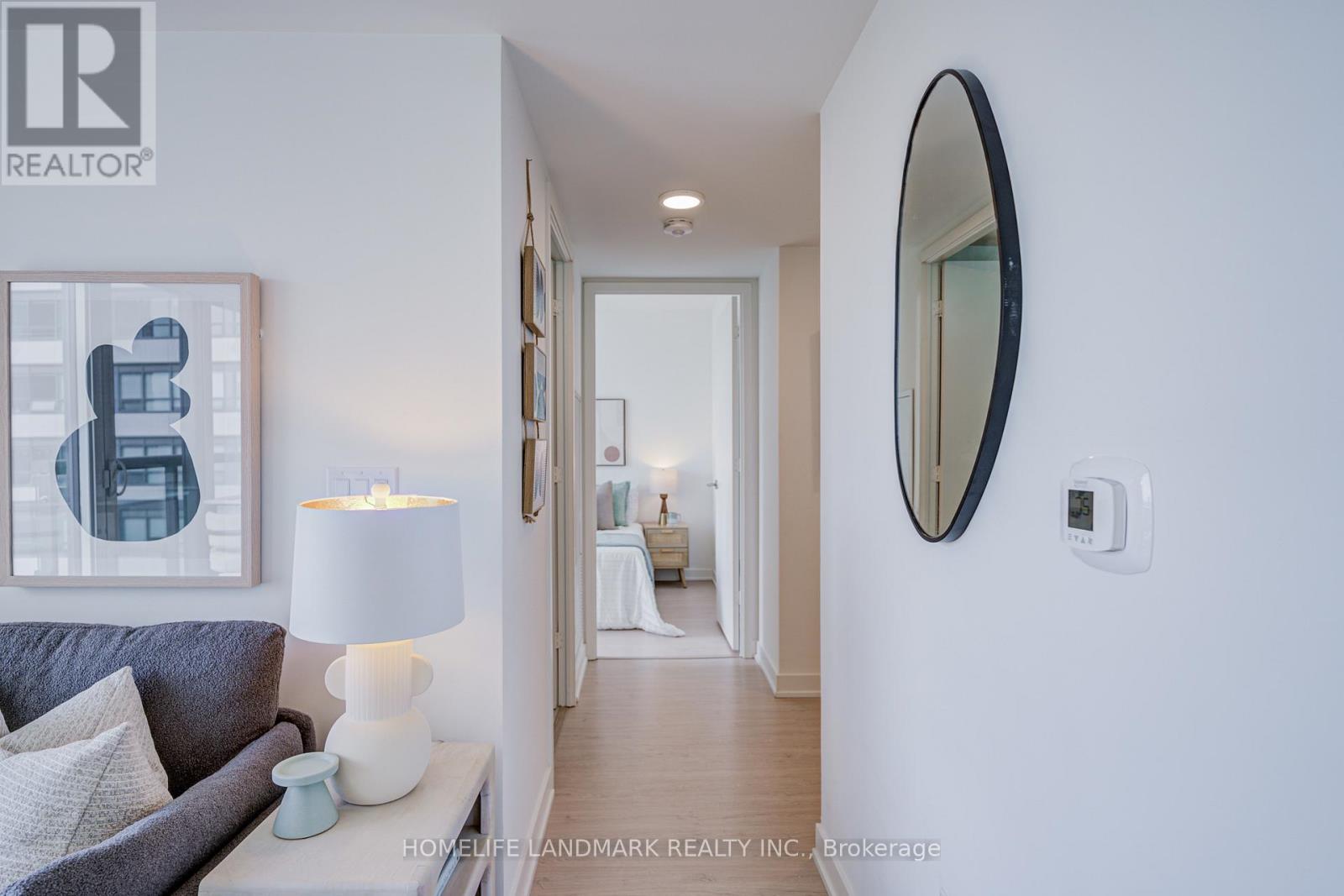 $494.96 MonthlyIn the heart of the Church/Yonge Corridor, you're steps to the subway, TMU, Eaton Centre, restaurants, parks, and a new No Frills. This bright, east-facing 2-bed/2-bath split layout showcases floor-to-ceiling windows that flood the space with natural light and provide unobstructed city and partial lake views. The primary bedroom features a rare windowed 3-pc ensuite; both bathrooms have added wall panels, and updated accessories. A modern kitchen anchors the living area with a versatile island that doubles as a dining table, built-in appliances, stylish LED lighting, and ensuite laundry. (id:51158)