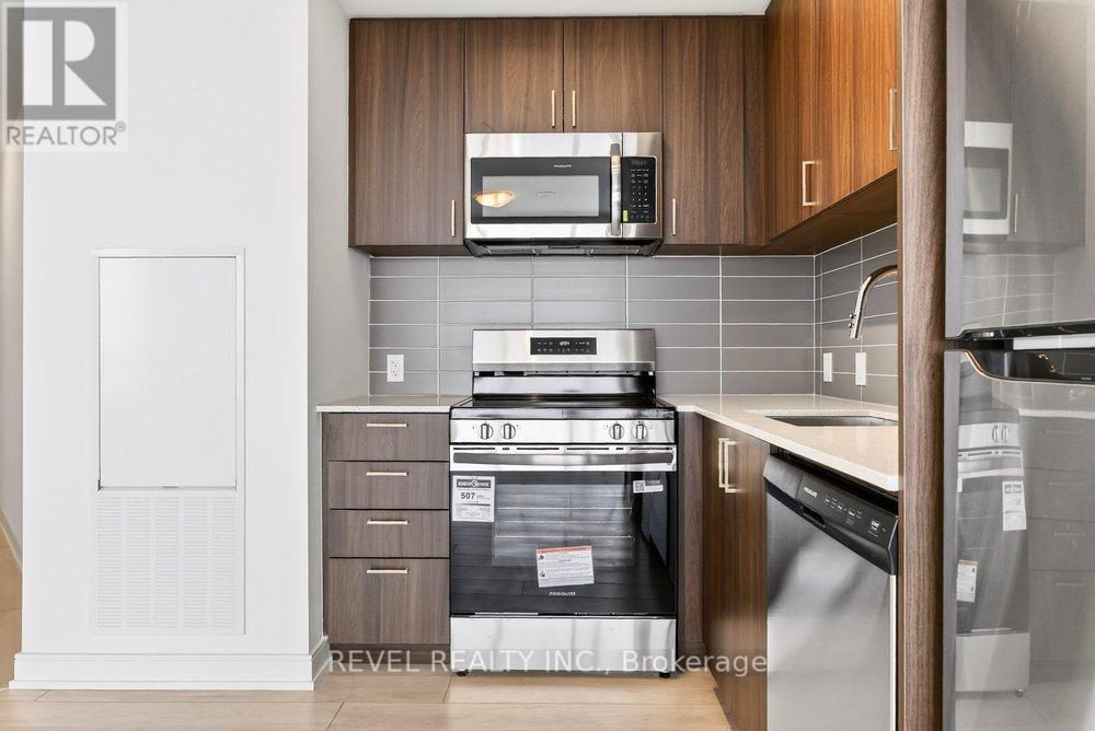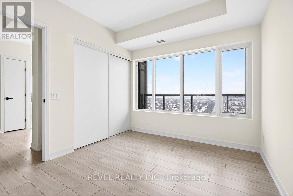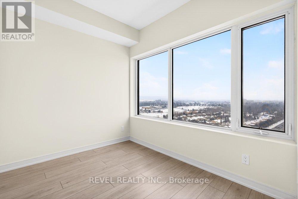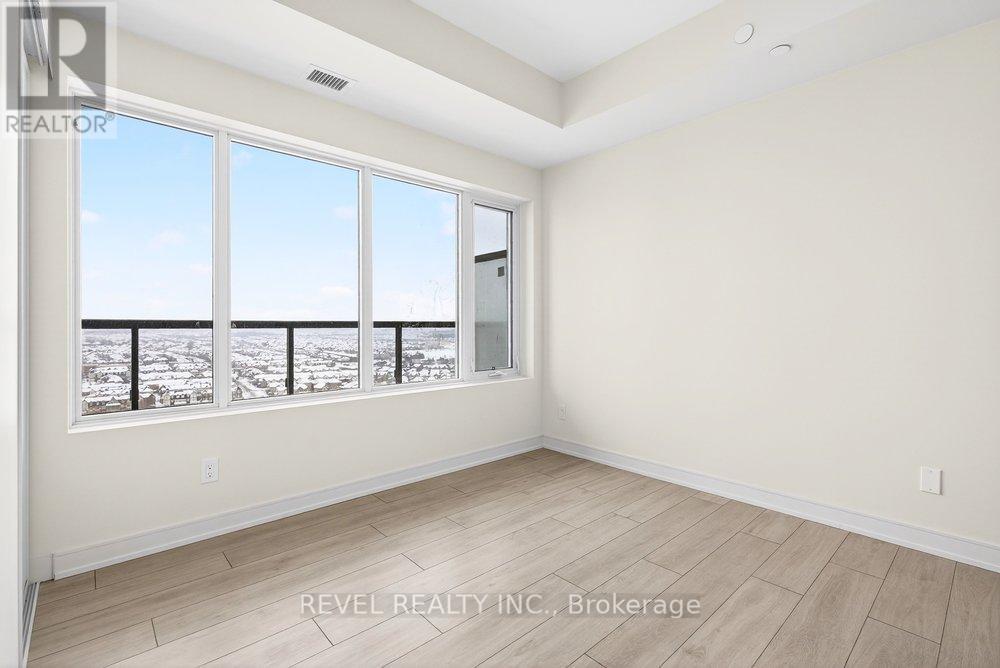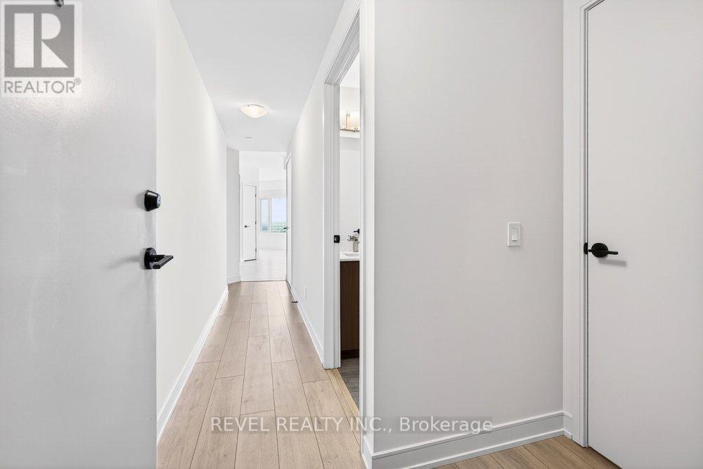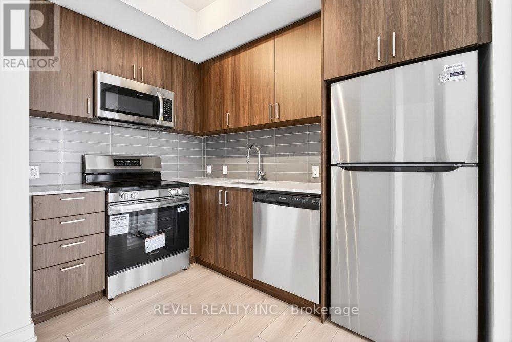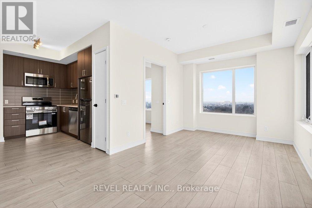 Experience elevated condo living in this never-occupied 2-bedroom corner suite at 8020 Derry Road, Unit 2003. Situated on the 20th floor, this newly built 2025 residence offers 904 sq ft of thoughtfully designed living space and breathtaking, unobstructed views that truly set it apart. Located in one of Milton's fastest-growing and most convenient neighbourhoods, this home combines modern style with everyday practicality.The building welcomes you with a sleek, hotel-inspired lobby, perfect for hosting guests or casual meetups. Inside the suite, a bright open-concept layout seamlessly connects the kitchen, dining, and living areas, complemented by wide-plank laminate flooring in a warm, contemporary wood tone. Floor-to-ceiling picture windows flood the space with natural light, while the north-facing balcony offers a peaceful outdoor escape and spectacular panoramic views from the 20th floor, with the rare bonus of enjoying both sunrise and sunset skies.The modern kitchen is as stylish as it is functional, featuring full-height flat-panel cabinetry, stainless steel appliances, a chic tile backsplash, and ample storage-ideal for both daily living and entertaining. The spacious primary bedroom includes a walk-in closet and private 3-piece ensuite, while the well-sized second bedroom boasts a large window and convenient access to a full 4-piece bathroom. Additional highlights include in-suite laundry, neutral finishes, and a well-planned, efficient layout throughout.Residents enjoy an impressive selection of amenities, including a fully equipped fitness centre, party room, theatre, children's playroom, pool, and outdoor BBQ area. Perfectly located near Highway 401, transit, shopping, restaurants, parks, trails, and schools, this 20th-floor, move-in-ready condo offers exceptional views, comfort, and connectivity in a vibrant and growing community. (id:51158)