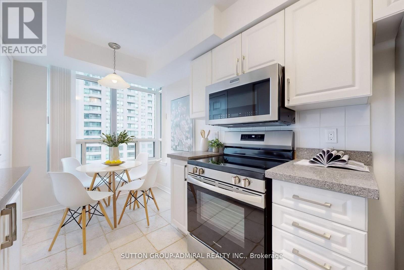 $797 MonthlyLocation!! Location!! Location!! Welcome to "The Pinnacle" Condos in the heart of North York at Yonge & Sheppard! This prestigious, well-maintained building boasts a 99 Walk Score and offers a 24-hour concierge. This beautifully renovated, bright, and spacious unit features stunning northwest views of Mel Lastman Square & North York Civic Centre. The functional split-bedroom layout includes an updated cozy kitchen with granite counters & a breakfast area, brand-new laminate flooring, updated bathrooms, and fresh paint-this unit is truly move-in ready! The huge combined living & dining area opens to a balcony, while the primary bedroom boasts a 4-pc ensuite & large closets, alongside a spacious second bedroom and an additional 4-pc bath. Enjoy direct subway access and walk to Empress Walk, Loblaws, Cineplex, shops, restaurants, bars, and North York Library, all just minutes from Hwy 401. (id:51158)