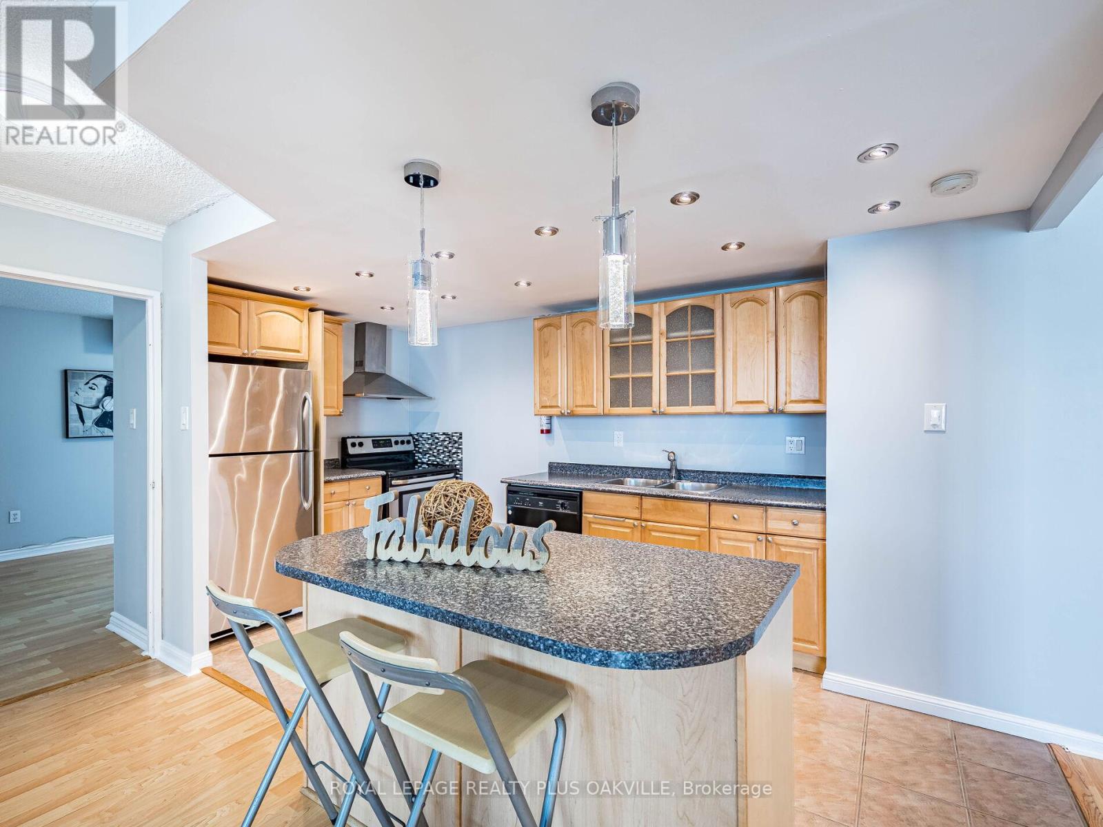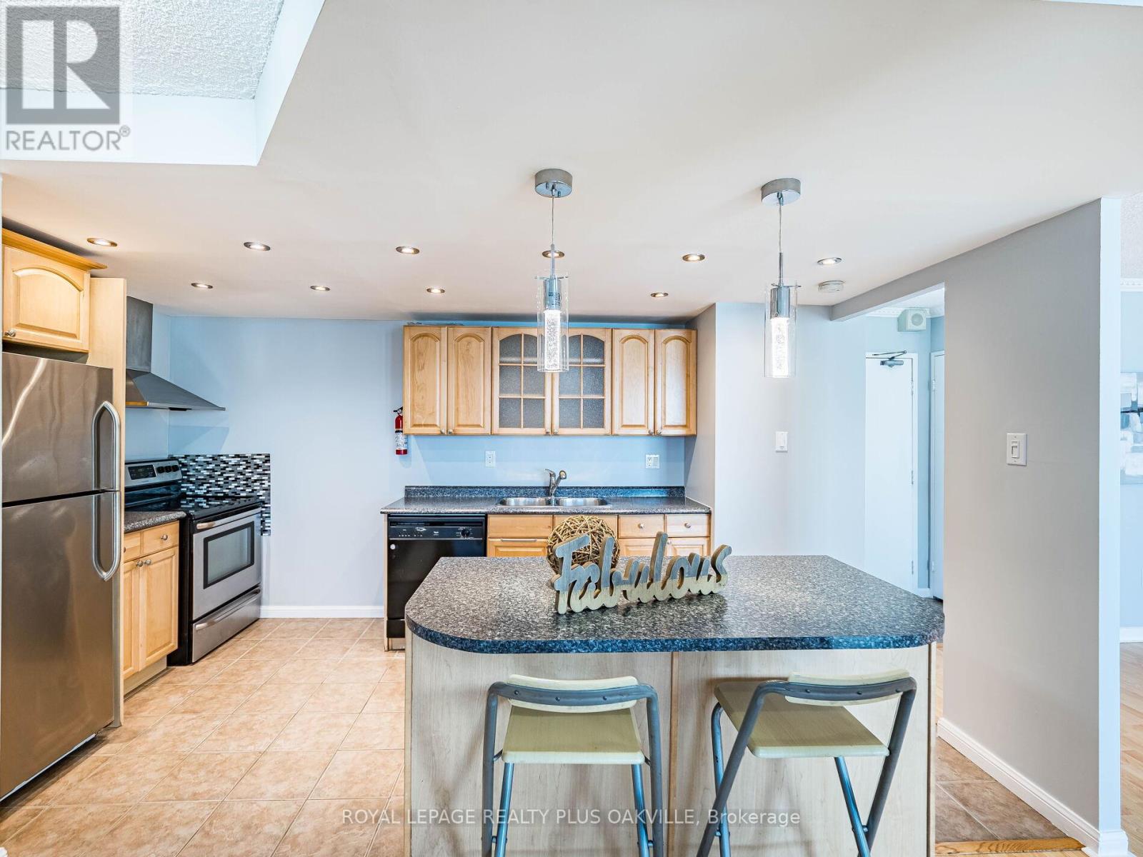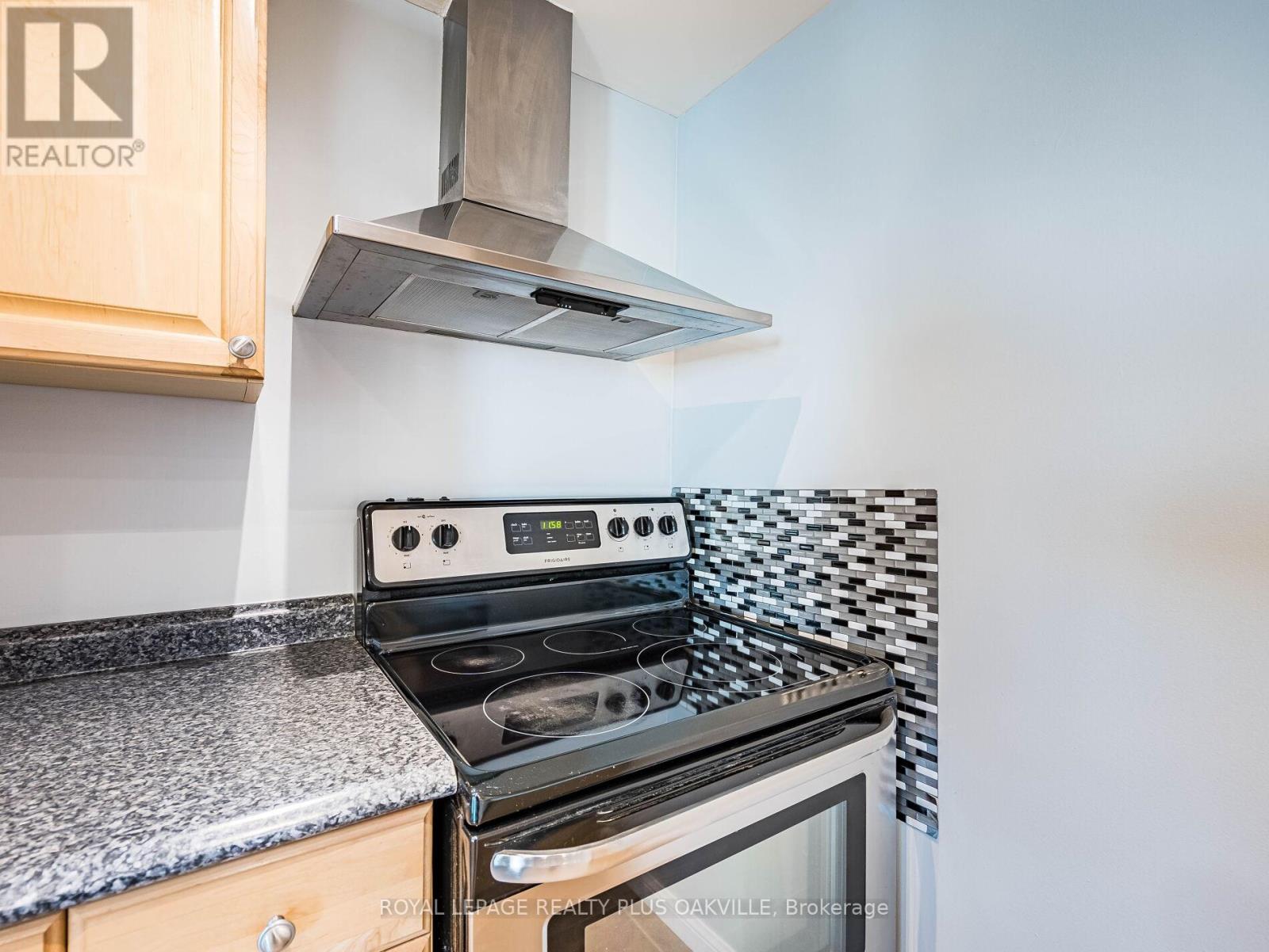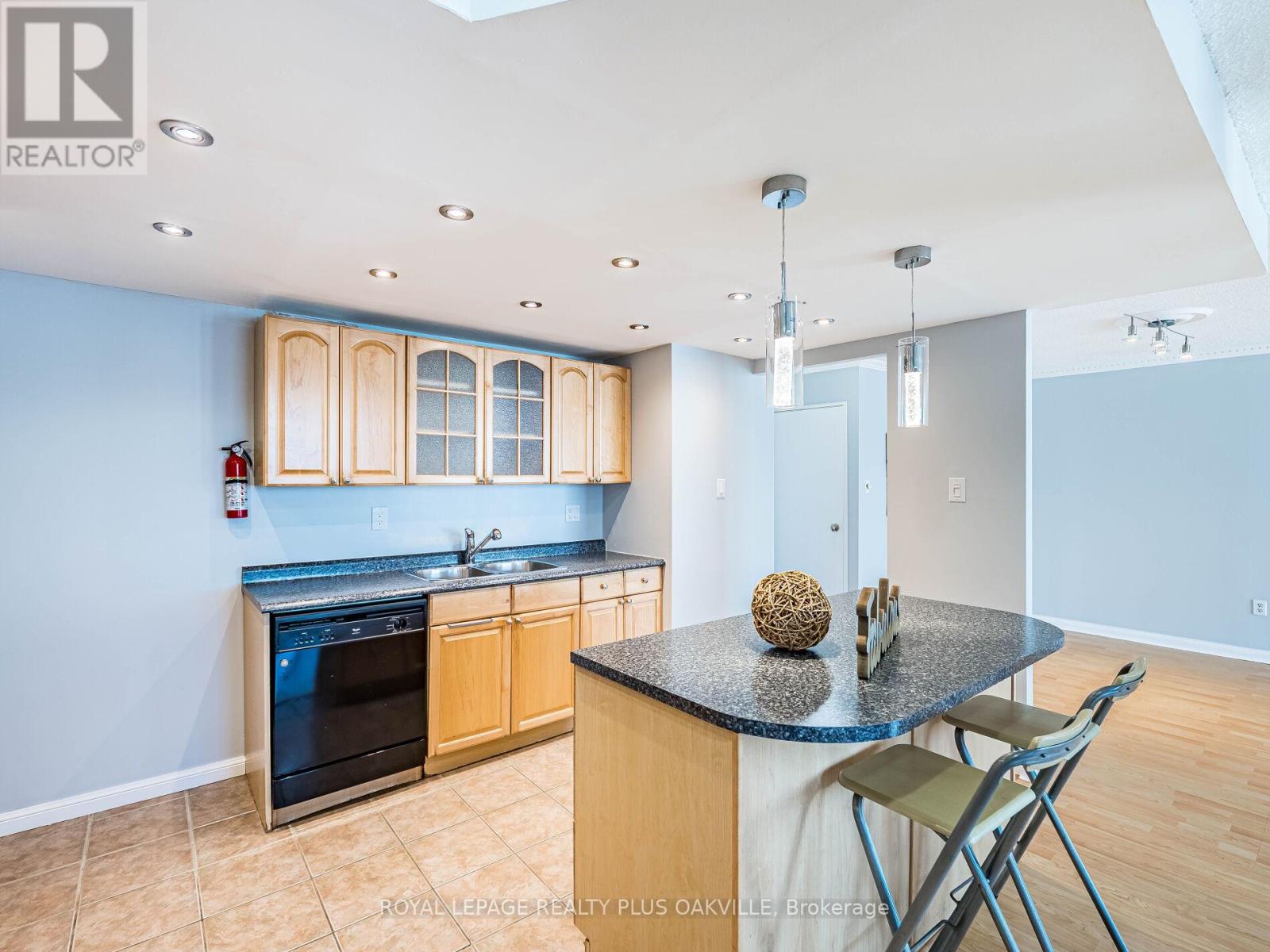 $875.19 MonthlyWelcome to this bright and spacious condo nestle on beautifully landscaped parkland with abundant green space and walking paths along the river. This condo features an open concept layout with a living and dining area that walks out to an open balcony offering panoramic city views. The kitchen boasts ample cabinet space, pot lights, an island and ceramic floor. Large master bedroom with walk-in closet and laminate floor. Freshly painted throughout. Ensuite laundry, locker and 2 parking spots. Newer windows and balcony doors (2024/25). Heating and cooling installed in 2021, thermostat (2021), bird netting (2021), main bath fan motor (2021). New bath tub drainer and over flow (2022), p-trap and strainer in kitchen (2022), A/C vertical fan coil (2023). Close to Square One shopping, schools, parks, public transit, highways QEW, 403 and 407 and Cooksville GO Station. (id:51158)