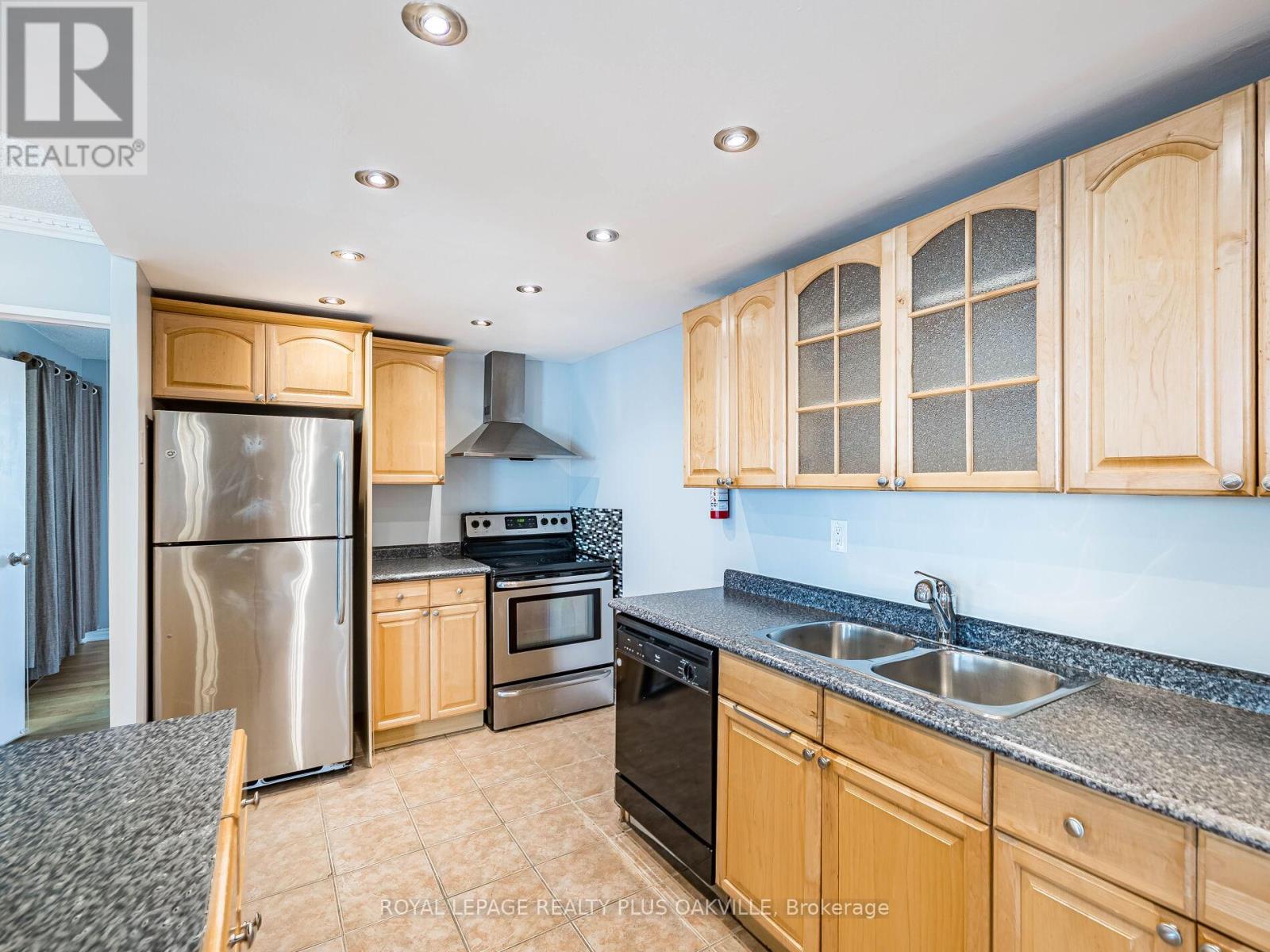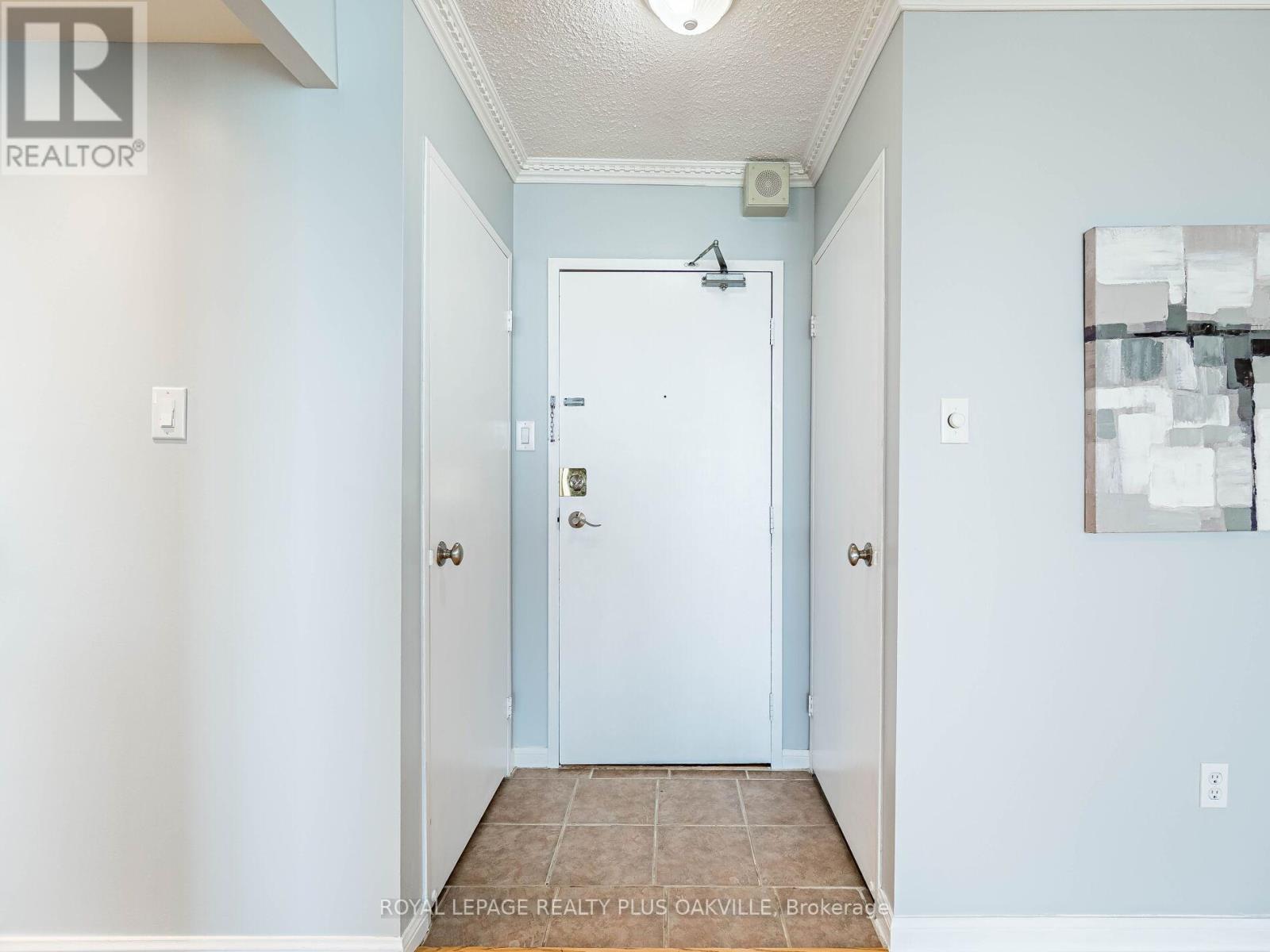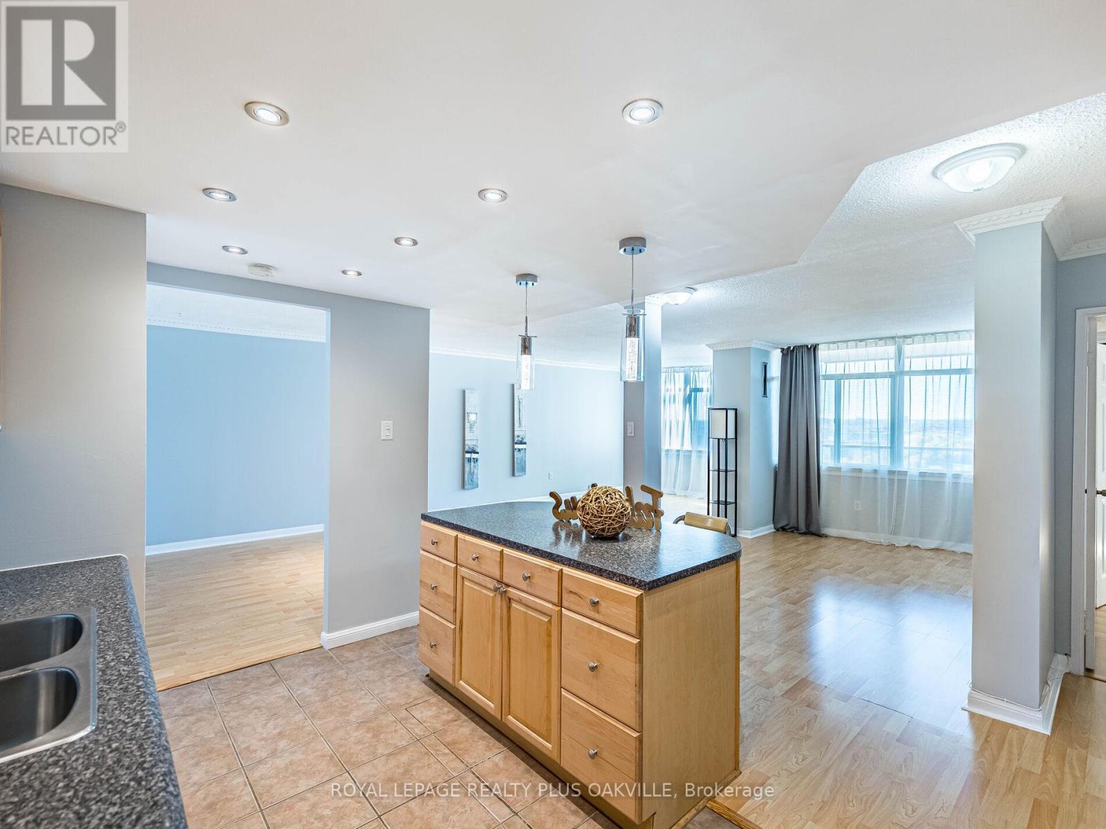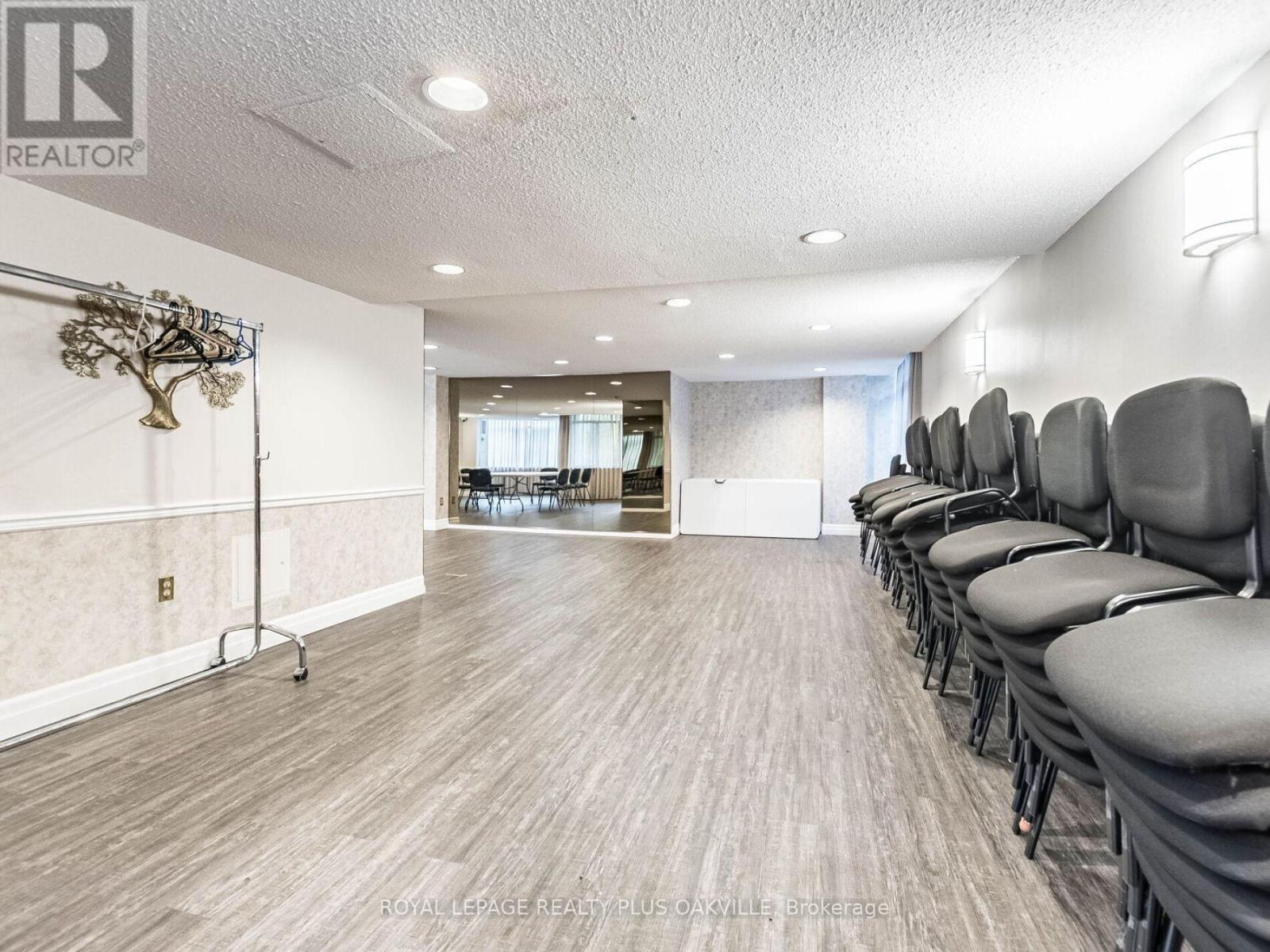$875.19 MonthlyWelcome to this bright and spacious condo nestle on beautifully landscaped parkland with abundant green space and walking paths along the river. This condo features an open concept layout with a living and dining area that walks out to an open balcony offering panoramic city views. The kitchen boasts ample cabinet space, pot lights, an island and ceramic floor. Large master bedroom with walk-in closet and laminate floor. Freshly painted throughout. Ensuite laundry, locker and 2 parking spots. Newer windows and balcony doors (2024/25). Heating and cooling installed in 2021, thermostat (2021), bird netting (2021), main bath fan motor (2021). New bath tub drainer and over flow (2022), p-trap and strainer in kitchen (2022), A/C vertical fan coil (2023). Close to Square One shopping, schools, parks, public transit, highways QEW, 403 and 407 and Cooksville GO Station. (id:51158)