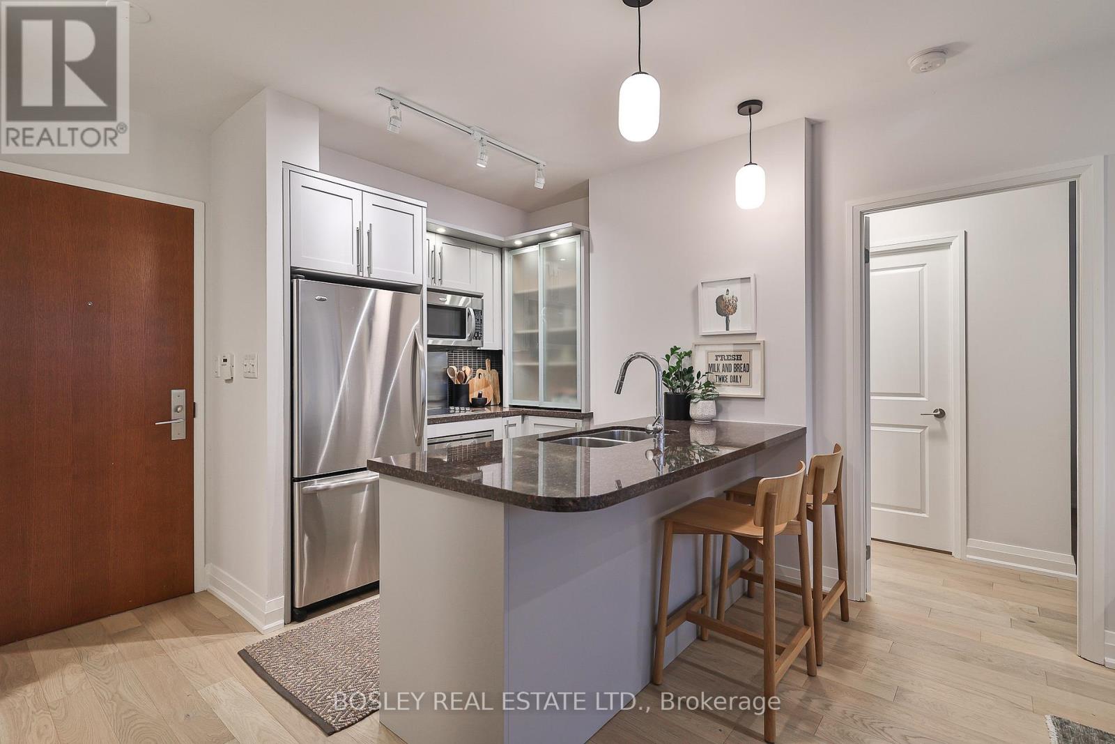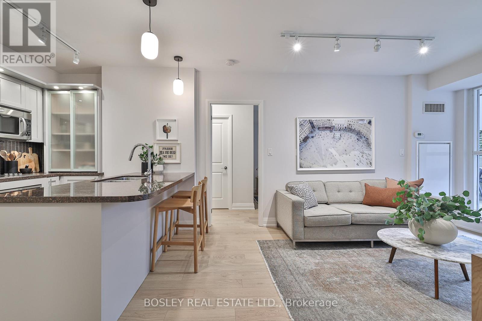 $1,189 MonthlyWelcome to The Clairmont where boutique sophistication meets urban living with ease at Yonge & St. Clair. This 2-bedroom, 2-bath suite offers 810 sq. ft. of thoughtfully designed interior space, paired with a remarkable 260 sq. ft. private terrace - perfect for morning coffee or evenings under the stars. With a gas hookup for grilling (or a heat lamp to extend the seasons) and a water bib for the urban gardener, the terrace is a true extension of your living space. Inside, the gourmet-inspired kitchen features full-sized upgraded appliances, ample storage, and a breakfast bar ideal for casual meals or sociable cooking. The practical entry foyer includes a coat closet and a separate laundry area for added convenience. Engineered white oak flooring and refined neutral finishes lend timeless style throughout. The primary suite offers a spacious walk-in closet and a spa-inspired ensuite with a tranquil soaker tub, natural stone finishes, and custom millwork for elegant, functional storage. The second bedroom nicely separated in the split layout includes its own walk-in closet and operable window, offering flexibility for guests, a home office, den, or family. Just steps from the suite, the buildings fitness studio feels like your own personal gym. Complete with garage parking and owned storage locker. A rare blend of comfort, style, and convenience in one of midtowns most desirable boutique residences. (id:51158)