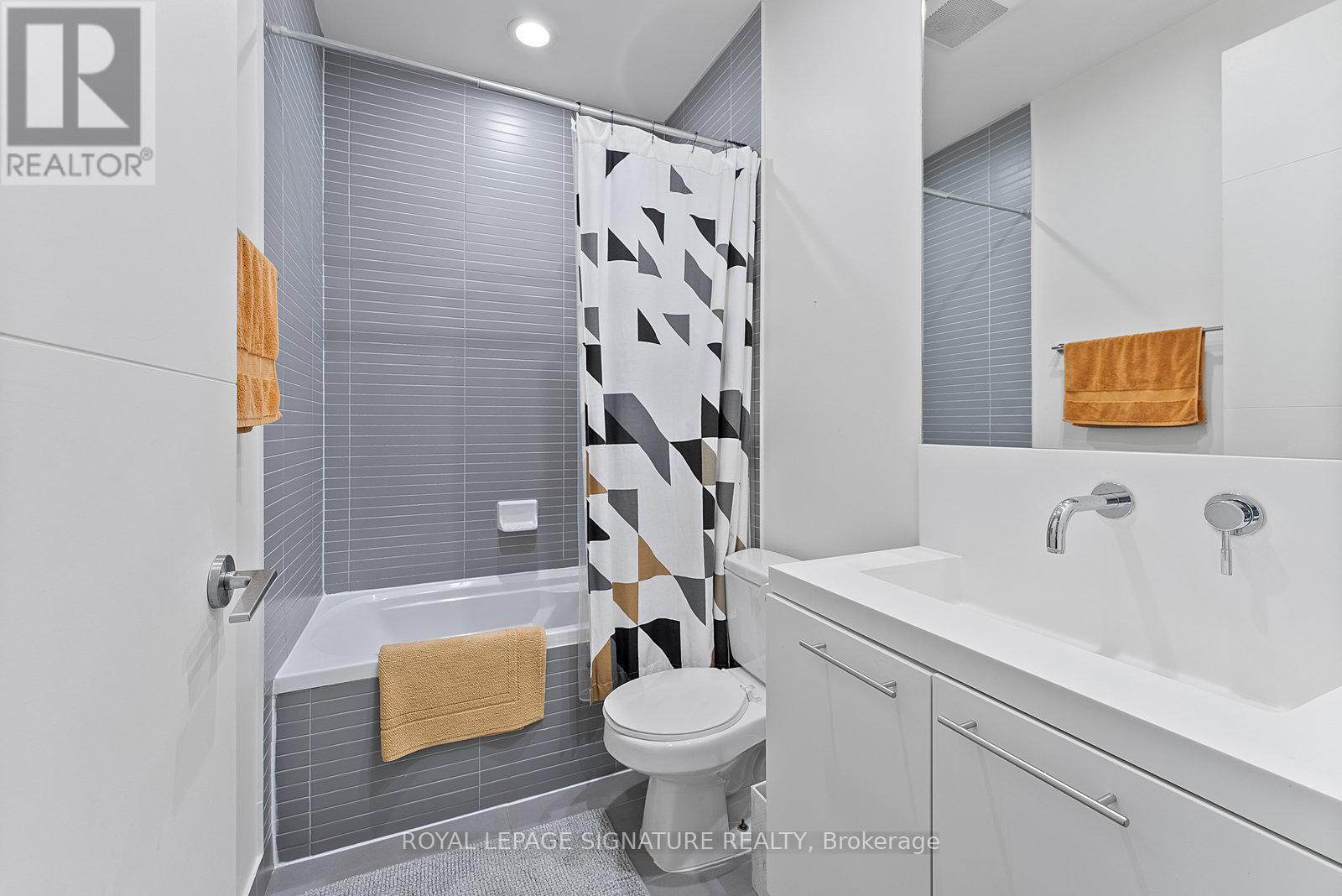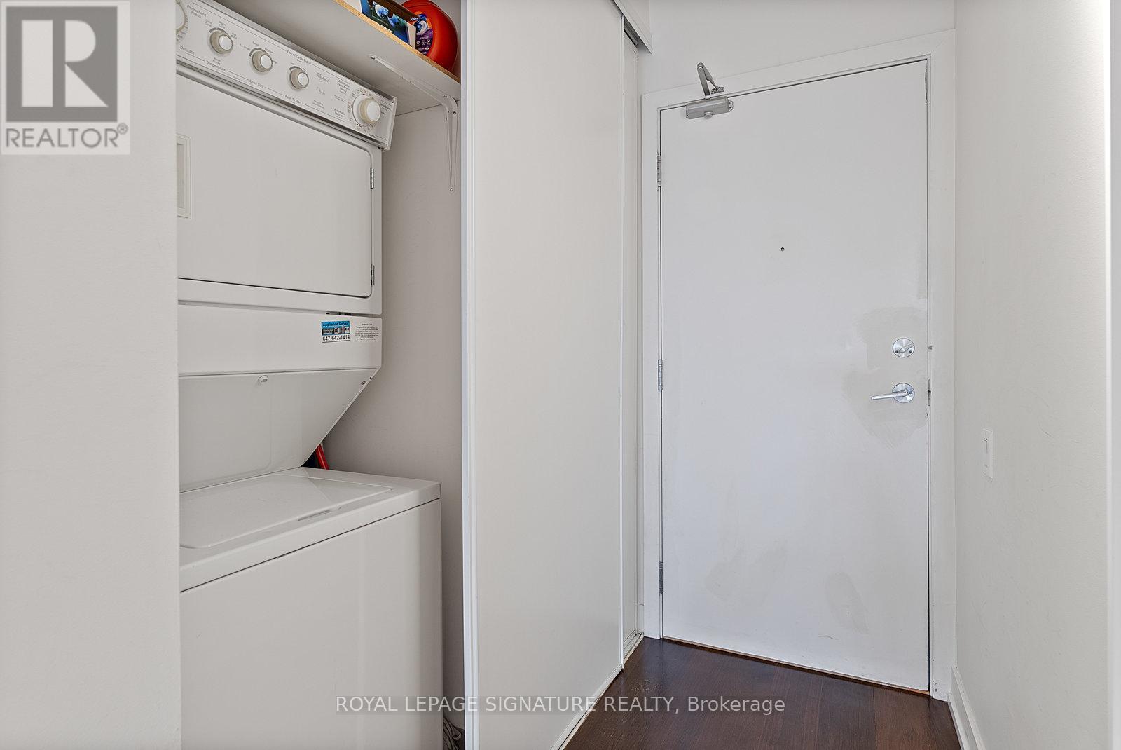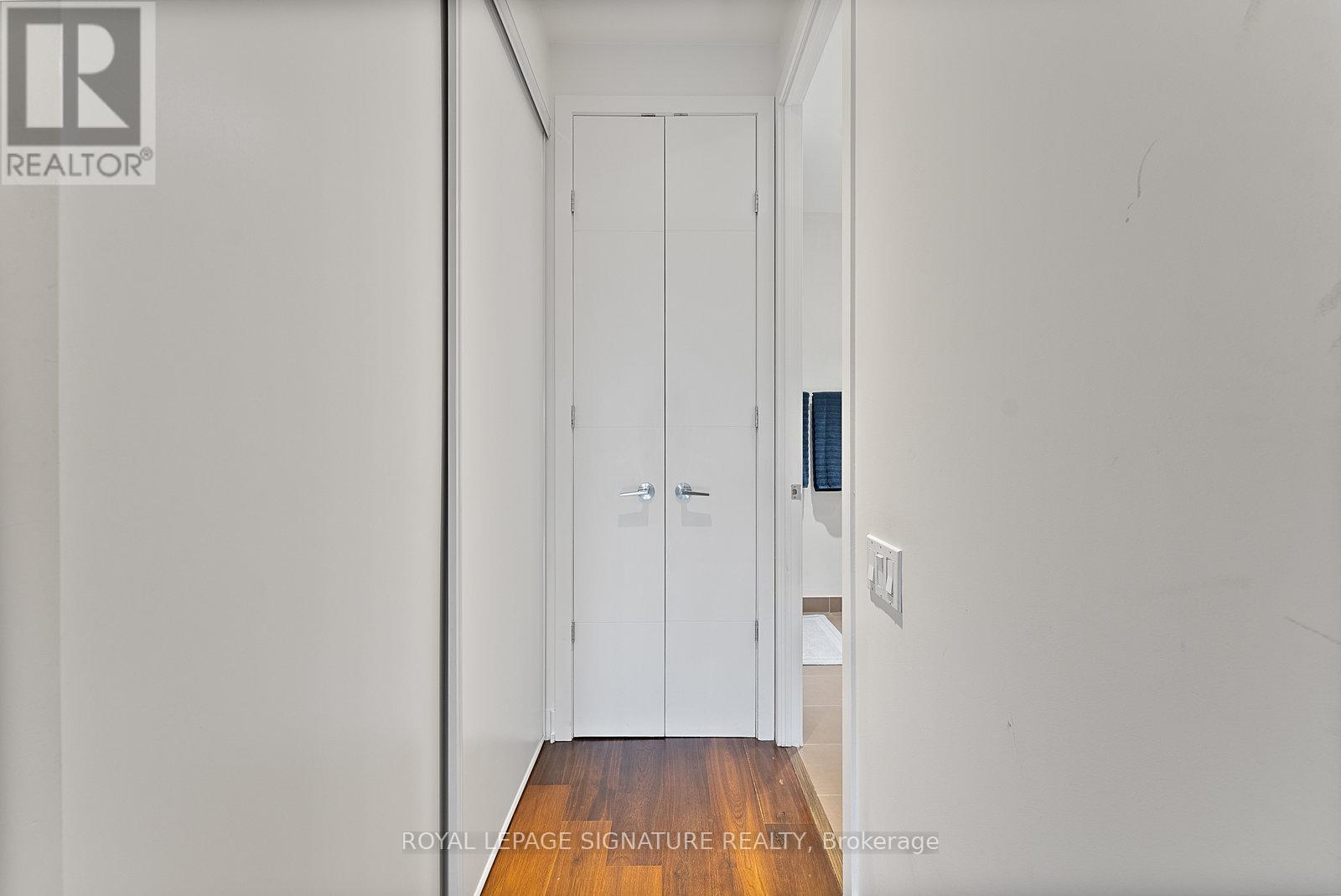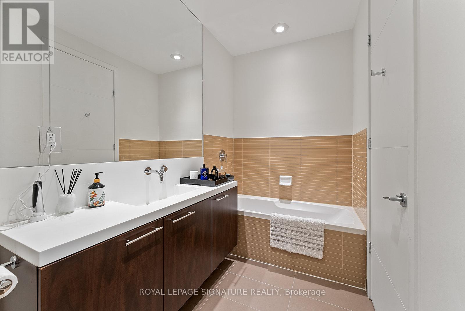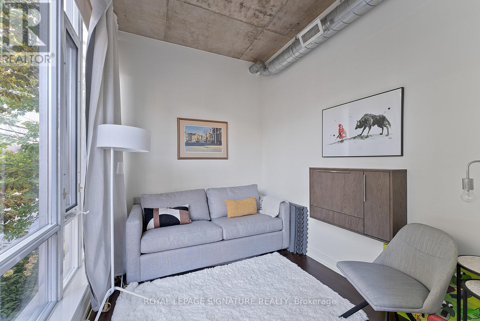 $890.81 MonthlyWelcome to Suite 201 at 66 Portland. This bright and spacious, corner suite offers a smart open-concept layout with floor-to-ceiling windows and abundant natural light throughout.The modern kitchen features full-sized stainless steel appliances, sleek cabinetry, and a large island with seating. It opens seamlessly to the expansive living area, where modern flooring and high ceilings create an airy, loft-inspired feel. The dining space comfortably accommodates a full table, making it ideal for both everyday living and entertaining. The primary bedroom includes a large closet and a private ensuite with contemporary finishes. The second bedroom includes a large window and closet, perfect for an office space or nursery. Another full bathroom adds convenience for guests or family. With its rare corner positioning, this suite enjoys light from two exposures and a highly functional floor plan with no wasted space. Located in the heart of King West, 66 Portland is a boutique building surrounded by Torontos best dining, cafes, and nightlife, with easy access to transit and the Financial District. (id:51158)