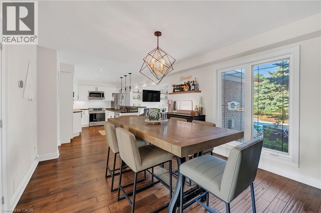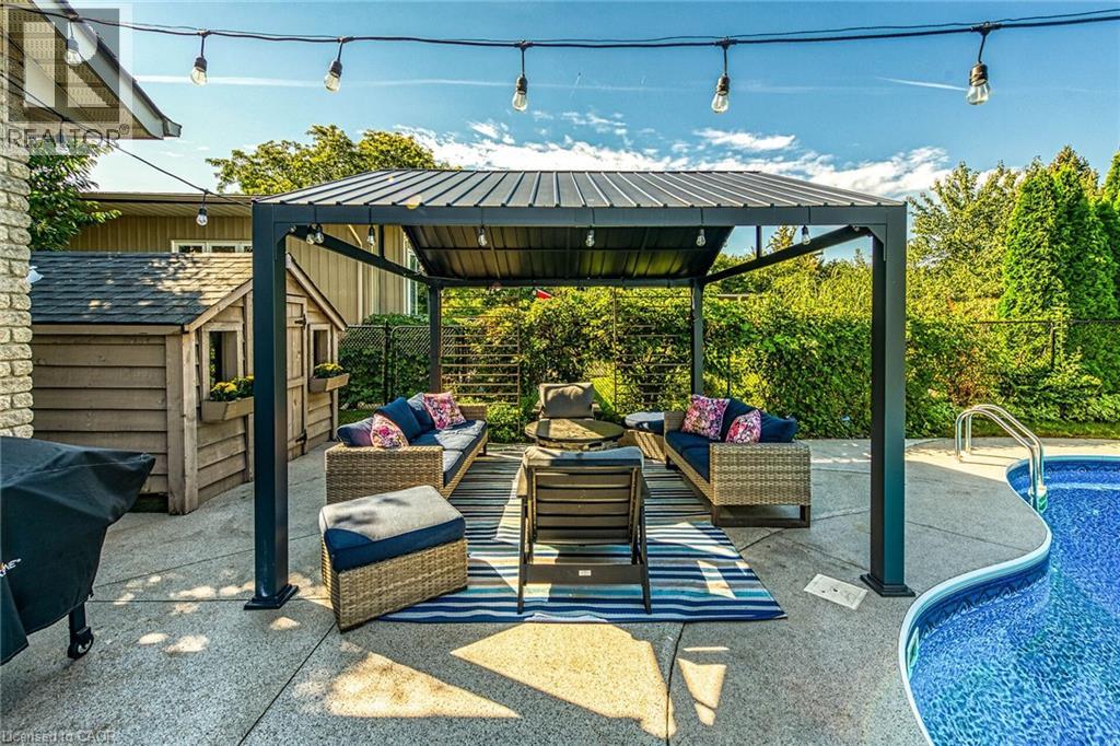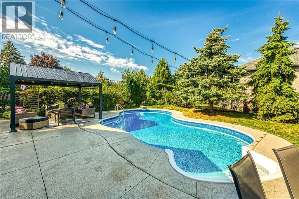 Welcome to 201 Jones Road – an executive family home that perfectly blends style, function, and lifestyle. This beautifully updated 3+2 bedroom, 3.5 bathroom residence offers almost 3000sq. ft+ of finished living space. The main floor is designed for both entertaining and family living, featuring a separate living room, dining room, and a spacious family room complete with a gas fireplace and custom built-in shelving. The updated kitchen is open-concept and a great central feature of the home. Upstairs, you’ll find three generous bedrooms, each with walk-in closets, including a luxurious primary retreat with a private 4-piece ensuite. The fully finished lower level provides two additional bedrooms and plenty of flexible living space for guests, a home office, or recreation. Step outside to your own private oasis – a saltwater in-ground pool, hot tub, and gazebo, perfect for summer relaxation and entertaining. Ideally located near excellent schools, escarpment trails, wine country, and offering quick QEW access for commuters. This is the perfect place to call home – move-in ready, family-focused, and built for making memories. Book your private viewing today! (id:51158)