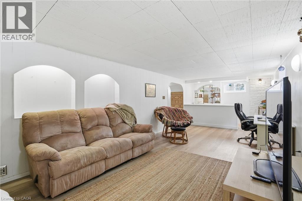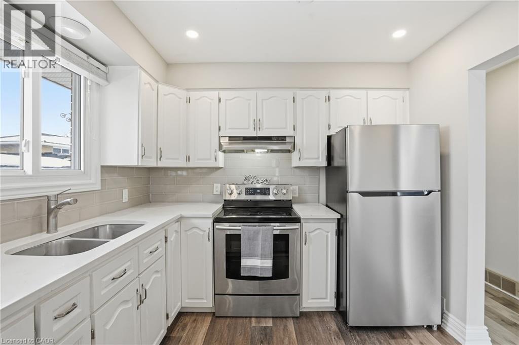 Beautifully maintained and move-in ready detached bungalow located in a quiet, friendly, and well-established Central Mountain neighbourhood. This bright and modern 3-bedroom, 2-bathroom home features an open and functional layout with pot lights throughout the living room and kitchen, new vinyl flooring, stainless steel appliances, quartz countertops, and fresh paint. The fully finished basement offers excellent in-law or secondary suite potential with a separate entrance, full bathroom, spacious recreation room, and wet bar/kitchenette—perfect for additional living space or entertaining. Enjoy a long private driveway with ample parking for 3 + cars and a fully fenced backyard for added privacy. Conveniently located near Upper James and Upper Wellington, just minutes to Limeridge Mall, schools, parks, shopping, public transit, and easy highway access. A fantastic opportunity in an amazing central location. (id:51158)