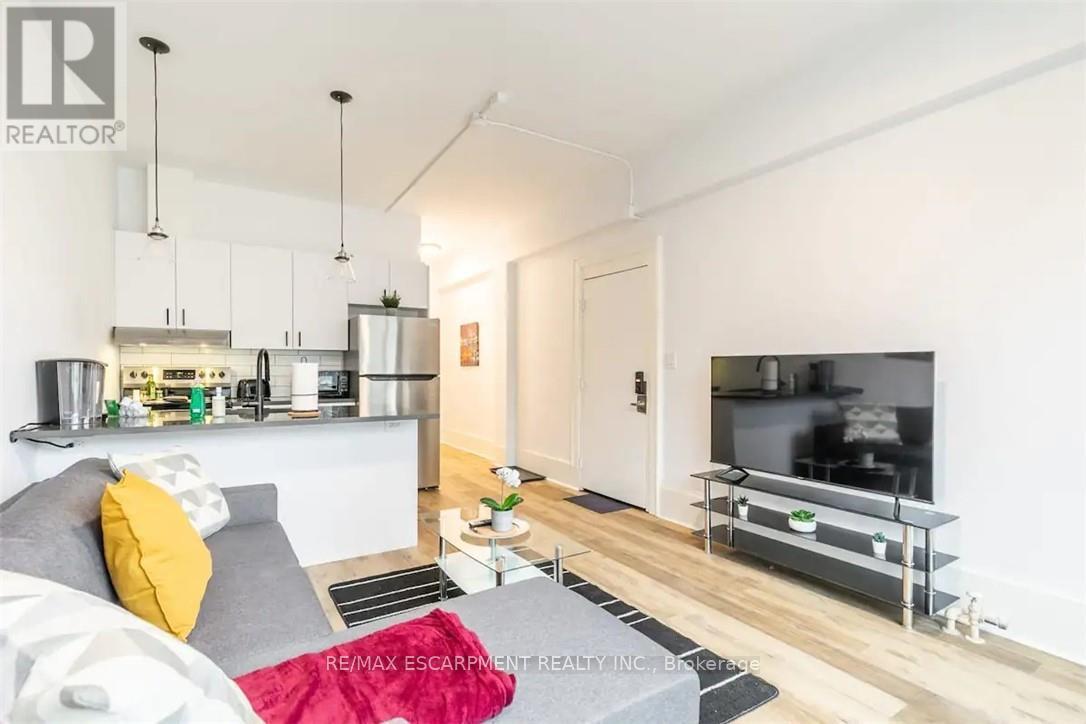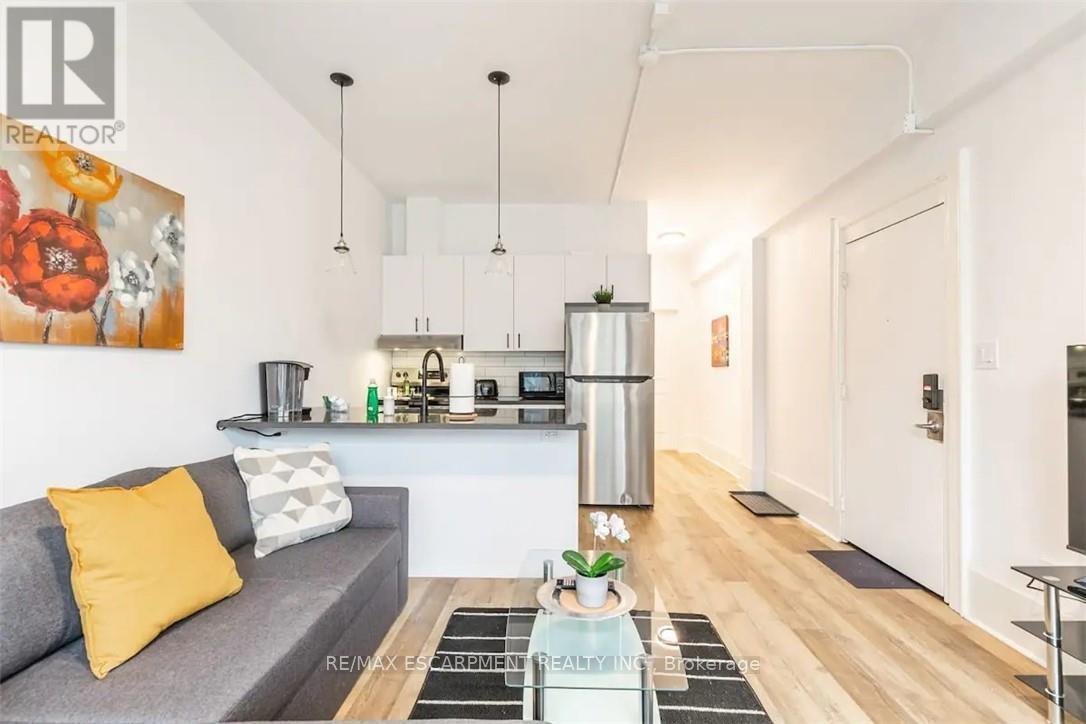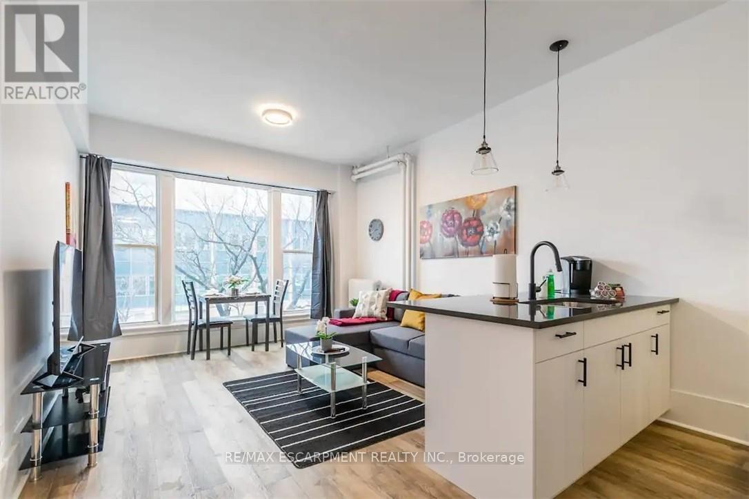 Spacious 1-bedroom apartment on the 2nd floor, located above a commercial property in a prime area. This move-in-ready unit offers modern finishes and a clean, comfortable living space. Situated just steps away from James Street North, Hamilton GO Centre, McNab Transit Terminal, Hamilton's International Village, Nations Grocery Store, Jackson Square, St. Joseph's Hospital, Corktown Park, Escarpment Rail Trail, and convenient public transit options. Parking is available at the building for an additional cost and laundry facilities are available within the building as well. (id:51158)
