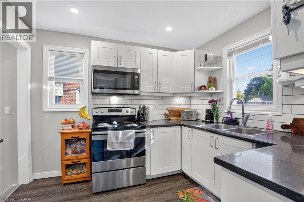 Welcome to 202 Bedford Rd, Kitchener – a home that’s as charming as it is versatile! This 2+2 bedroom, 2 bathroom home is cute as a button, with an updated fresh white kitchen that makes cooking feel bright and cheerful. On the main floor, you’ll find two cozy bedrooms and a large living room at the back of the home, perfect for movie nights or gathering with friends. From here, step right out to the patio and enjoy a spacious fenced backyard – whether it’s a BBQ, a cozy fire, or just relaxing with family, this yard has room for it all. There’s even a shed with loads of storage for your tools and toys. Head downstairs and you’ll discover a separate entrance, making this level ideal for an in-law suite, or a spot for older kids to have their own hangout. With two more bedrooms and lots of room to add a kitchen, the possibilities are endless! Both the upstairs space and the downstairs space have 2 entrances which make it very easy for a multi generational family to enjoy their own space here. The location is a dream – you’re within walking distance to Rockway Golf Course, the Kitchener Market, and the LRT, plus just a quick drive to the expressway for easy commuting. And here’s the bonus: this home comes with a solar contract until 2038, paying out 31 cents per kilowatt hour. That’s about $1,200–$1,500 a year back in your pocket – a great way to offset your monthly bills! (id:51158)