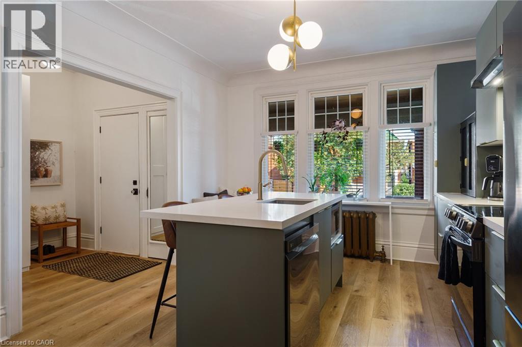 Welcome to an exciting new Prospect! Expansive century home renovated with equal parts style & function (and almost 300k worth of updates!). Stone's throw from Gage Park, this Legal Duplex has 2 units above ground, plus a bonus separate in-law suite, and parking for 3 cars off the laneway. Offering optimal support to a multi-generational family looking for additional space or income, or perfect for living in one unit while renting out the other two. Excellent neighbours who take pride in their homes and community. Main-floor unit offers private entrance into large foyer, thoughtfully designed kitchen (ft. Quartz countertops, dishwasher, & appliance garage), grand living room, bright bedroom, and breathtaking bathroom (ft. laundry & walk-in shower). Back den / flex space offers direct access to backyard and rear laneway. Upper unit spans 2nd & 3rd floors with sound proofing retrofitted, an equally impressive kitchen (ft. Custom finishings, quartz counters, dishwasher, & laundry), a living & dining space that opens to a private outdoor patio, and humongous primary bedroom with 2 closets adjacent to 4-piece bath featuring original clawfoot tub & unique, inspired design. On the 3rd floor, you'll discover two more bedrooms, both with giant walk-in closets, and a 3piece bath. But wait, there's more! From the interior stairwell of the home, access to an unfinished portion of the basement with a separate entrance, additional laundry, a tankless boiler, and over 6 feet of height. From the private back yard entrance, there's a self-contained one bedroom with full kitchen, creative finishings, and a custom 3 piece bathroom. Original character preserved where it could be, thoughtful & creative new finishings where it couldn't. You've never seen a home like this before. Update list, zoning certificate, & certificate for abatement attached. (id:51158)