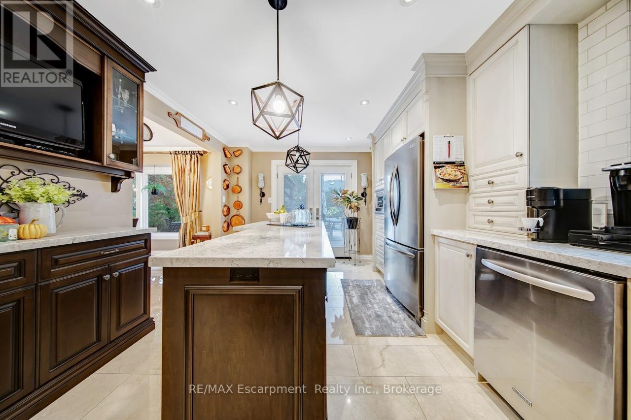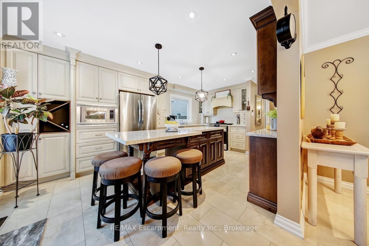 Classic elegance, timeless finishes, quality workmanship and true pride of ownership. This traditional family home has it all. Located on quite crescent , on a massive premium lot this Altera built fully finished home cared for by it's original owners will not disappoint! The beautiful solid wood entrance door leads to a large and elegant foyer . The main floor features a traditional layout with a spacious living room with an electric fireplace, a beautiful family room with real woodburning fireplace, a large separate dining room, and and elegant custom kitchen with a large island, stone counters, s/s appliances. Large mud room with built - in cabinets , inside garage entry. Second floor with massive primary bedroom, gorgeous 5 piece en-suite bathroom , with soaker tub and separate shower, Fully remodeled main bathroom, and additional 3 bedrooms . The finished basement includes a large rec room, a second kitchen ( can be used as wet bar..) a 3 piece bathroom, laundry room . You don't need a cottage when you can have this rare premium lot, with a stunning backyard oasis. Featuring a heated inground pool, a beautiful wood gazebo, large decking and wonderful landscaping, pot lights . A convenient 2 piece pool bathroom completes the comfort of this stunning backyard . fantastic school district , minutes to HWYs , shopping , parks and trails. The list of the features of the beautiful family homes is too long , so please come and discover it in person! (id:51158)
