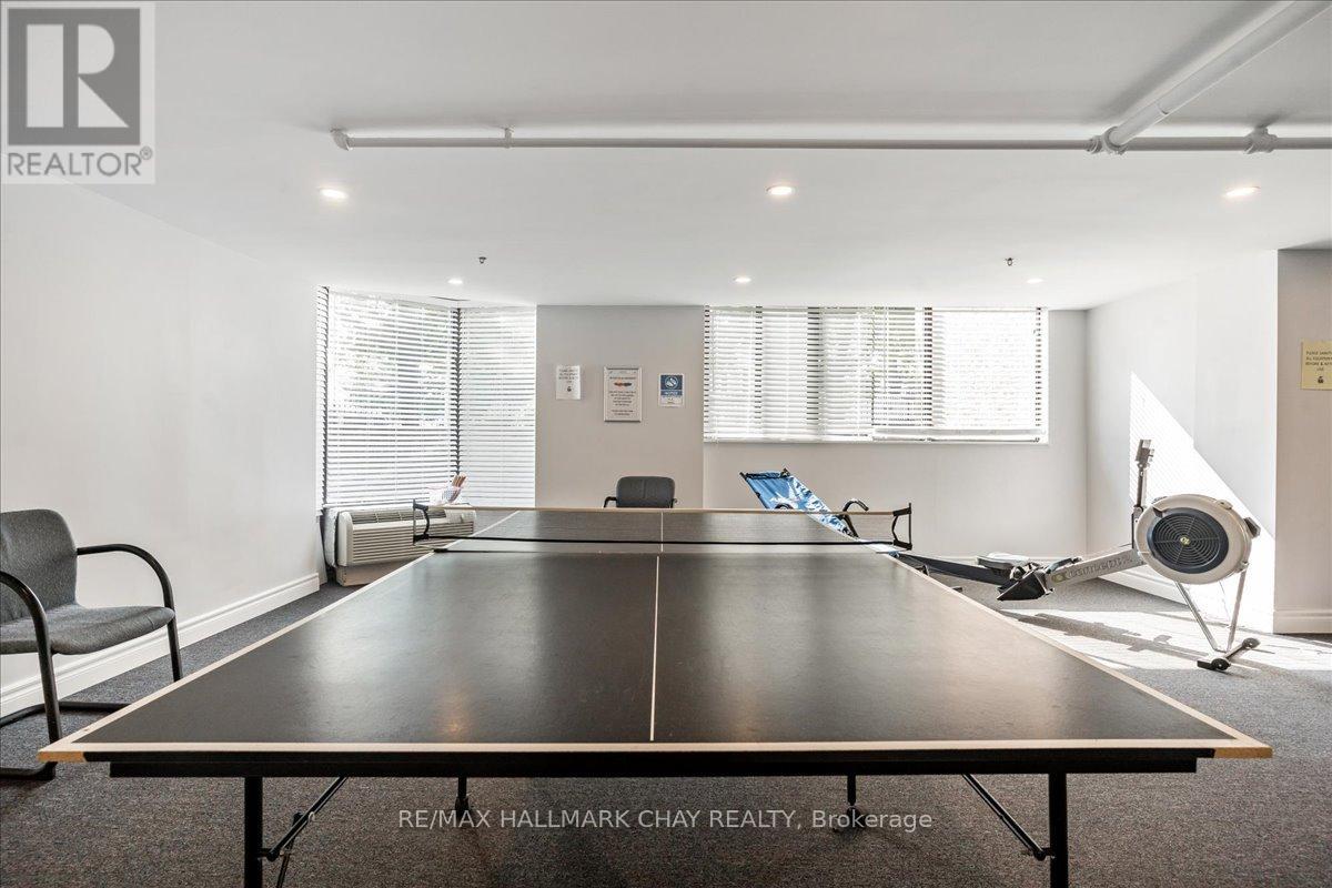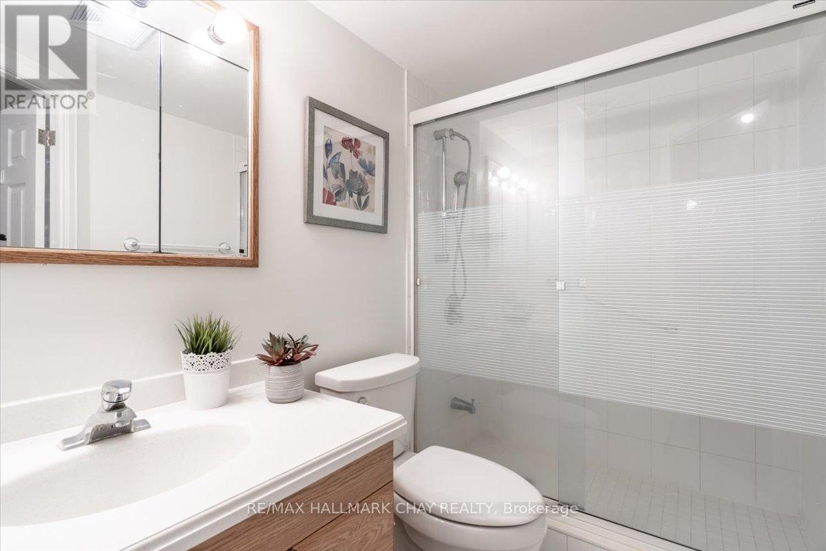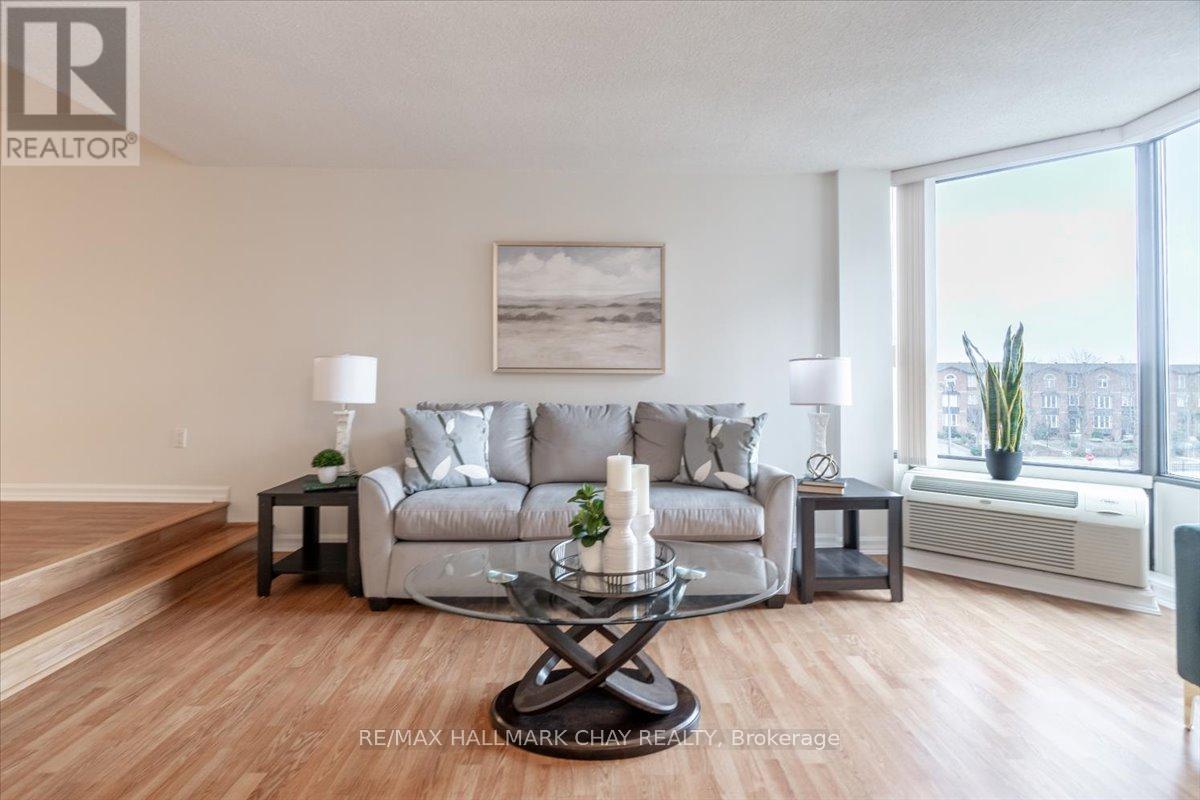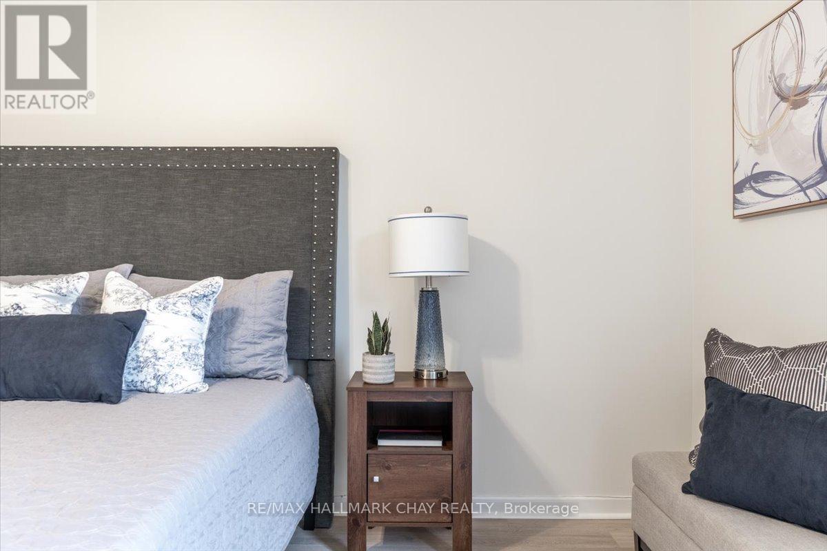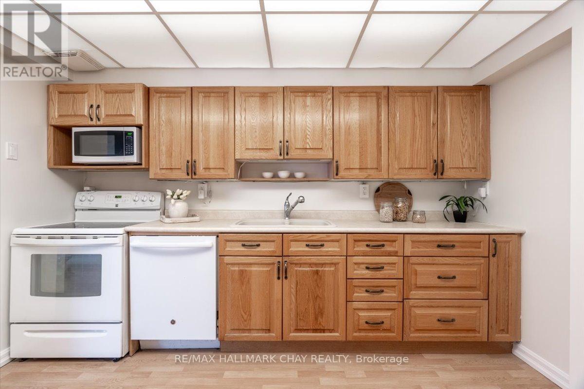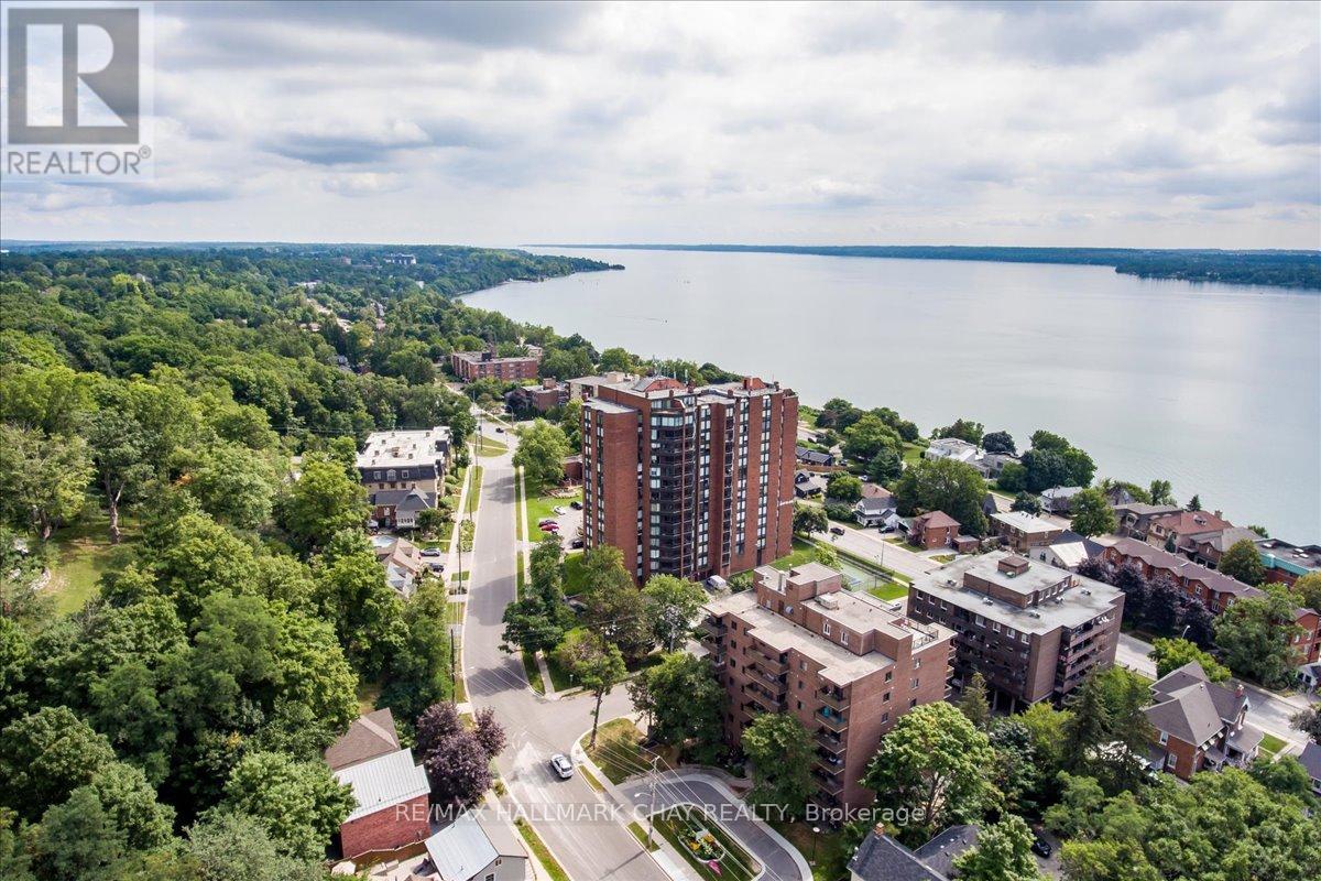 Welcome to The Bayclub! Spacious 2-bedroom, 2-bathroom 1,265 square foot suite. This lovely condo has a nice bright southwestern view, overlooking the newly surfaced pickle ball court. Large kitchen with loads of cabinets, pot drawers, double sink and built in laundry area. Roomy storage room that could easily accommodate the laundry for a dedicated laundry room. Spacious living room combined with the dining, bright and cheery with warm wood tones. Both the main bathroom and the ensuite bath have been updated, ensuite has walk-in shower. Large primary bedroom with a large walk-through closet. Home has been recently painted throughout with neutral paint and newer laminate flooring in the primary bedroom. Lovely enclosed balcony, barbecues are permitted. The underground has an assigned parking space and storage locker. The Bayclub is located in the highly desired quiet east end of Barrie steps to Kempenfelt Bay, walking path, downtown, and shopping as well as the Parkview Centre and transit. Best variety of recreational activities of all Barrie condos. Fantastic recreation facilities include one of the largest indoor pools of all the Barrie condominiums, indoor squash court, outdoor tennis/pickle ball court, expansive workshop for those who are handy or want to be, exercise room, billiards room, library, sauna, party room, guest suite, potting room for plant enthusiasts. Onsite management, superintendent and cleaner. Visitor parking lot and lovely well-kept grounds. (id:51158)