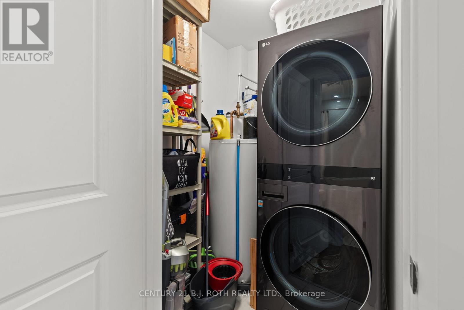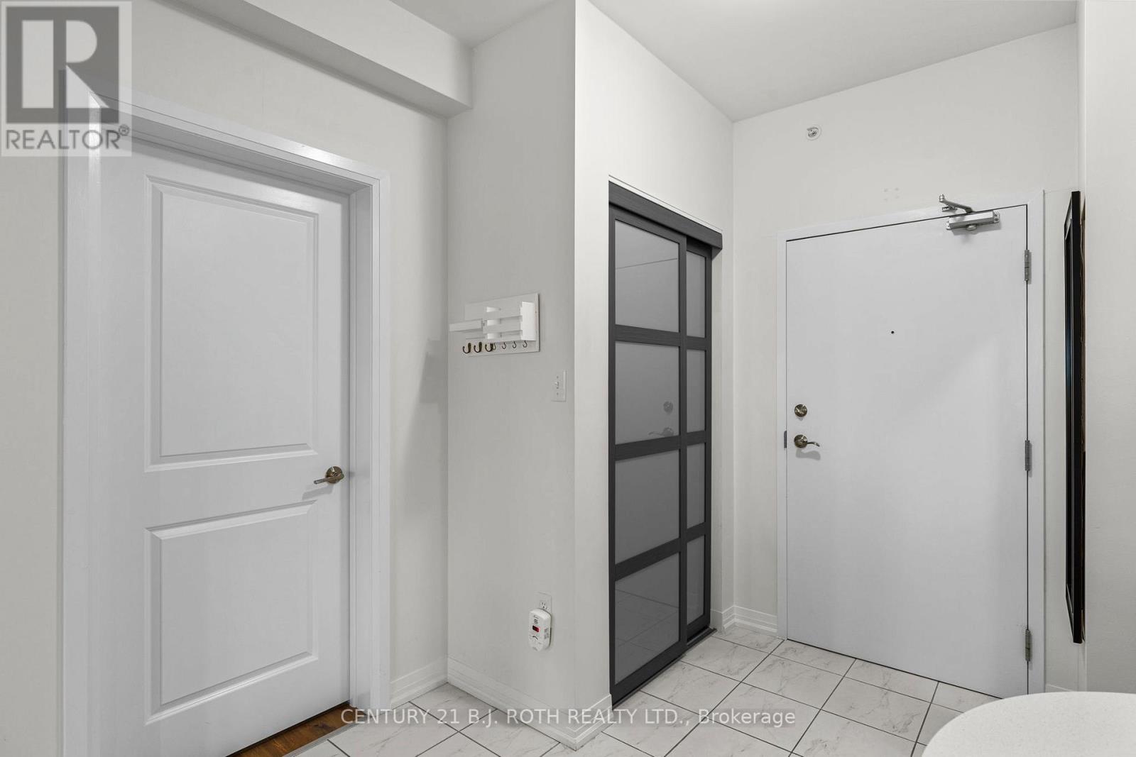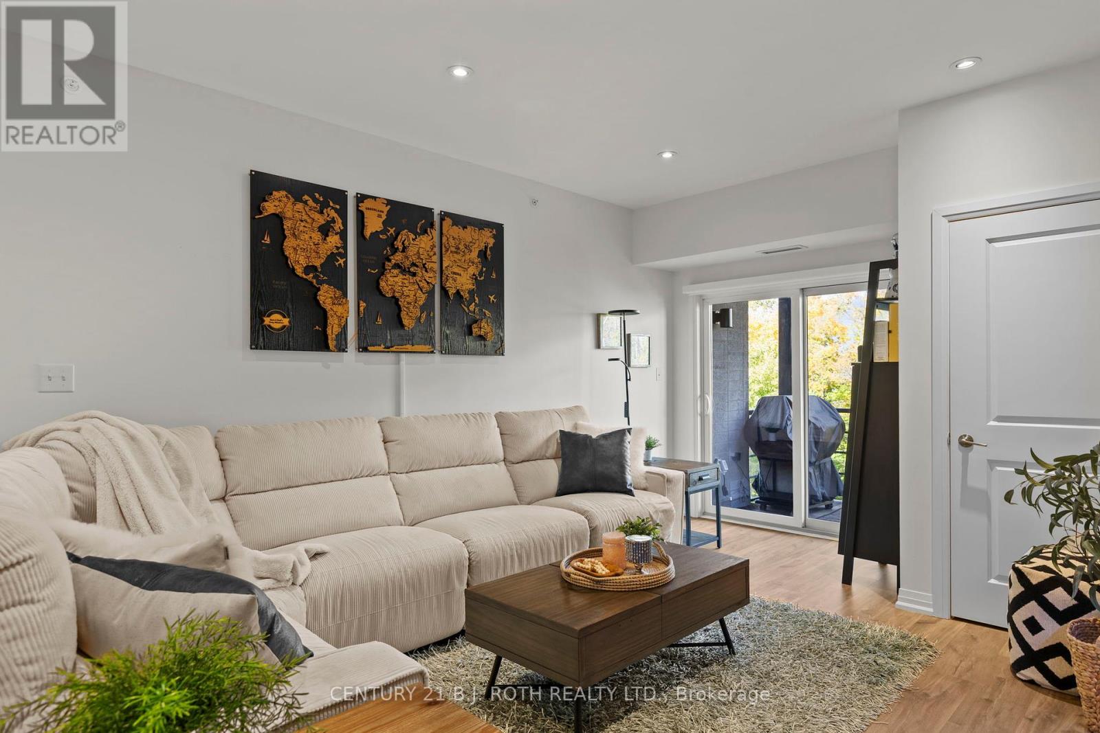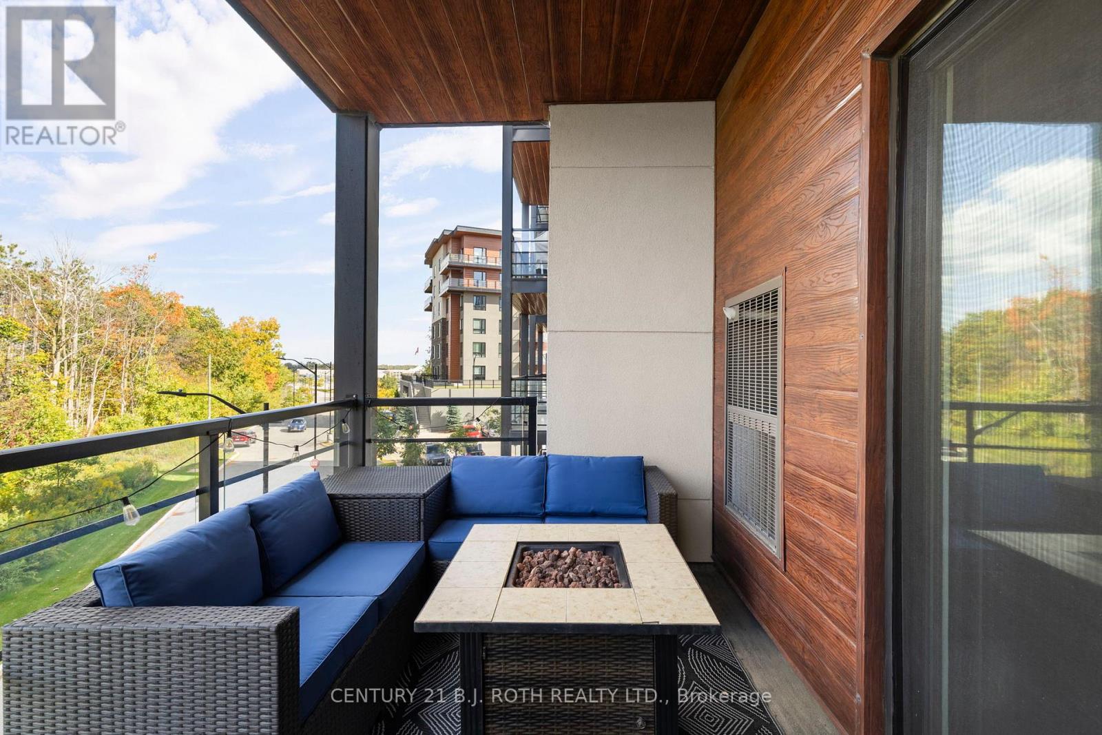 $551.86 MonthlyDiscover Suite 204 at The Gallery Condominiums, a showcase of modern West Coast style and design in Barrie's sought-after Ardagh community. This beautifully upgraded 2-bed + den, 2-bath suite offers 1,080 sq. ft. of open concept living; blending luxury finishes, comfort, and low-maintenance convenience. As you step inside, the sleek kitchen takes center stage, featuring quartz countertops, subway tile backsplash, top-of-the-line black KitchenAid appliances, and a built-in beverage fridge, perfect for both everyday living and entertaining. The open concept living area is warm and inviting, highlighted by a stone feature wall with a Napoleon electric fireplace, creating a cozy ambiance for movie nights or hosting guests. Large windows offer a serene tree-lined view, complemented by roller shades and pot lights that enhance the condos modern aesthetic. The spacious primary bedroom comfortably fits a king-size bed and full bedroom suite, featuring upgraded closet doors and a stylish 4-piece ensuite designed for relaxation. The large den offers incredible versatility, easily converted into a third bedroom, formal dining room or home office to suit your lifestyle. Additional highlights include an upgraded washer and dryer, fresh paint throughout, a pantry, and a Nest thermostat for smart, energy-efficient living. Step outside to your private balcony, perfect for unwinding or barbecuing a delicious meal. Residents also enjoy exclusive access to the 11,000 sq. ft. rooftop patio, offering panoramic views of Barrie and Kempenfelt Bay, an incredible space to relax or entertain. Just steps from your front door, explore the peaceful 14-acre forested park, ideal for a quiet walk or hike. Conveniently located minutes from Highway 400, shopping, dining, and the Rec. Centre, this home perfectly combines luxury, nature, and convenience in one exceptional package. **1 underground parking spot & locker included. Additional parking may be available for purchase or lease.** (id:51158)