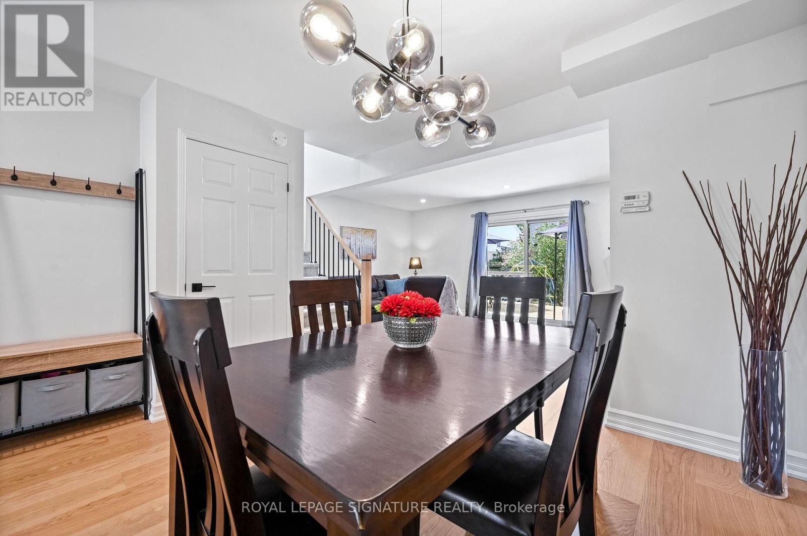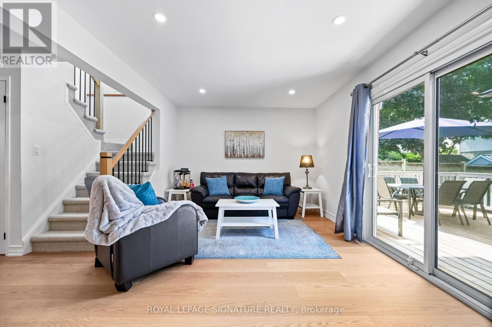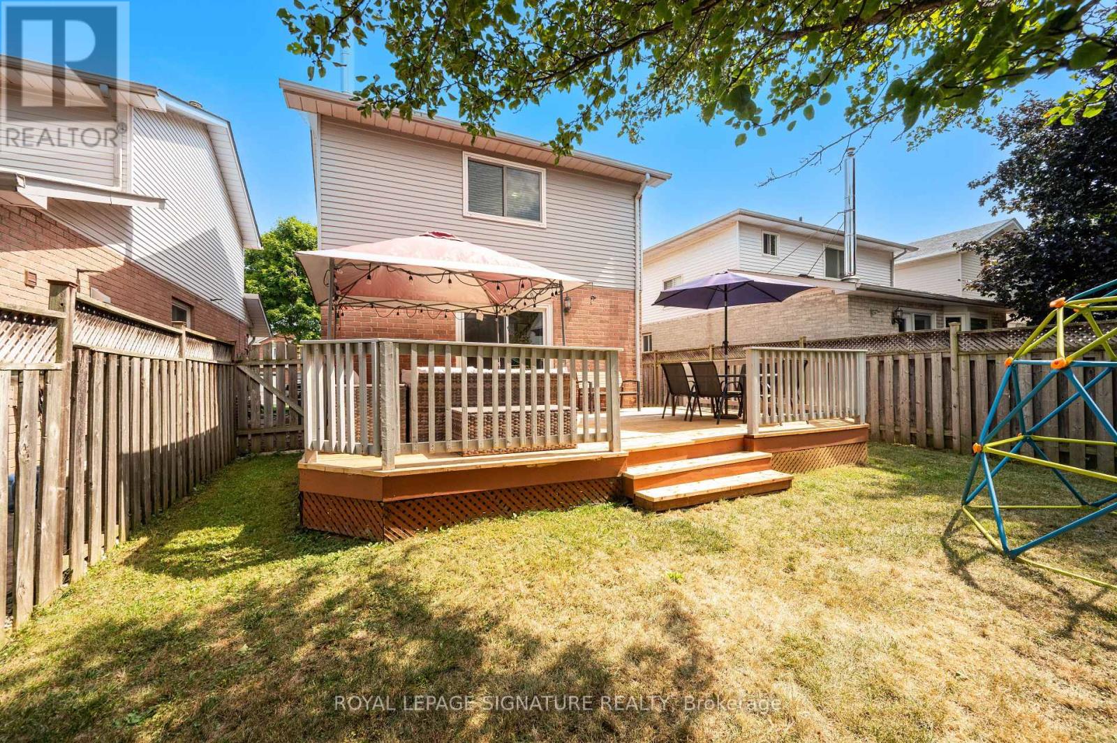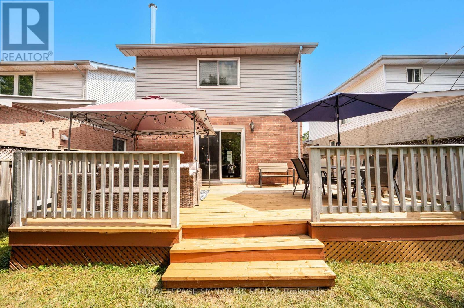 Discover stylish family living in Burlington's coveted Headon Forest. This beautifully updated two-storey home offers 1,342 sq. ft. of thoughtfully designed space, freshly painted throughout and complemented by new carpeting on the upper level.The main floor welcomes you with engineered hardwood floors in the living and dining rooms,where large windows fill the space with natural light. The extended kitchen is a highlight,featuring granite countertops, custom cabinetry, and a bright breakfast nook-perfect for casual meals or morning coffee. A convenient powder room completes the level. Upstairs, three bedrooms and two bathrooms provide comfort and privacy, with the primary suite offering generous closet space. The professionally finished basement expands your living options with a spacious rec room and flexibility for a home office or playroom.Step outside to a private, landscaped yard with an oversized deck overlooking mature greenery-ideal for entertaining or unwinding.Set on a quiet, family-friendly street, this home is steps to parks, trails, and top-rated schools. Headon Forest is loved for its mature trees, welcoming spirit, and everyday conveniences, with shopping, dining, highways, and GO Transit minutes away.A move-in ready home in one of Burlington's most sought-after neighborhoods-book your private showing today. (id:51158)