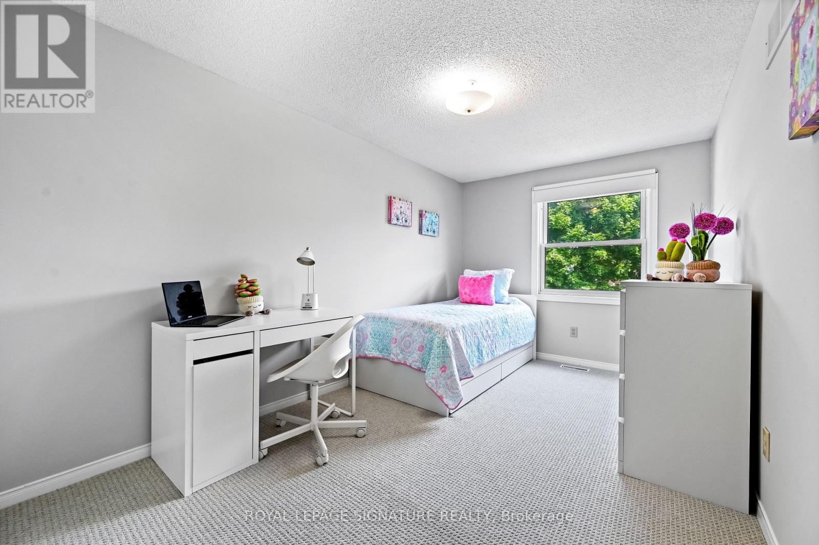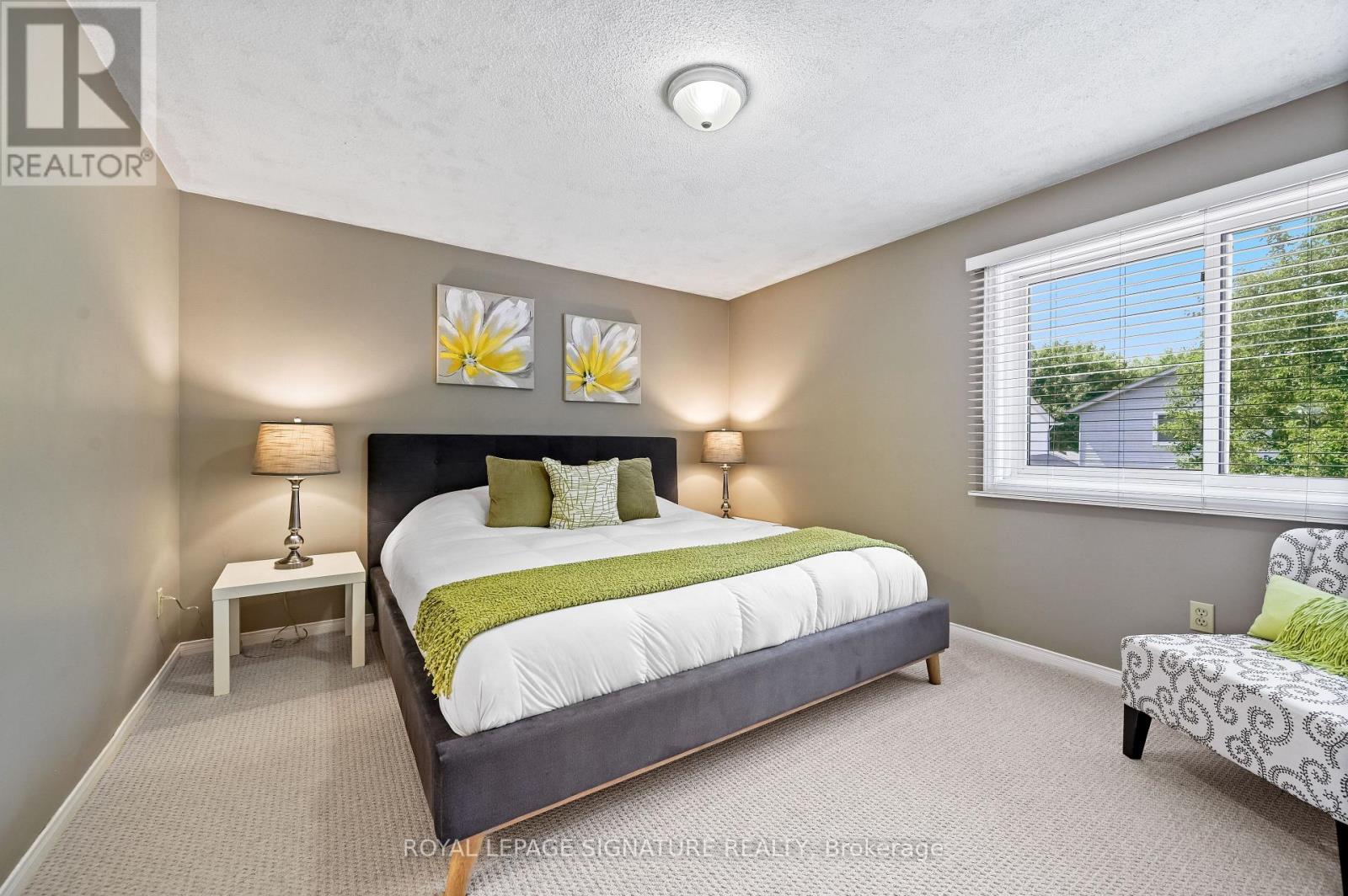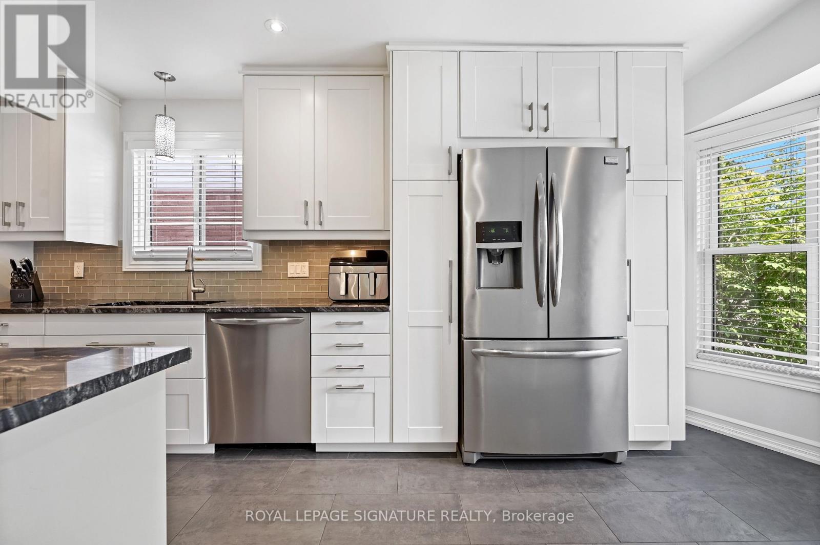 Discover stylish family living in Burlington's coveted Headon Forest. This beautifully updated two-storey home offers 1,342 sq. ft. of thoughtfully designed space, freshly painted throughout and complemented by new carpeting on the upper level.The main floor welcomes you with engineered hardwood floors in the living and dining rooms,where large windows fill the space with natural light. The extended kitchen is a highlight,featuring granite countertops, custom cabinetry, and a bright breakfast nook-perfect for casual meals or morning coffee. A convenient powder room completes the level. Upstairs, three bedrooms and two bathrooms provide comfort and privacy, with the primary suite offering generous closet space. The professionally finished basement expands your living options with a spacious rec room and flexibility for a home office or playroom.Step outside to a private, landscaped yard with an oversized deck overlooking mature greenery-ideal for entertaining or unwinding.Set on a quiet, family-friendly street, this home is steps to parks, trails, and top-rated schools. Headon Forest is loved for its mature trees, welcoming spirit, and everyday conveniences, with shopping, dining, highways, and GO Transit minutes away.A move-in ready home in one of Burlington's most sought-after neighborhoods-book your private showing today. (id:51158)