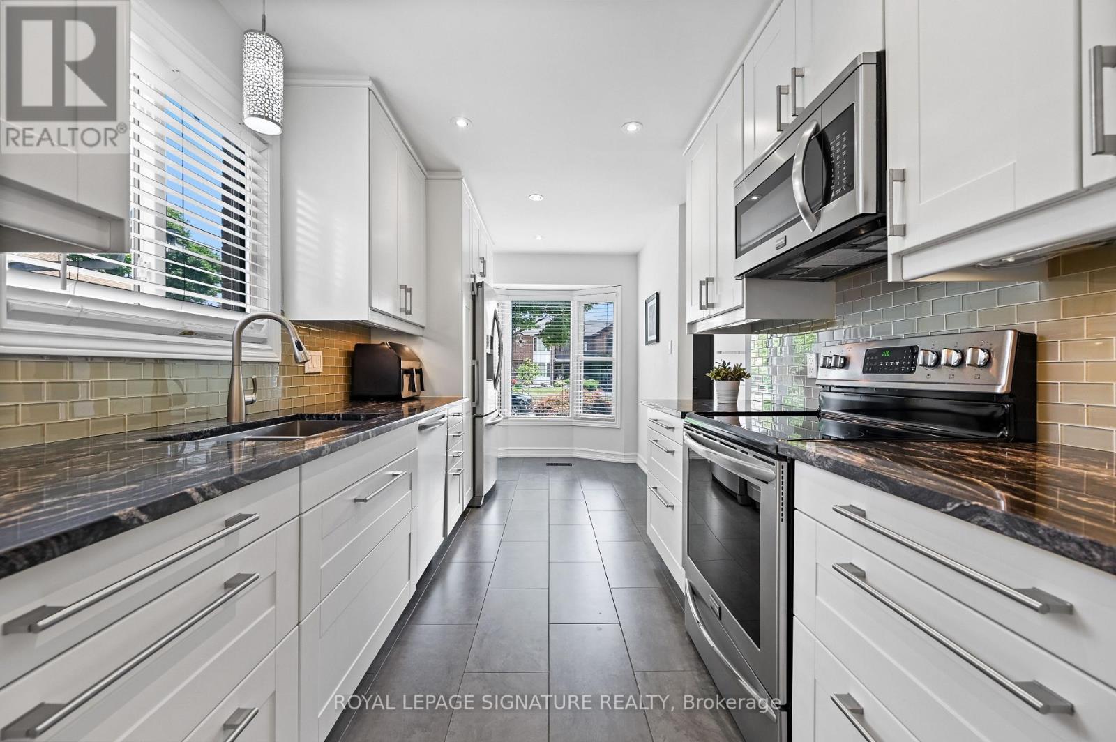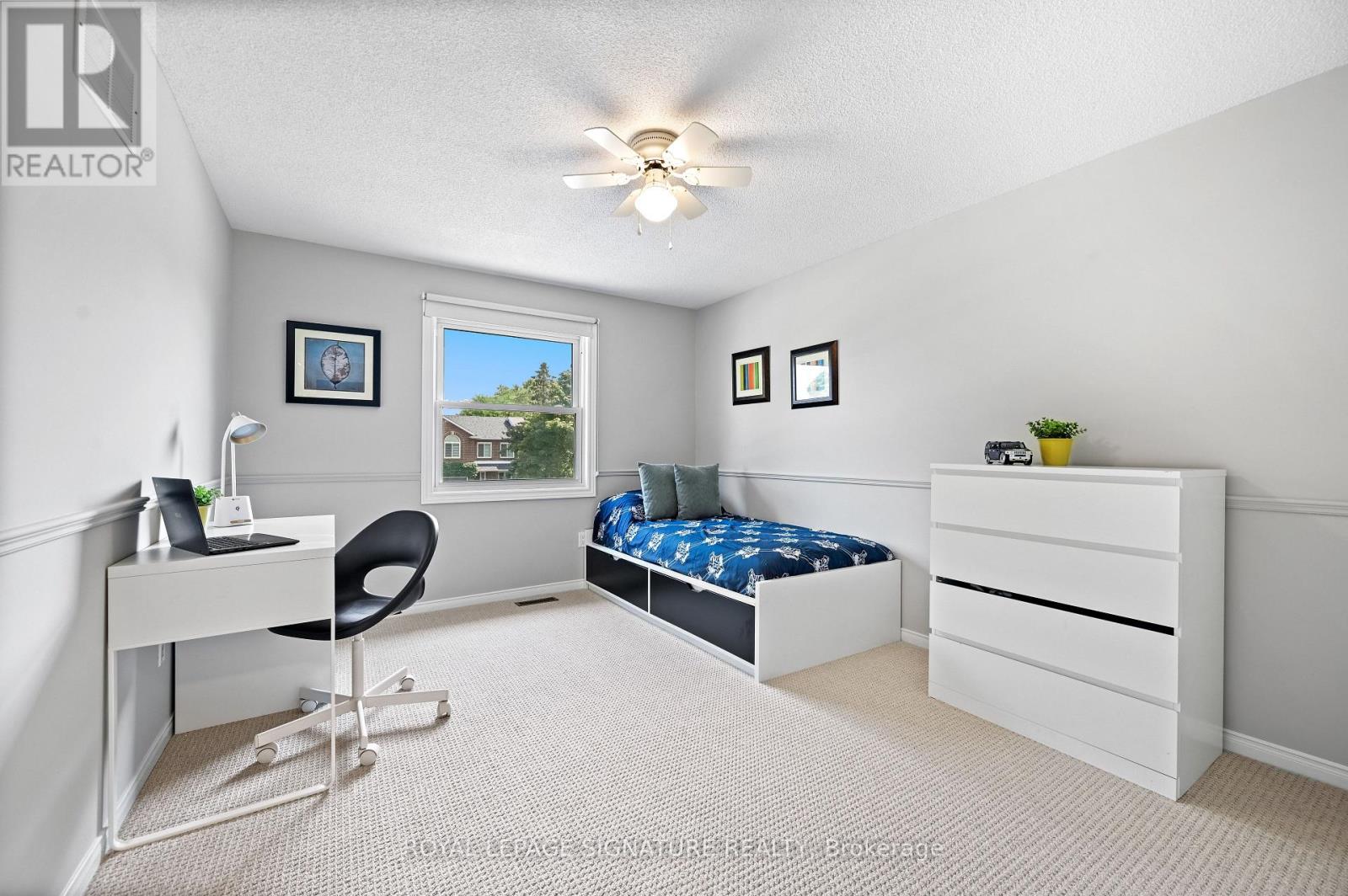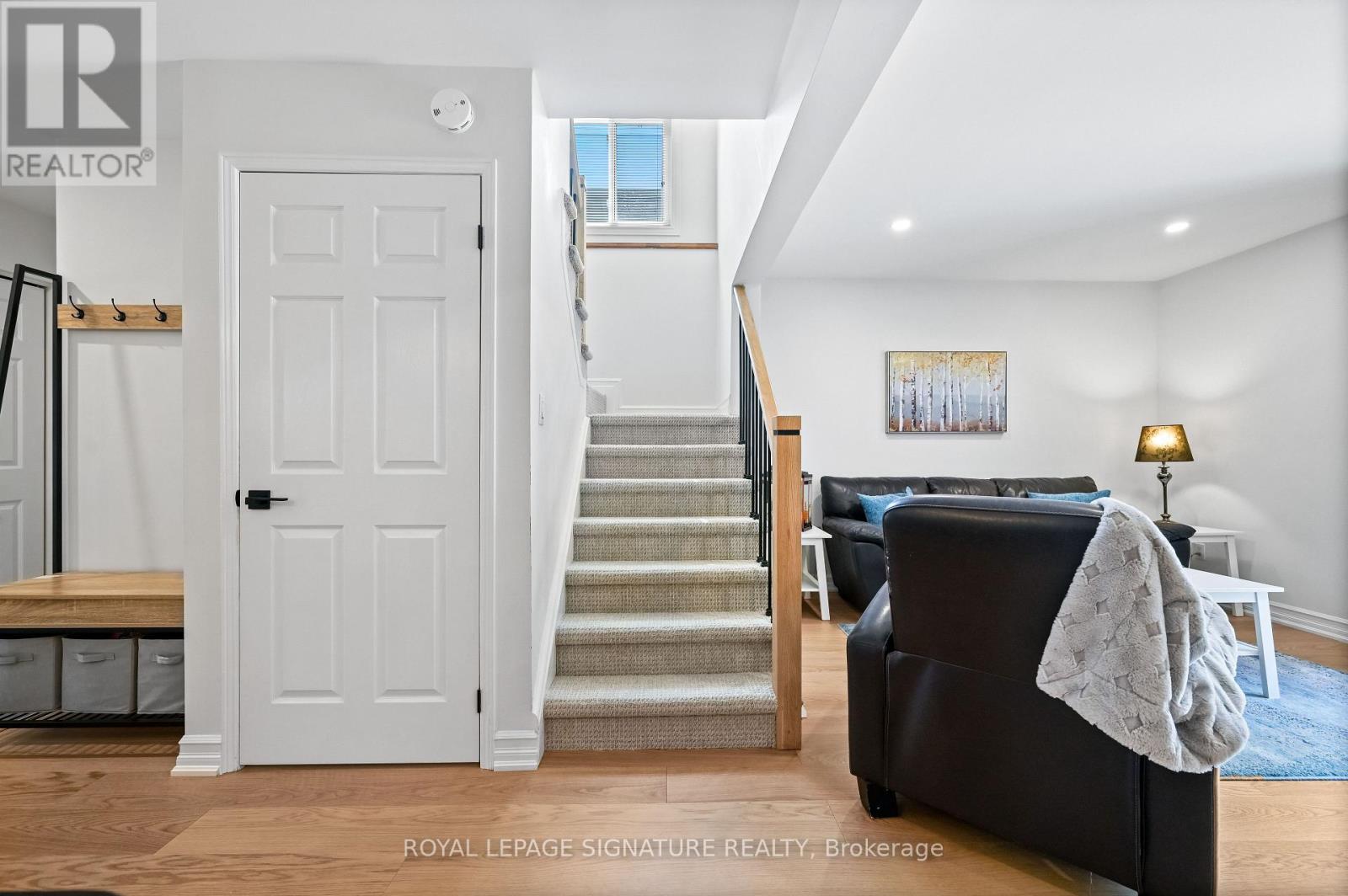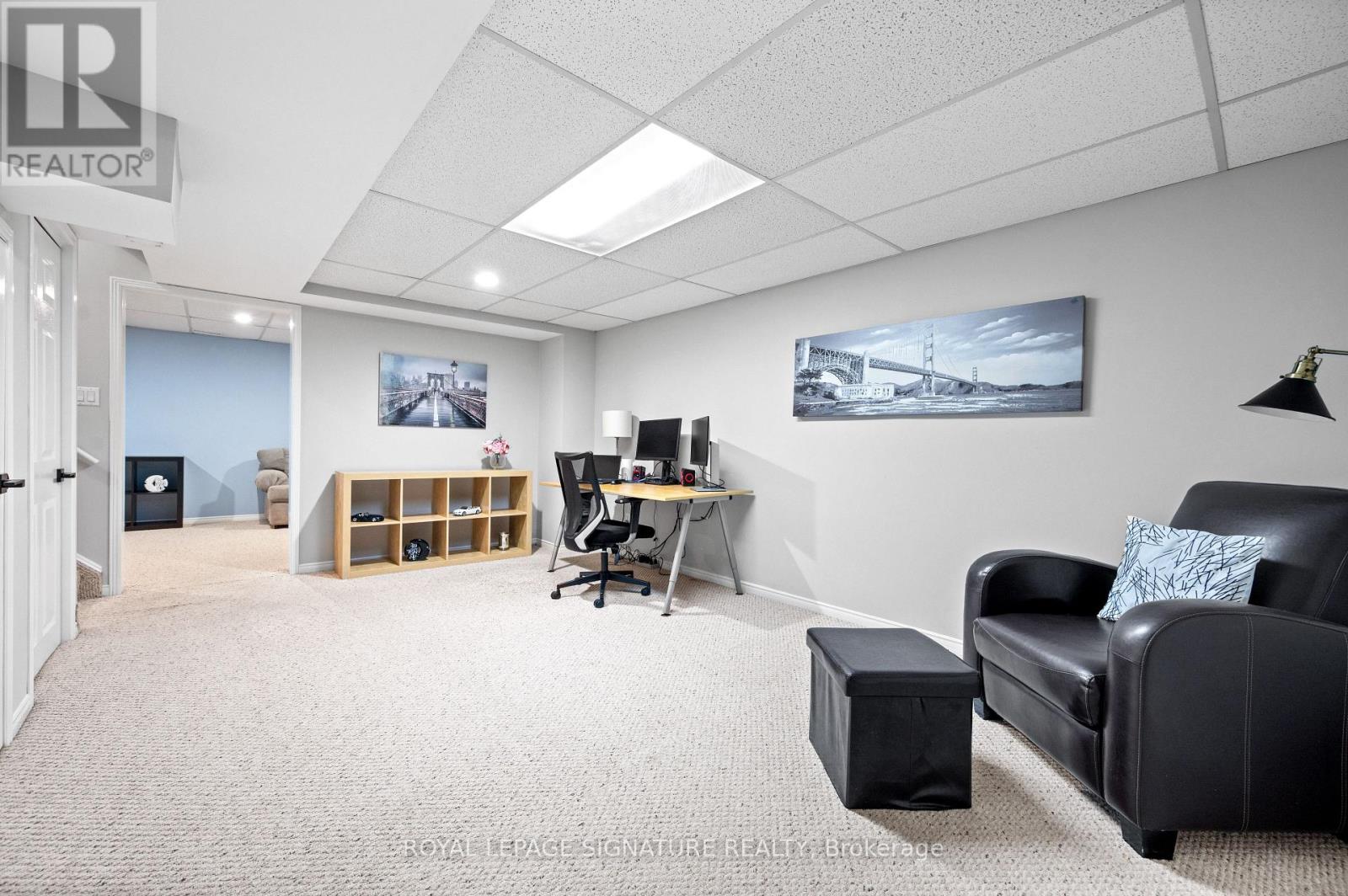Discover stylish family living in Burlington's coveted Headon Forest. This beautifully updated two-storey home offers 1,342 sq. ft. of thoughtfully designed space, freshly painted throughout and complemented by new carpeting on the upper level.The main floor welcomes you with engineered hardwood floors in the living and dining rooms,where large windows fill the space with natural light. The extended kitchen is a highlight,featuring granite countertops, custom cabinetry, and a bright breakfast nook-perfect for casual meals or morning coffee. A convenient powder room completes the level. Upstairs, three bedrooms and two bathrooms provide comfort and privacy, with the primary suite offering generous closet space. The professionally finished basement expands your living options with a spacious rec room and flexibility for a home office or playroom.Step outside to a private, landscaped yard with an oversized deck overlooking mature greenery-ideal for entertaining or unwinding.Set on a quiet, family-friendly street, this home is steps to parks, trails, and top-rated schools. Headon Forest is loved for its mature trees, welcoming spirit, and everyday conveniences, with shopping, dining, highways, and GO Transit minutes away.A move-in ready home in one of Burlington's most sought-after neighborhoods-book your private showing today. (id:51158)