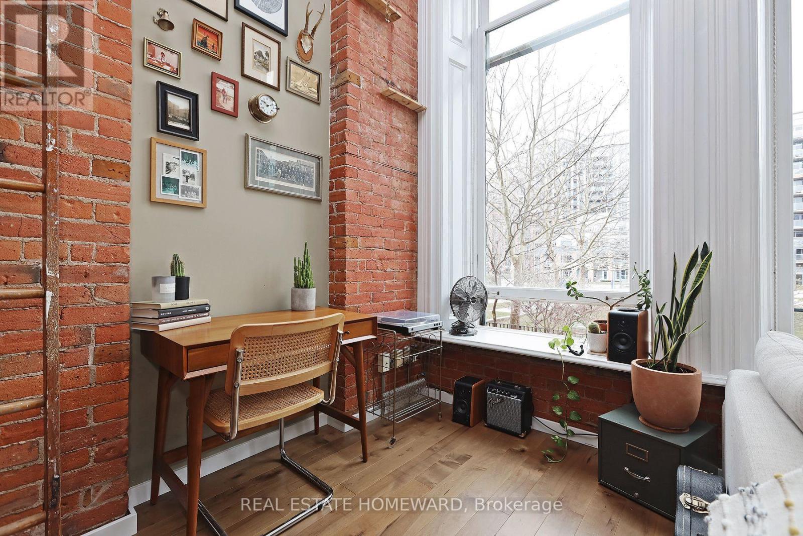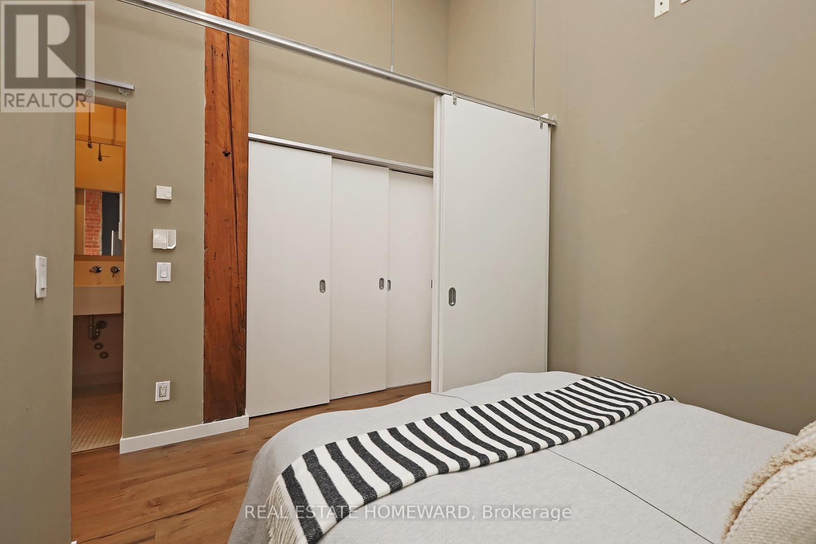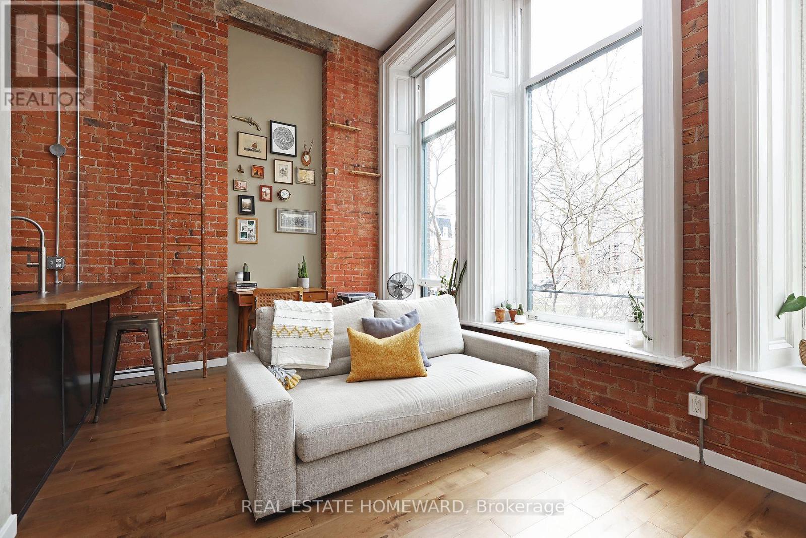 Welcome to the Massey Harris Lofts! This 1 Bedroom + 1 Bathroom hard loft is awaiting your arrival! Rare West-Facing Unit Offers Both A Stunning View Of The Park And Tons Of Light Through Huge, Beautiful Windows! It Features 100+ Year Old Exposed Brick and Wood Beams, 13 Ft High Ceilings, Wood Floors And Cozy Radiant Floor Heating. Boutique Loft Building In Prime King West Neighbourhood. Only Steps To Shops, Restaurants & Cafes On King/Queen West And Liberty Village. King Streetcar Also At Your Door. Furnished for $3150/month (id:51158)
