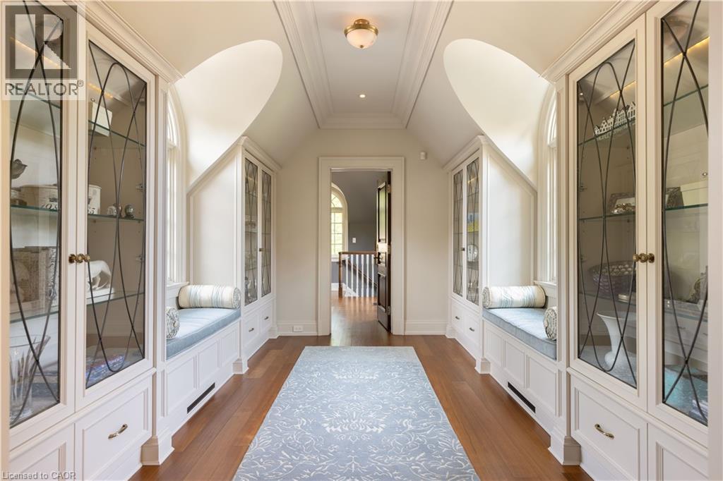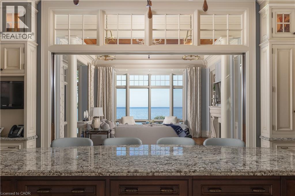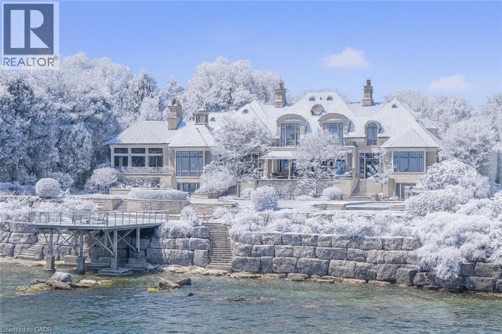 2054 Lakeshore Rd. East is one of Oakville's finest lakefront estates.Situated on 1.6 acres & 164.22 ft of pristine shoreline, complete with deck, & stairway access to the water. Designed by renowned architect Gren Weis & brought to life by the exceptional craftsmanship of Coulson Fine Homes.This magnificent 7-bdrm, 13-bath home spans an impressive 19,210 sq ft.Step into the grand formal entrance where limestone cast walls create a dramatic first impression serving as a prelude to the extraordinary spaces beyond.The residence showcases 12 ft ceilings on the main level, Brazilian walnut flooring thru-out & custom cabinetry adorns this remarkable home.The estate features an expansive living & dining rm w/breathtaking water views, perfect for intimate gatherings or grand celebrations.Step outside to the covered terrace where you can relax to the sounds of the Bellagio inspired fountains & waterfall.The gourmet open-concept kit.flows effortlessly into the fam.rm where water views & fp create a relaxed & comfortable space.The lower-level transforms into an entertainer's paradise, w/a state-of-the-art home theatre, gym w/direct access to the infinity edge pool, steam room, golf simulator, wine cellar, billiards area w/rec room & catering kit.A private 2-bdrm nanny suite w/sep. entrance provides additional flexibility.An elevator gives you convenient access to all 5 levels of this thoughtfully designed home.The outdoors offers multiple entertaining areas nestled within the manicured landscaped grounds, the lakefront deck & poolside.The power screened sunroom offers 3 season enjoyment. His&Her double car garages to accommodate 4 vehicles w/additional parking for 15 more on the circular driveway & auxiliary prkng areas-perfect for hosting memorable events.This waterfront estate represents more than just a home it's a lifestyle statement where every detail has been carefully curated to create an environment of uncompromising luxury & comfort. LUXURY CERTIFIED. (id:51158)