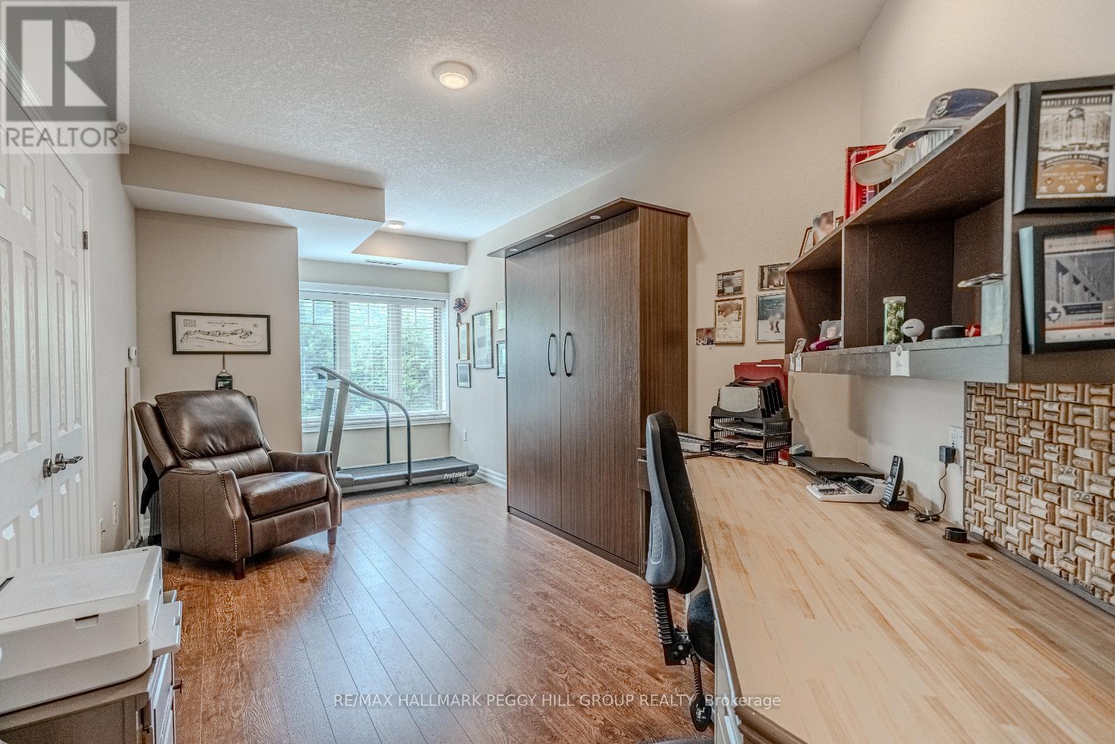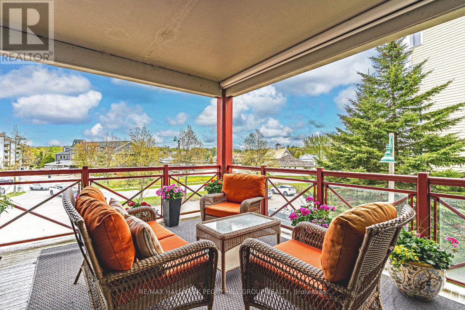 DOWNSIZE THE MAINTENANCE, UPSIZE THE LIFESTYLE! Imagine mornings filled with Muskoka air, coffee on your balcony, and a view of the Muskoka River setting the pace for the day. This bright 3-bedroom, 2-bathroom condo offers over 2,000 sq ft of inviting living space that feels more like a retreat than a residence. Soaring 9-ft ceilings, crown moulding, and rich walnut hardwood bring warmth and elegance, while the kitchen steals the show with granite countertops, white cabinetry, stainless steel appliances, a tile backsplash, and a centre island. All major appliances were replaced in 2016, including the induction range with a baking drawer, convection microwave, refrigerator, dishwasher, washer, and dryer. Kick back in the family room with custom-built cabinetry surrounding the TV, an electric Napoleon fireplace (2016), and a walkout to your private balcony. The living room adds extra comfort with a gas fireplace. The primary suite is tucked into its own wing with a wood plank tray ceiling, walk-in closet, and a 4-piece ensuite featuring a relaxing soaker tub and separate shower. The third bedroom includes a Murphy bed (2016), perfect for guests or working from home while in-suite laundry adds everyday ease. Updated flooring includes tile in the kitchen and family room, walnut hardwood in the dining and living areas and hallway, and laminate in the office. A large covered patio offers the perfect spot to relax with a book, sip evening drinks, or enjoy lazy summer mornings, rain or shine. Walk to the Peninsula Trail, Muskoka Wharf boat launch, Discovery Centre, shops, dining, and essentials. No outdoor maintenance means more time to enjoy life in this vibrant waterfront community, with maintenance fees covering internet, gas, building insurance, and common elements (hydro averages approximately $50 per month). Whether you're downsizing, escaping on weekends, or settling in for good, this #HomeToStay makes it easy to love where you live. (id:51158)