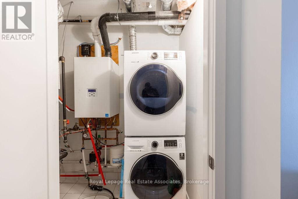 $429.30 MonthlyWelcome to 207-1711 Pure Springs Blvd a beautifully upgraded, 2-bedroom, 3-bath stacked townhome in one of Pickering's most desirable communities! Just 6 years old, this modern home boasts 9-foot ceilings on the main floor, heated laminate flooring, and a bright, open-concept layout that's perfect for both everyday living and entertaining. The stunning kitchen features quartz countertops, upgraded cabinetry, and stainless steel appliances, offering both style and functionality. Upstairs, you'll find two spacious bedrooms, convenient second-floor laundry, and modern baths with sleek finishes throughout. Enjoy a carpet-free lifestyle with quality laminate throughout both levels. Ideally located near Hwy 401 & 407, top-rated schools, parks, shopping, and all amenities this is low-maintenance living with high-end style. A perfect choice for first-time buyers, downsizers, or investors alike! (id:51158)
