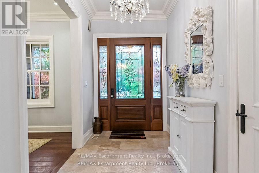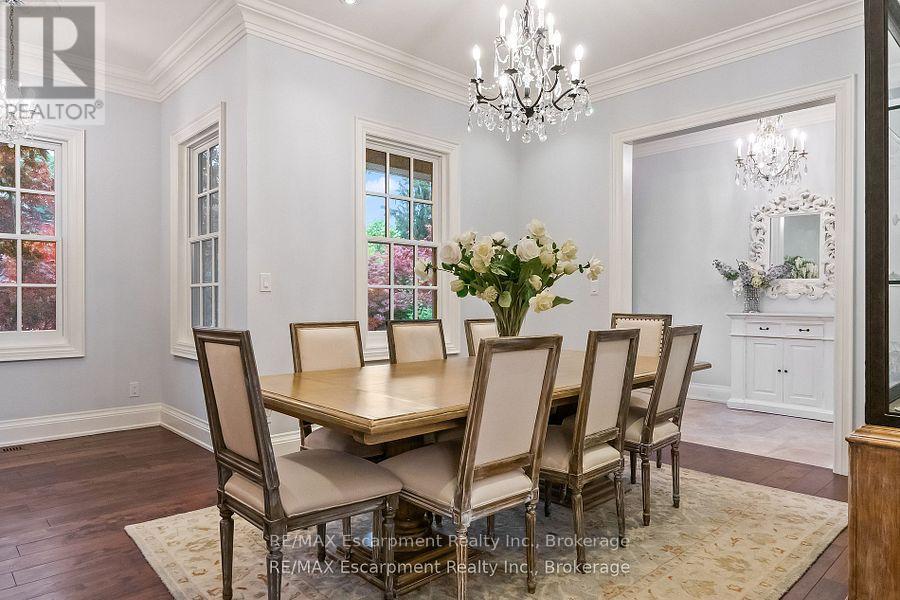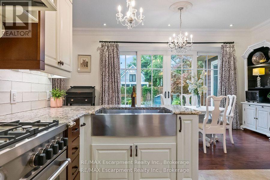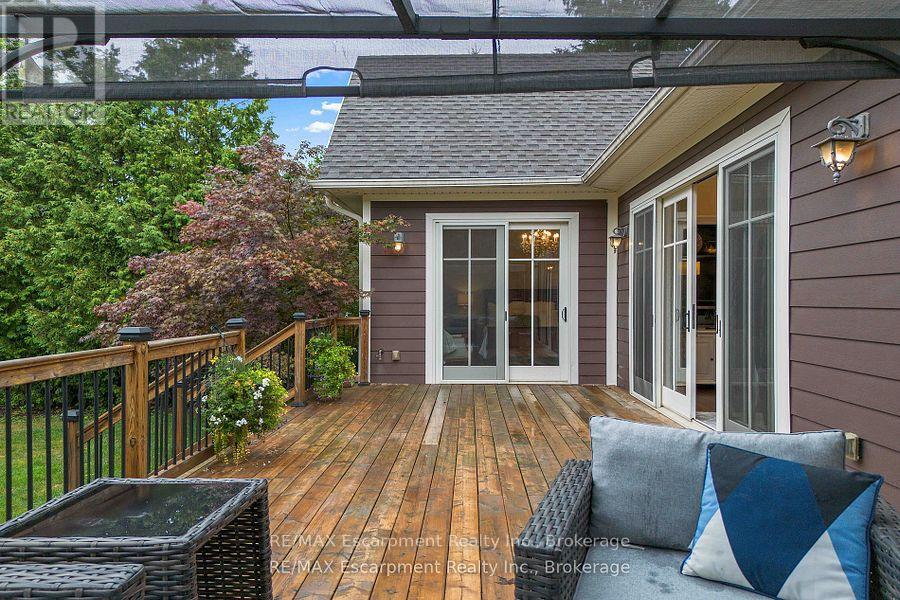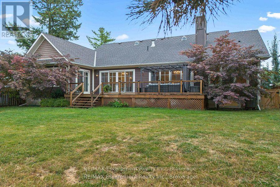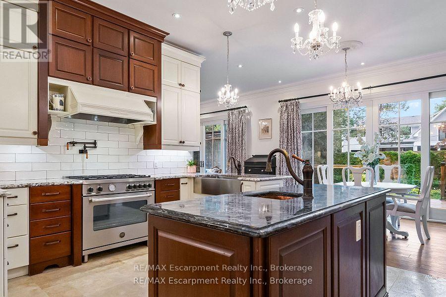 Discover this stunning custom-built bungalow nestled in prestigious Southeast Oakville, where architectural excellence meets family comfort. This exceptional property showcases 4,356 square feet of thoughtfully designed living space on a premium-sized lot with an expansive backyard perfect for outdoor activities. The main floor impresses with soaring 10-foot ceilings and gleaming hardwood floors throughout. Enter through formal dining and living areas, where a gas fireplace creates warmth while 8-foot sliding doors flood the space with natural light. The open-concept kitchen stands as the home's culinary centerpiece, featuring granite countertops, a Bertazzoni gas stove, and distinctive Belfast sink. The breakfast area provides convenient deck access for seamless indoor-outdoor entertaining. The luxurious primary bedroom offers a five-piece ensuite complete with clawfoot soaker tub, spacious walk-in closet, and French sliding doors leading to the deck. Two additional generously-sized bedrooms complete the main level, ensuring comfortable family living. The finished lower level expands your living options with a large recreation room featuring its own gas fireplace, dedicated games area, wet bar, laundry facilities, and two additional bedrooms ideal for guests or extended family. Outside, the expansive deck provides an ideal entertaining space, while the double-wide driveway accommodates six vehicles plus a two-car garage. This quiet, family-oriented neighbourhood offers proximity to top-rated schools including Oakville Trafalgar High School, Deer Run Park for recreation, convenient grocery shopping at Sobeys Maple Grove, and excellent transit connections. Experience the finest Southeast Oakville living in this move-in ready home. Luxury Certified. (id:51158)