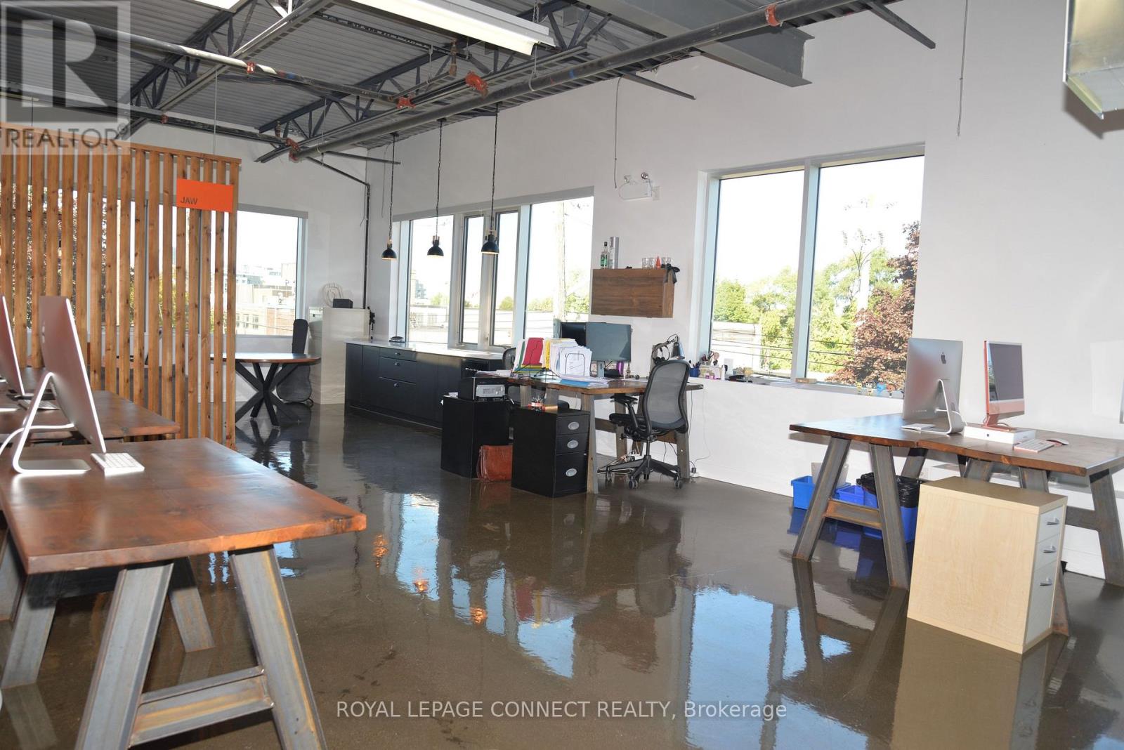 A Highly Functional, Bright Second Floor Corner Unit Boasting High Exposed Ceilings, Three Walls Of Wrap Around Windows (North, East, West Exposure), And Gleaming Concrete Floors, All Meticulously Renovated With High-End Modern Finishes. Unit Is Equipped With A Modern Kitchenette, Custom Lighting Throughout, Newly Built Washroom, Alarm System, And Two Care Allotted Parking. This Open Concept Layout Can Be Partitioned Into Individual Work Stations Or Simply As An Open Show Room Operation/Display. Property Is Surrounded By Newly Completed And Pending Development Projects. Walking Distance To Smart Centers, Retail Stores, Restaurants, Cafes, And More. Property Is Situated In A Central Transportation Hub With Easy Access To Yonge Street, HWY 404, HWY 401, Public Transit, And The Upcoming LRT. E01 Zoning Allows For A Broader Range Of Industrial And Commercial Uses. (id:51158)