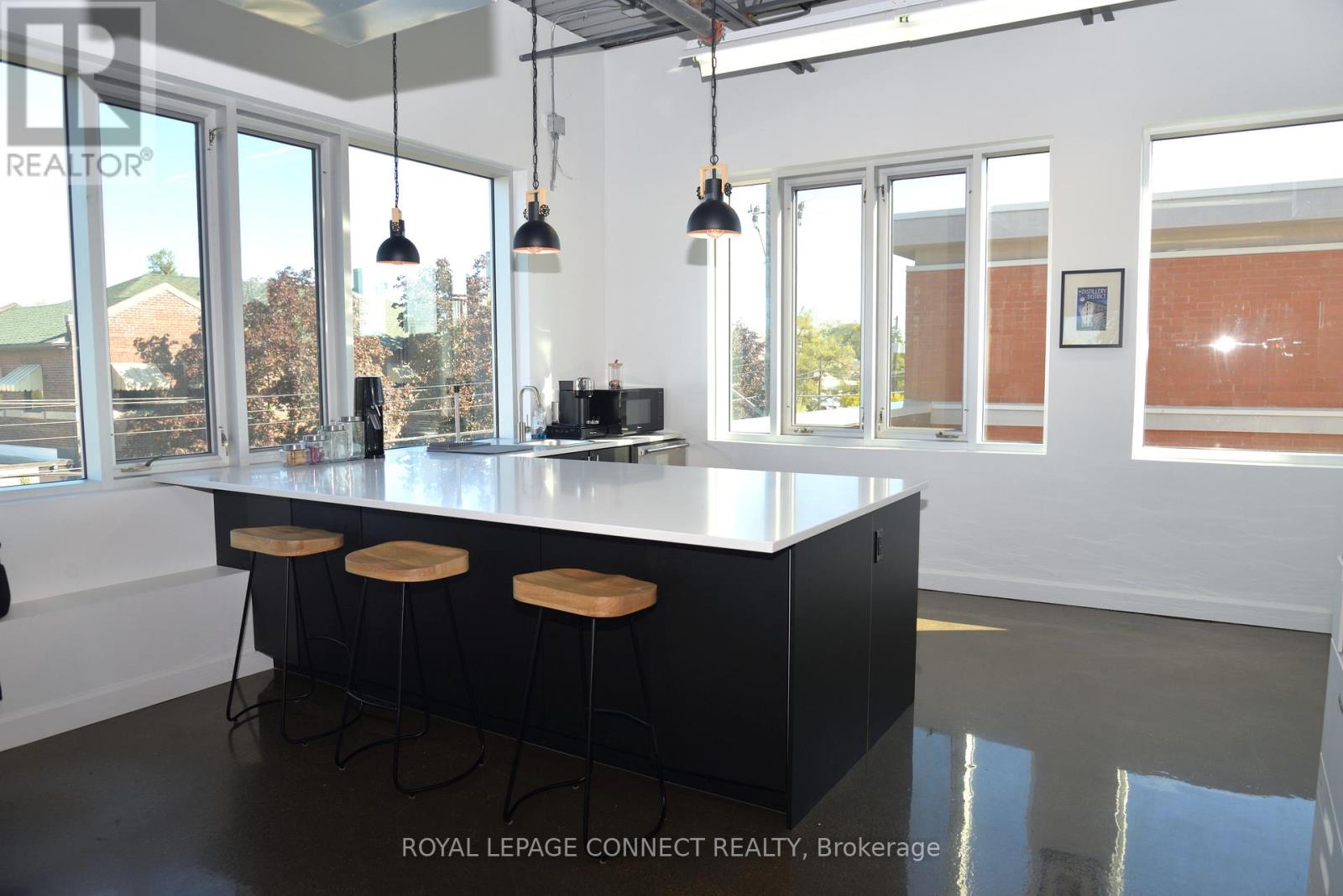 A Highly Functional, Bright Second Floor Corner Unit Boasting High Exposed Ceilings, Three Walls Of Wrap Around Windows (North, East, West Exposure), And Gleaming Concrete Floors, All Meticulously Renovated With High-End Modern Finishes. Unit Is Equipped With A Modern Kitchenette, Custom Lighting Throughout, Newly Built Washroom, Alarm System, And Two Care Allotted Parking. This Open Concept Layout Can Be Partitioned Into Individual Work Stations Or Simply As An Open Show Room Operation/Display. Property Is Surrounded By Newly Completed And Pending Development Projects. Walking Distance To Smart Centers, Retail Stores, Restaurants, Cafes, And More. Property Is Situated In A Central Transportation Hub With Easy Access To Yonge Street, HWY 404, HWY 401, Public Transit, And The Upcoming LRT. E01 Zoning Allows For A Broader Range Of Industrial And Commercial Uses. (id:51158)