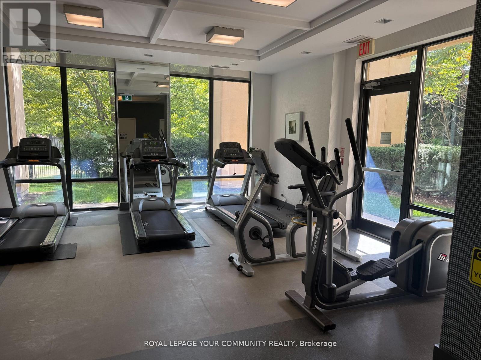 $678.72 MonthlyStylish 1 + den condo with 2 full baths, thoughtfully designed open concept,9' ceiling, south facing with natural light and walk-out to large "108 SqFt Terrace with a drain" to enjoy when the weather allows. "Upgraded engineered hardwood floor throughout" by the builder. Located steps from TTC, top-rated schools, Promenade Mall, Center Point Mall & other amenities. This home offers comfort with exceptional convenience, maintenance fee includes water,heat. Includes premium amenities such as fully equipped gym, party rm, 24hr security on the weekends, billiard rm, TV room, library & guest room. Unit is tastefully painted (modern) with modern light fixtures. Extra large,private locker & very convenient parking spot in P1, close to the elevator. The unit offers style, comfort & convenience. (id:51158)