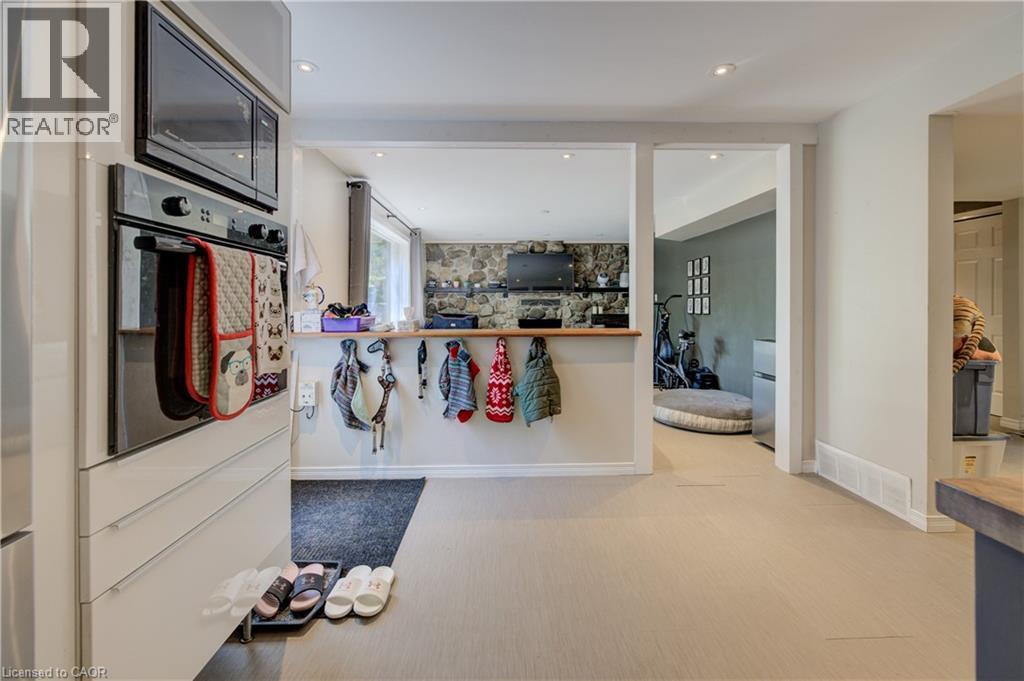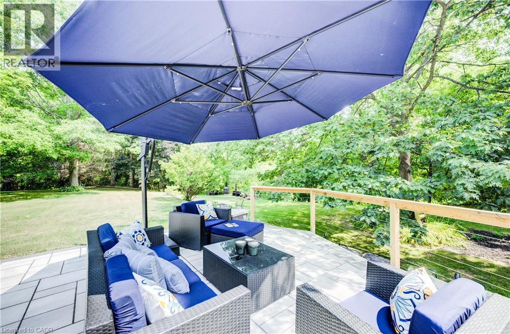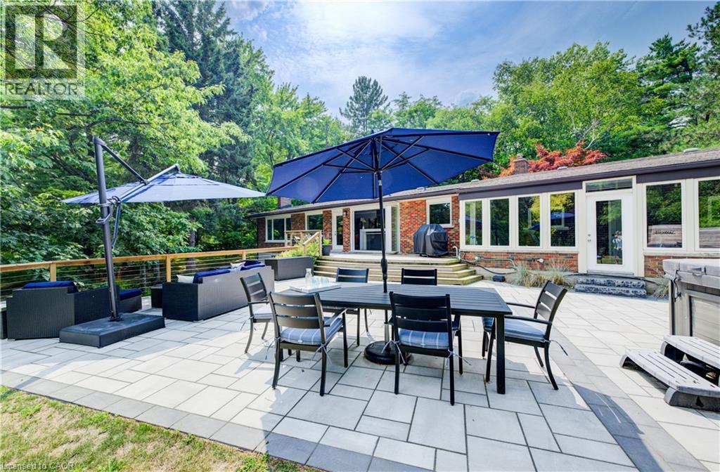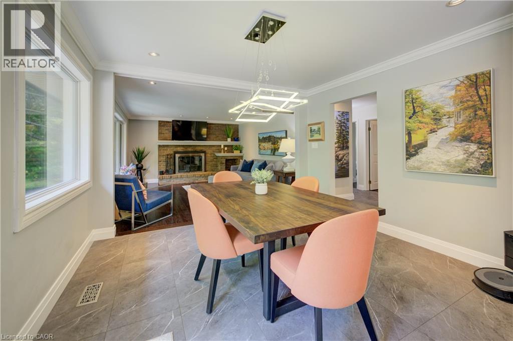 Set well back from the road for privacy, this beautifully updated bungalow offers an impressive blend of luxury, functionality, and space. With approximately 3,700 sq. ft. of finished living area on a lot of just under 1.4 acres, this home features an open, light-filled layout enhanced by modern finishes and newer windows throughout the main floor. The main level boasts a chef-inspired kitchen equipped with high-end Gaggenau appliances, seamlessly flowing into the dining and living areas. Step out from the kitchen to your own outdoor oasis – over $175,000 in professional landscaping has created a stunning retreat with lush gardens, multiple seating areas, and a relaxing saltwater hot tub, perfect for entertaining or quiet enjoyment. The walk-out basement offers incredible flexibility, with its own patio area and potential for rental income or a private in-law suite. Car enthusiasts and hobbyists will appreciate the double-car garage, a freshly redone driveway, and parking for up to 12 vehicles. Located just minutes from Highway 401, shopping, and easy access to Kitchener-Waterloo and Guelph, this property delivers the best of rural tranquility with urban convenience. (id:51158)