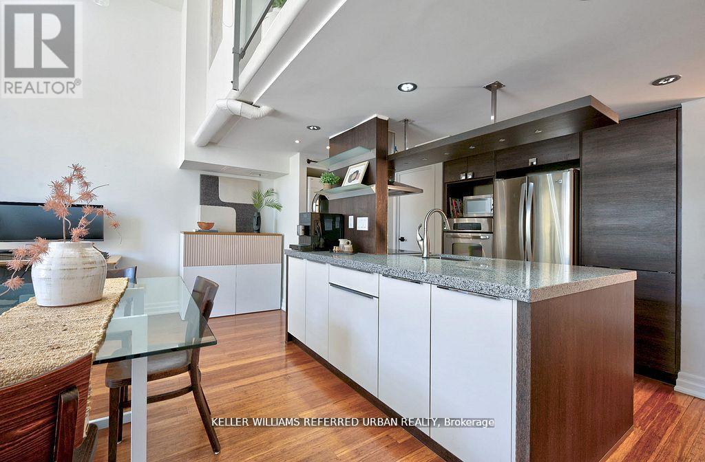 Welcome to Unit 209 at the Kensington Market Lofts - Where History Meets Edge. Why buy another bland glass box when you can own a piece of Toronto's cultural heartbeat? Unit 209 at the Kensington Market Lofts is a true hard loft that delivers substance, soul, and style - all in one unbeatable location. Step inside this bright, south-facing space with soaring ceilings, oversized factory windows, and modern designer upgrades. The custom Dacor induction kitchen, two bathrooms, bamboo and hardwood floors, and premium parking and locker make this both refined and functional. Plus, residents enjoy a lush, shared courtyard - a rare find in loft living. Award-Winning Heritage Conversion. Originally built in 1911 as the Koffler Furniture warehouse - later home to a public school and George Brown College - this building's rich history earned it the Heritage Toronto Award of Excellence (2006) and the City of Toronto Architecture & Urban Design Award (2007). Unbeatable Culture & Convenience. With a Walk and Bike Score of 100, you're steps from Kensington Market, U of T, Queen West, Chinatown, Little Italy, Trinity Bellwoods, and the AGO. World-class restaurants, live music, and art are literally at your doorstep. Smart Value, Real Character Own a piece of history - not a cookie-cutter condo. This is a rare opportunity to buy quality, design, and location at a price that won't last. This isn't just a loft. It's a lifestyle - bold, creative, and distinctly Toronto. (id:51158)