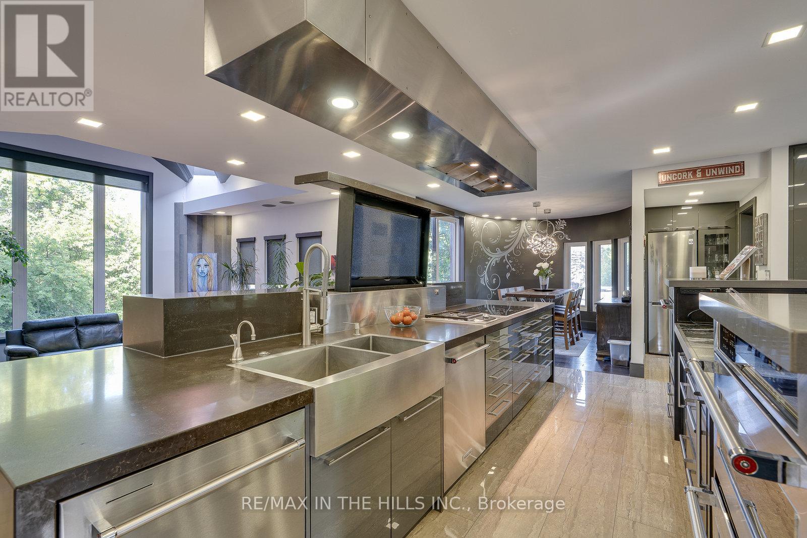 Modern Elegance Meets Natural Serenity Welcome to a truly exceptional residence where innovative design & luxurious finishes are nestled within acres of forested, park-like beauty. This fully transformed home offers a seamless blend of contemporary sophistication & natural charm. Step into the ultra-modern kitchen, thoughtfully designed for entertaining. Featuring a massive granite island, high-end appliances, double ovens, double dishwashers & a hidden telescoping TV, this space is both functional & stylish. A walk-in pantry with a separate entry adds convenience. The primary suite is a private retreat, complete with its own balcony overlooking the tranquil forest. Indulge in the unique 8-piece His & Her ensuite, showcasing a glass shower with dual heads & body jets, creating a spa-like experience. Soaring ceilings & expansive glass elements bathe the home in natural light, enhancing its open & airy ambiance. Enjoy evening sunsets or a nightcap from the third-level lookout deck, offering panoramic views of the surrounding landscape. The walk-out basement provides a comfortable & private space for extended family or guests, featuring a secondary kitchen, living area, bedroom, full bath, office & its own patio with access to vegetable gardens. A unique 4 car garage includes a dedicated workshop & a rear bay door to access the yard. Wonderful landscaping with easy-care gardens surrounding the backyard fire pit are perfect for BBQs & marshmallow roasting. A flat grassy area has room for soccer games & a secondary driveway offers ample space for spillover parking or even a spot for your RV. Rarely does a property of this caliber become available in such an established rural subdivision. With its unmatched amenities & serene setting, this home is a must-see. Schedule your private tour today & experience the perfect harmony of luxury & nature. (id:51158)