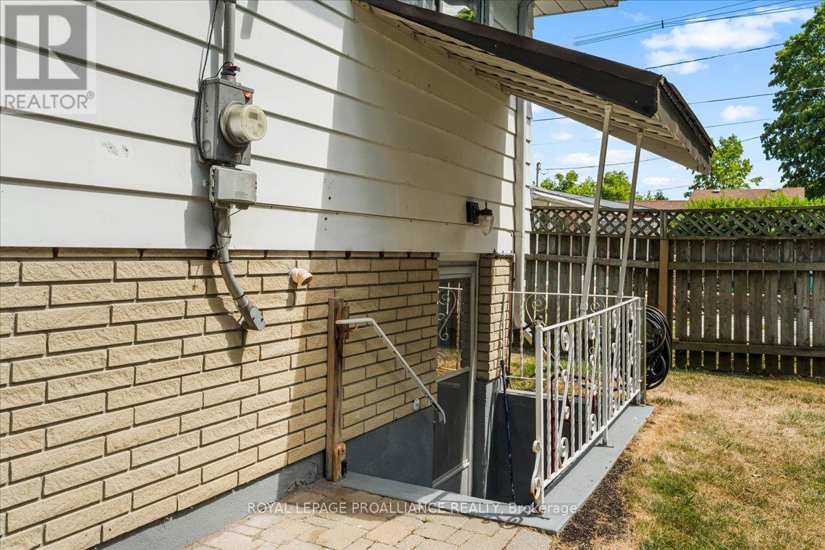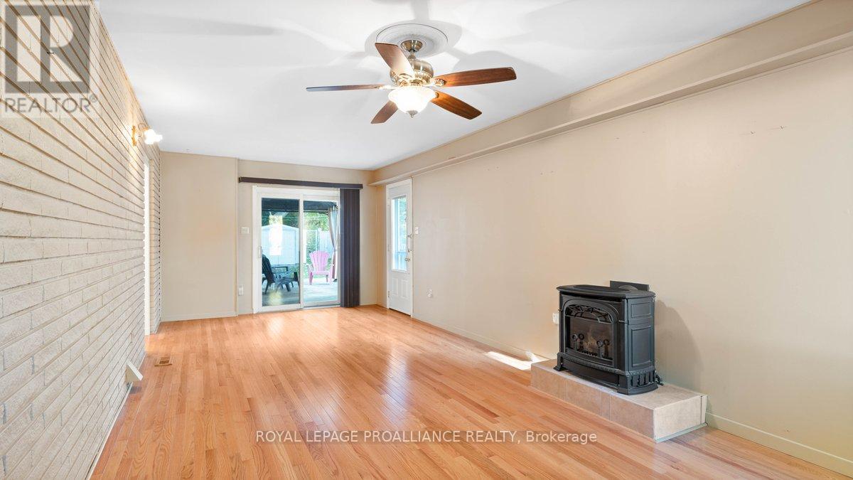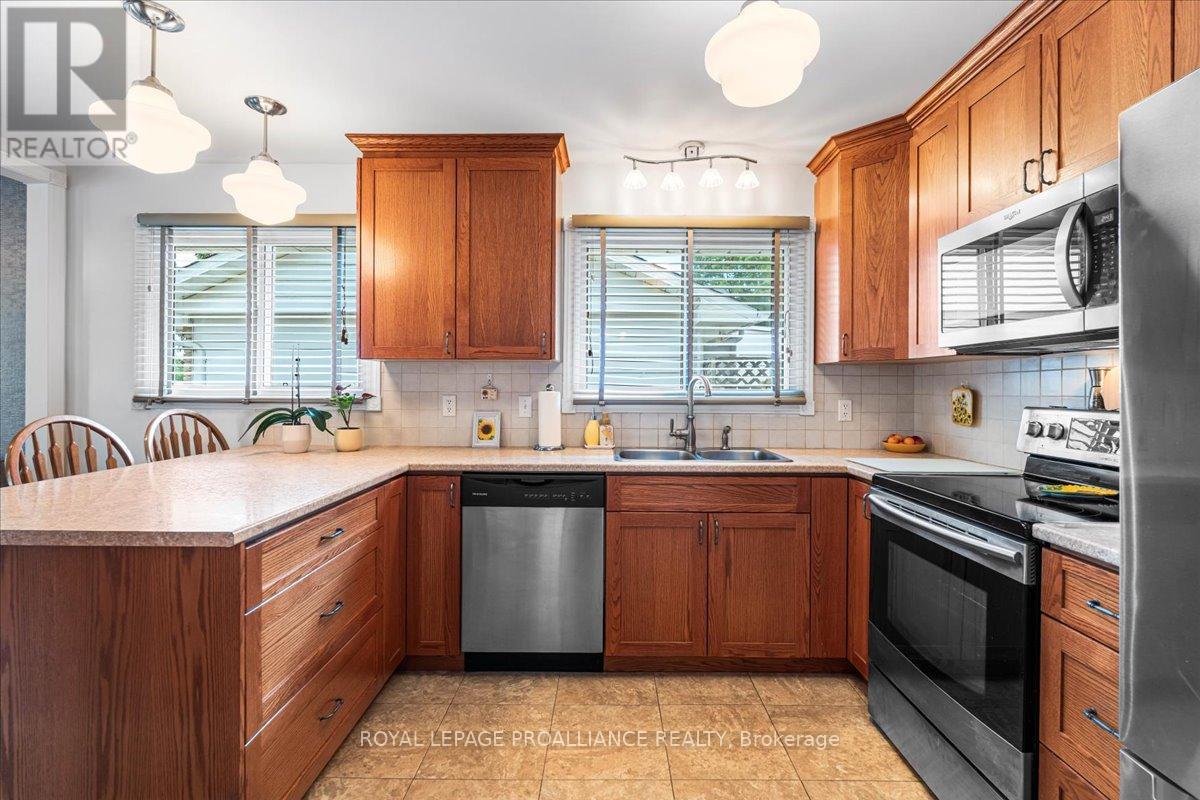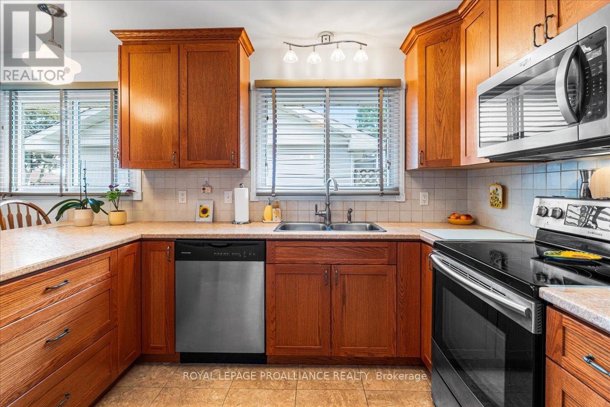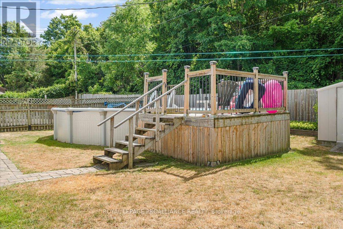 Meticulously maintained 3 bedrooms, 2 bath backsplit located on a quiet street in a good family neighbourhood in west end of Trenton. Walking distance to schools and shopping, only 10 minute drive to CFB, 401 for commuters. Main floor family room with gas fireplace and patio doors to large deck. Large window lets the natural light filter in to the Living room with fireplace , updated kitchen with soft close feature, newer appliances and a cozy dining area for ease of entertaining family and friends. Basement has rec room/office, workshop , laundry area and convenient walkout to backyard. Nat. gas heat, central air , hardwood floors, metal roof,24 ft above ground pool, fully fenced private backyard with gate to park behind. Great curb appeal with double paved driveway and beautiful gardens. This property offers the perfect blend of comfort and convenience. (id:51158)