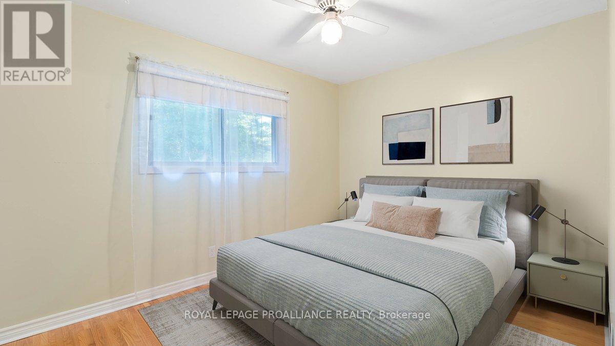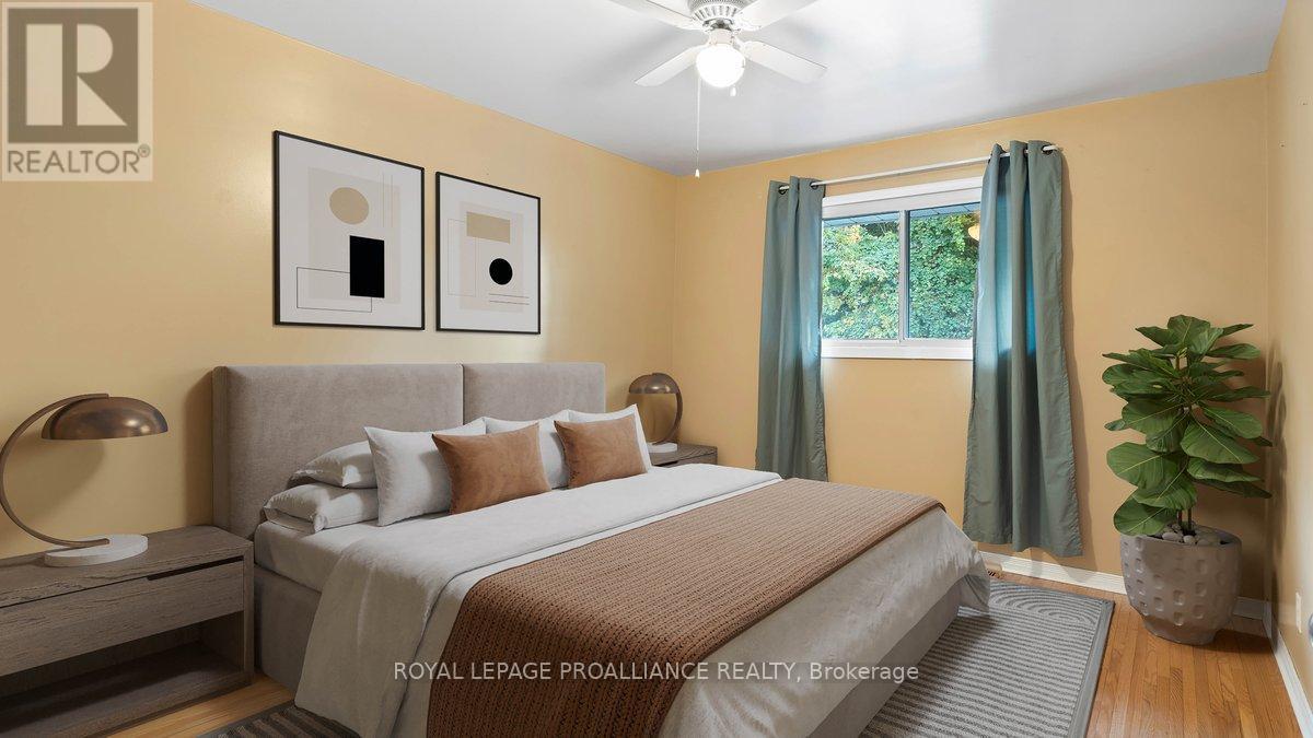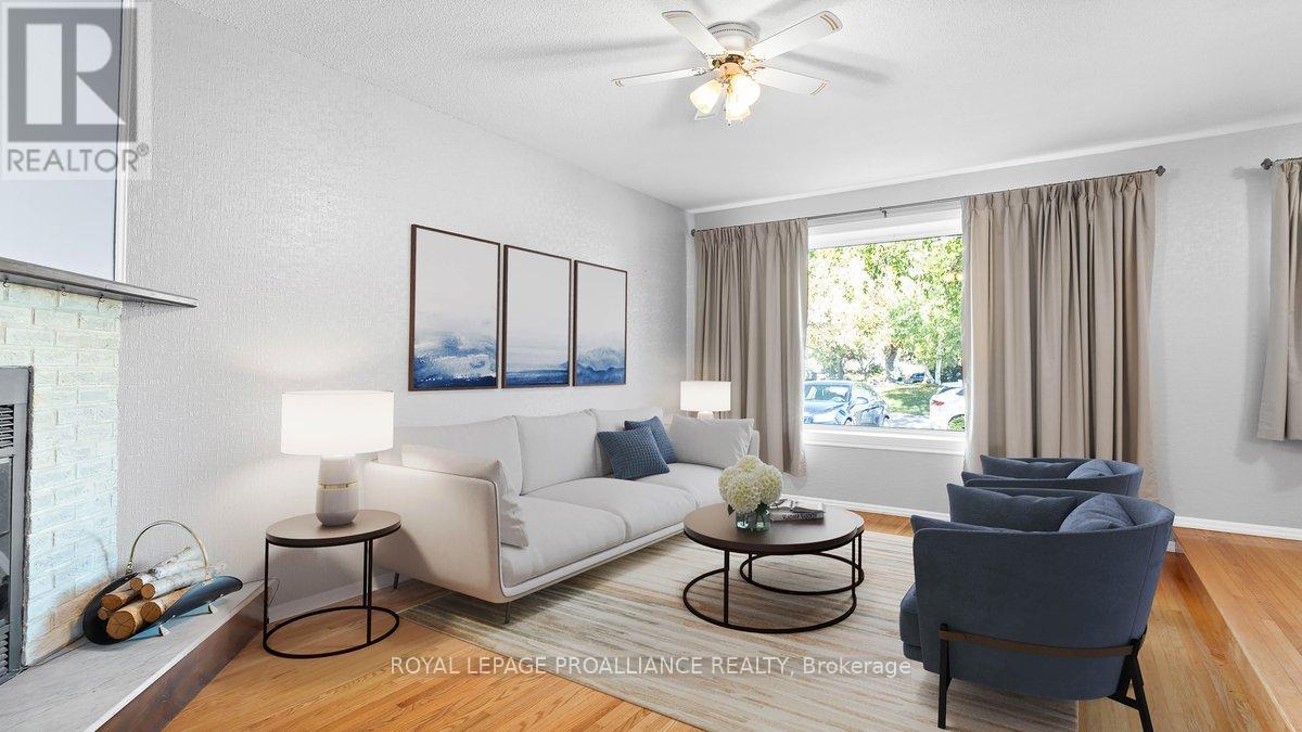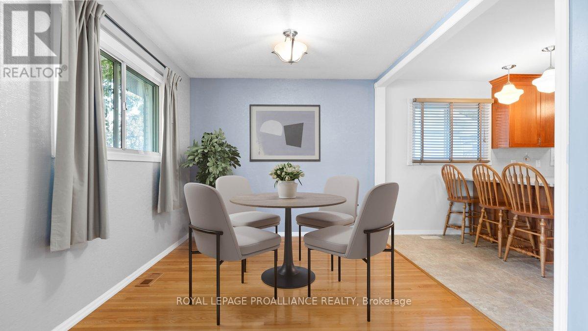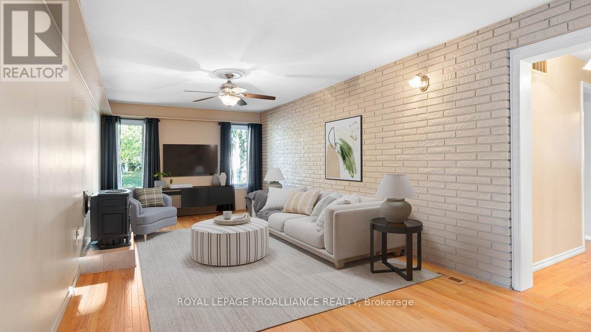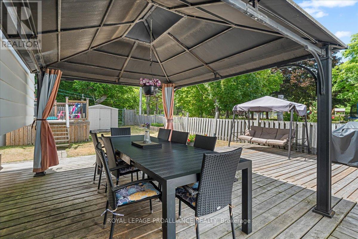 Meticulously maintained 3 bedrooms, 2 bath backsplit located on a quiet street in a good family neighbourhood in west end of Trenton. Walking distance to schools and shopping, only 10 minute drive to CFB, 401 for commuters. Main floor family room with gas fireplace and patio doors to large deck. Large window lets the natural light filter in to the Living room with fireplace , updated kitchen with soft close feature, newer appliances and a cozy dining area for ease of entertaining family and friends. Basement has rec room/office, workshop , laundry area and convenient walkout to backyard. Nat. gas heat, central air , hardwood floors, metal roof,24 ft above ground pool, fully fenced private backyard with gate to park behind. Great curb appeal with double paved driveway and beautiful gardens. This property offers the perfect blend of comfort and convenience. (id:51158)