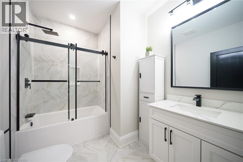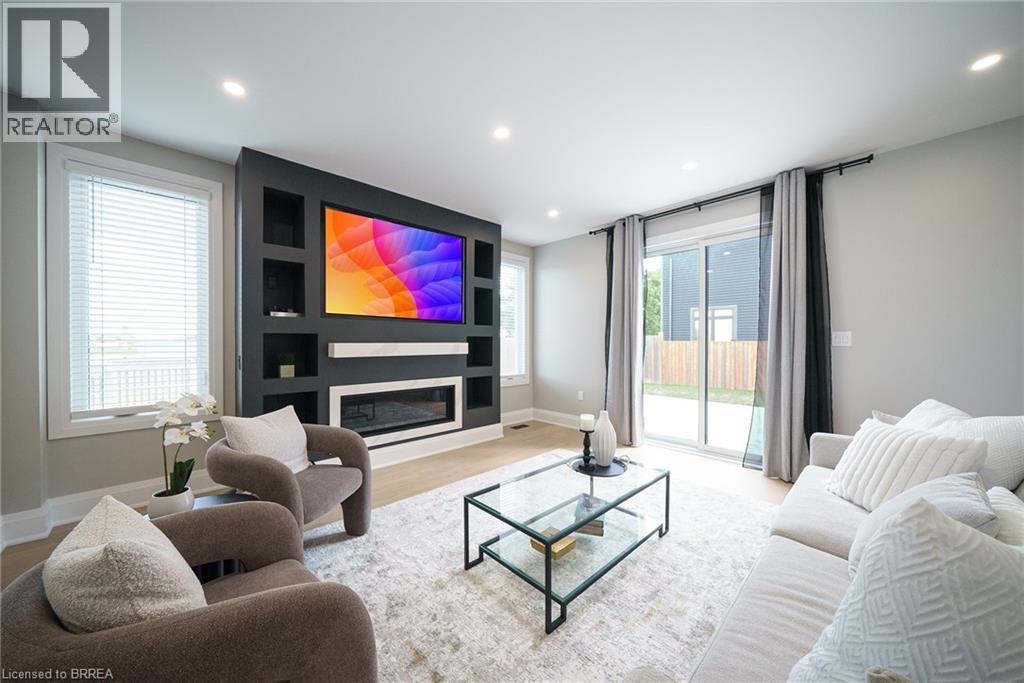 Welcome to 21 Haldimand 66 Road, Haldimand County! Discover the definition of modern luxury in this fully finished home offering nearly 4,000 sq ft of impeccable living space, set on a premium 100 x 115 ft lot. With 3.5 bedrooms, 3.5 baths, and a show-stopping design, this residence blends sophistication, comfort, and versatility. From the moment you step inside, the porcelain tile foyer, black trim accents, and striking feature staircase set the tone for what’s to come. The living room is a statement space with its floor-to-ceiling gas fireplace, expansive windows, and pot-lit ambiance. Entertain in style in the open-concept kitchen and dining area, complete with quartz counters, a full-height backsplash, designer lighting, and premium stainless steel appliances (2022). The primary suite is your private retreat, featuring wide-plank engineered hardwood, oversized windows, and a spa-inspired ensuite with a glass walk-in shower, quartz vanity, and chic black fixtures. Two additional bedrooms offer modern comfort, while the main floor also boasts a designer powder room and a fully equipped laundry with cabinetry, folding counter, and a bonus fridge/freezer. The lower level is an entertainer’s dream—or perfect in-law suite—with an open-concept layout, quartz wet bar, electric fireplace, stylish 3pc bath, dedicated bedroom, and fitness/office space. Step outside to your backyard oasis, complete with full fencing, a concrete patio, lush green space, and plenty of room for gatherings. The oversized driveway and double garage with Wi-Fi openers and video pin pad add convenience, while peace of mind comes from the new roof, windows, cistern, and septic (all 2022). Every inch of this home has been crafted with elegance and functionality in mind. Move in and experience the perfect balance of modern design, high-end finishes, and endless possibilities! (id:51158)