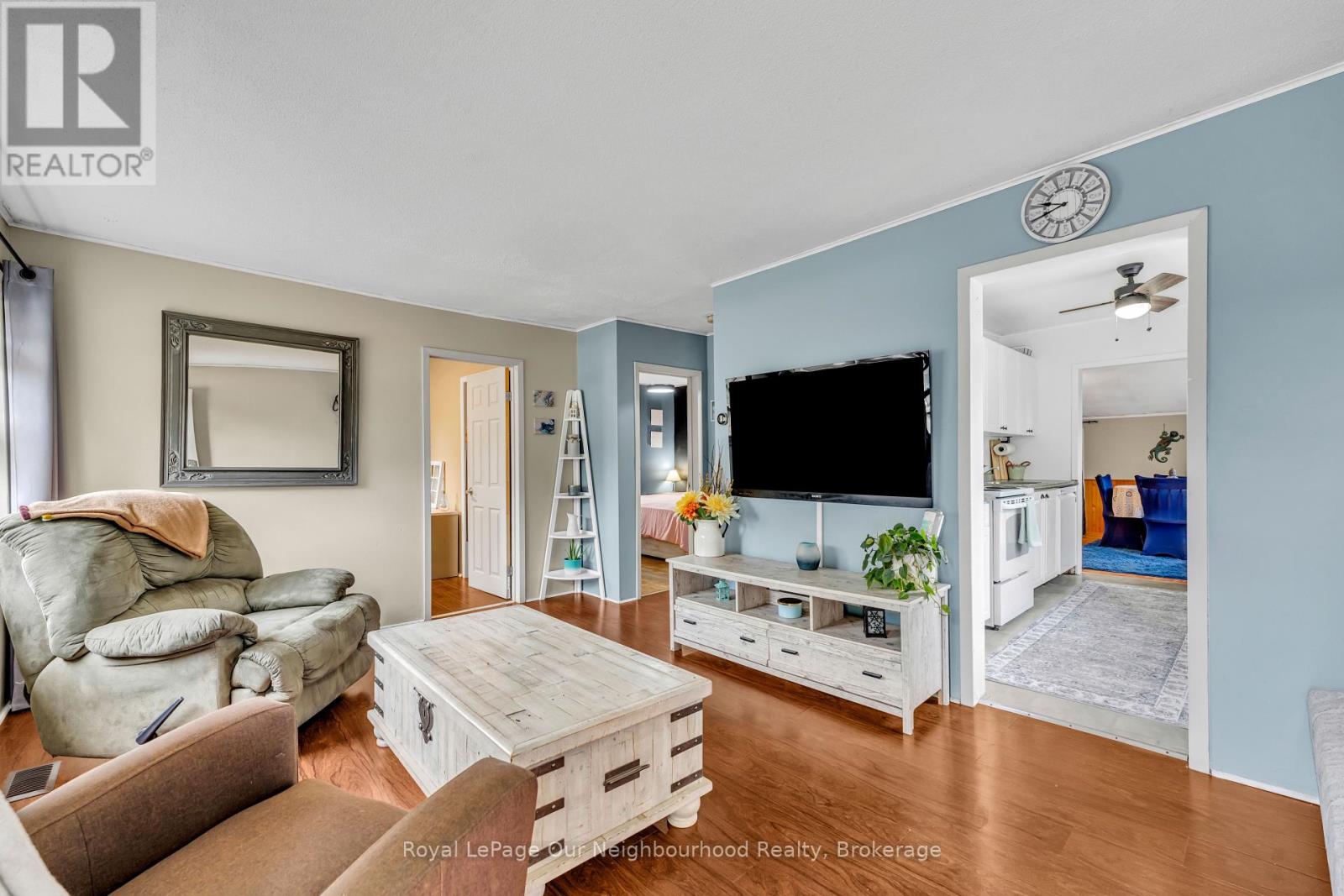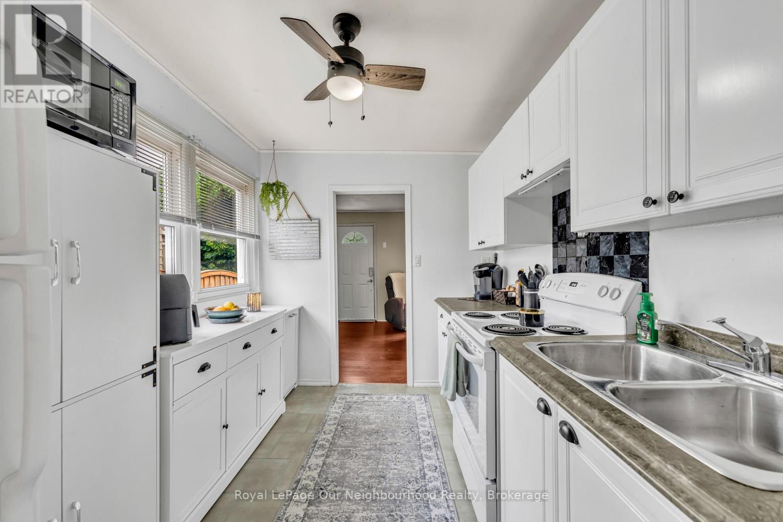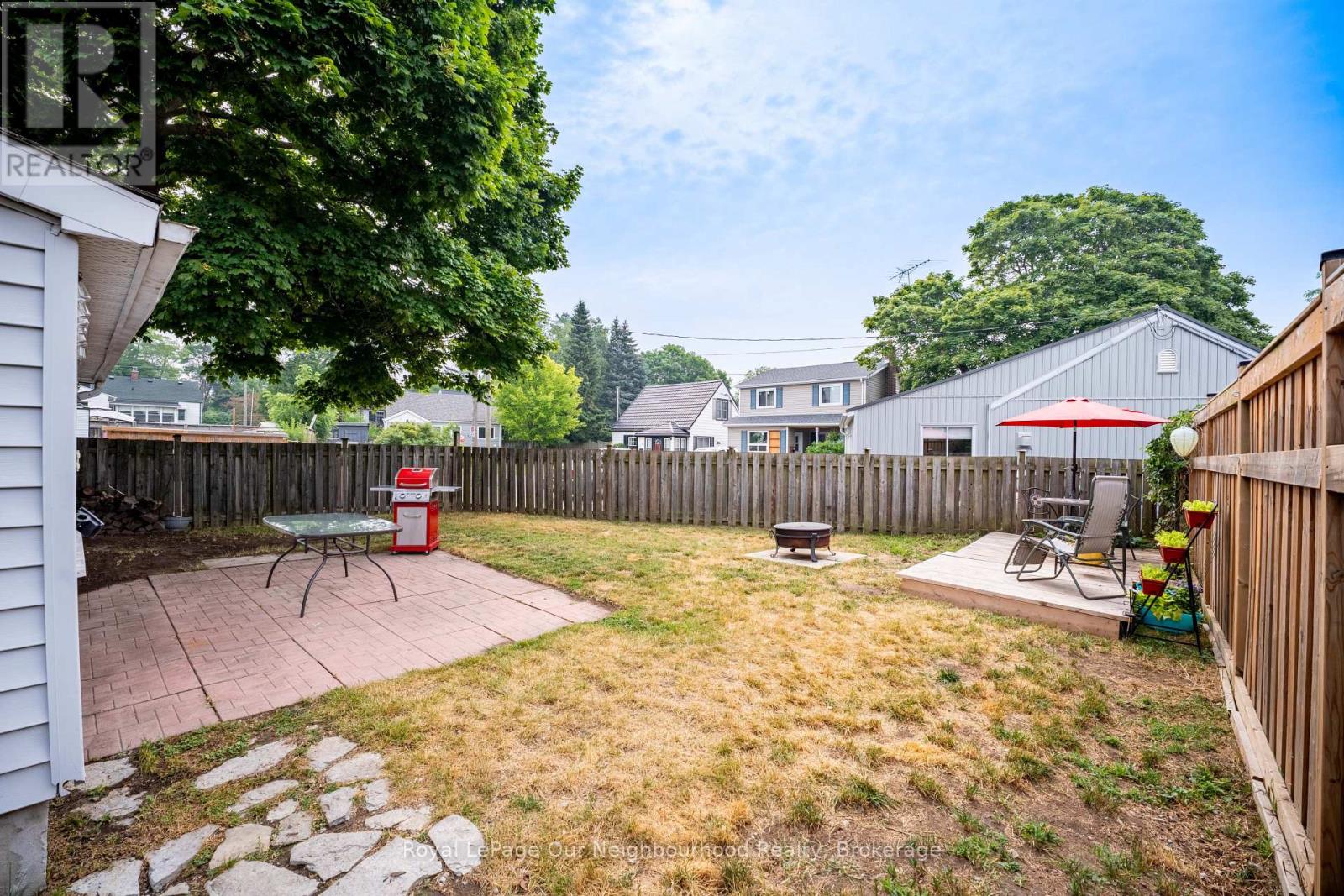 Charming 2-Bedroom Bungalow on Corner Lot Prime Location!Welcome to this well-maintained detached bungalow located on a quiet, family-friendly streetideal for first-time buyers or those looking to downsize. This 2-bedroom, 1-bath home features a functional galley kitchen, bright sunroom, and walkout to a fully fenced backyard.Set on a desirable corner lot, the home also boasts a full, partially finished basement offering ample storage space and great potential for a rec room, home office, or hobby area.Conveniently located near schools, parks, and with easy access to Hwy 401, this home offers affordable living in a fantastic neighborhood. Dont miss this opportunity! (id:51158)