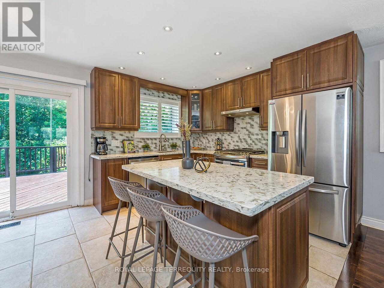 Rare Opportunity in North Etobicoke! Tucked away on a quiet cul-de-sac, this hidden gem offers the perfect blend of privacy and convenience. Backing onto a creek, enjoy your very own backyard oasis on a premium pie-shaped lot, complete with a large deck ideal for relaxing or entertaining. Inside, you'll find a bright and spacious open-concept layout filled with natural light. This well-maintained home features 3 spacious bedrooms, a separate entrance to a finished basement complete with a full-sized kitchen - ideal for multi-generational living, guests, or extra space for entertaining, heated garage. Roof replaced 5 years ago for added peace of mind. Unbeatable location: steps to shopping, restaurants, hospitals, parks, ravine trails, and transit. Minutes to Pearson Airport, Woodbine Casino, and major highways 401, 400, 407, and 427.This is a rare find in a sought-after pocket of North Etobicoke, don't miss out! (id:51158)