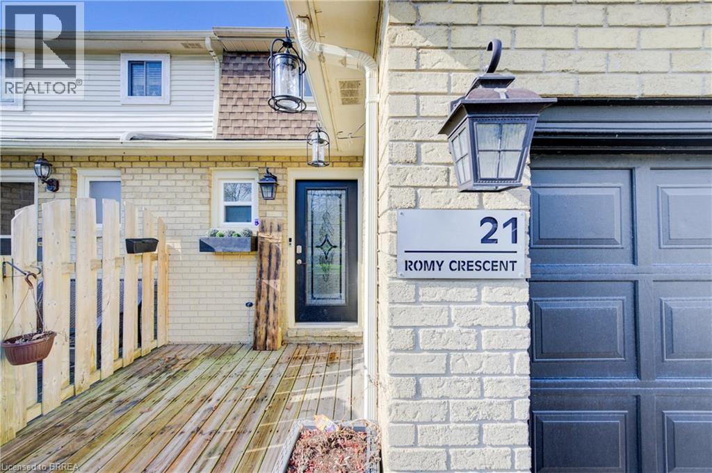 MLS# 40722226 – FOR SALE : 21 Romy Crescent Thorold – 3 Beds, 2 Baths Attached Row / Townhouse ** Stylish 3-bed, 2-bath townhouse in pristine, move-in ready condition! Features 1,235 sq ft of open-concept living with luxury laminate flooring, bright living room w/ wood fireplace insert, and patio doors leading to a fully fenced yard w/ updated decking. Chic kitchen boasts white cabinetry, quartz counters, backsplash & s/s appliances. Bonus: finished basement w/ large rec room, single attached garage, and convenient location near 406, QEW, Pen Centre, Brock U & transit. A must-see! (id:51158) ** 21 Romy Crescent Thorold **