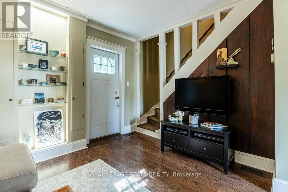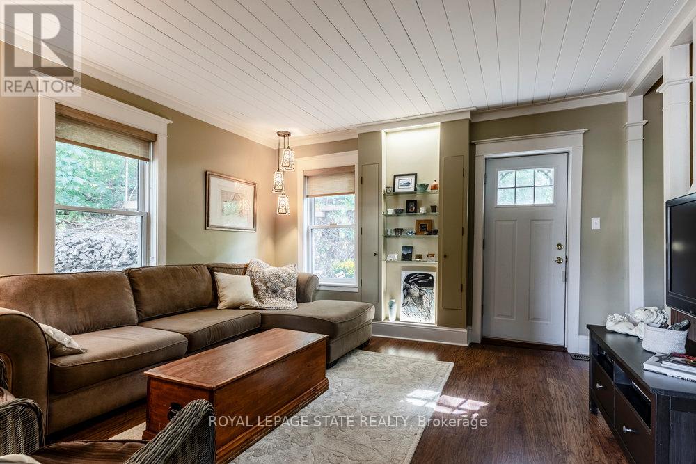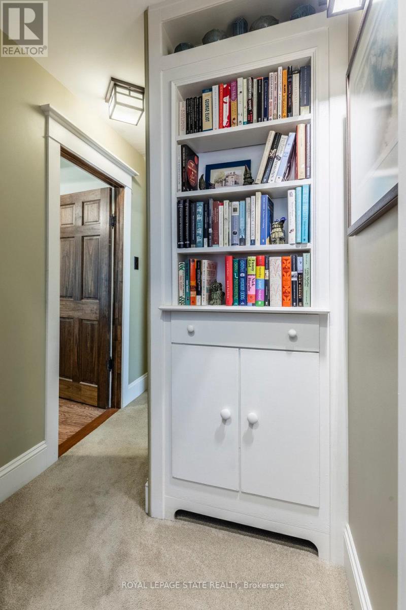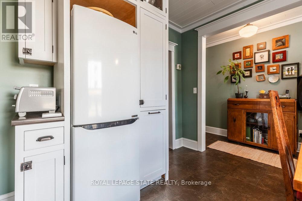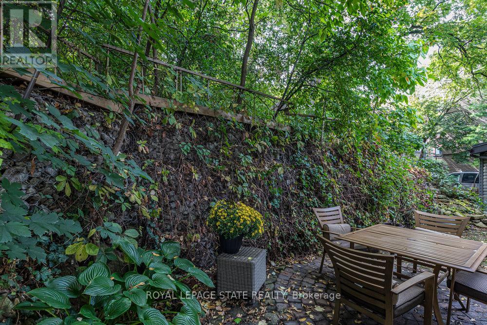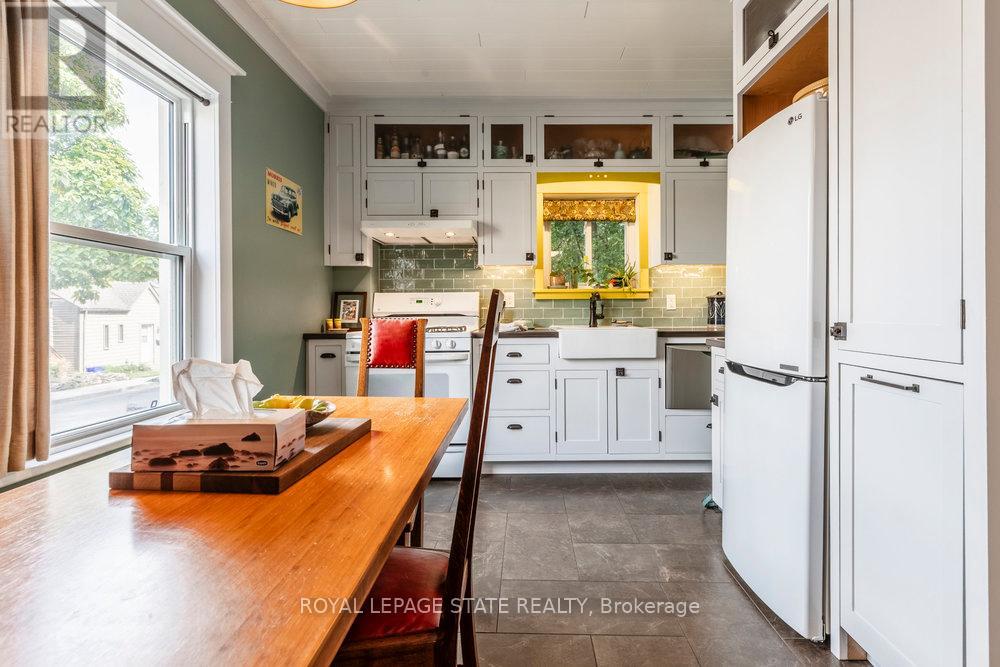 Outstanding transformation inside & out with no stone left unturned! Tucked away at the base of the escarpment, this thoughtfully renovated 2-storey, 2-bedroom, 1-bath home is full of character, creativity, and modern convenience. From its clever storage solutions to its private secret garden patio, every detail has been carefully designed to make the most of both space and style. Step inside to discover an updated kitchen thats as functional as it is beautiful, featuring built-in banquette seating with custom cushions (and hidden storage!), a pull-out butcher block for added prep space, subway tile backsplash, and generous cabinetry. The living room offers a walkout to a stunning interlock and flagstone patio a private oasis perfect for morning coffee or evening gatherings w/ built-ins & glass display shelves to add ambiance and charm. Upstairs, the primary bedroom delights with a hidden secret closet concealed behind a bookshelf, while the elegant 4-piece bathroom features a classic clawfoot tub and pedestal sink for a touch of vintage luxury. Additional highlights include two-car private parking a rare and valuable find and a unique sense of privacy and tranquility. This one-of-a-kind home offers the perfect blend of historic charm, smart updates, and whimsical details. This Corktown gem is steps to St. Jos, the GO & amenities. A must-see for those seeking something truly special. (id:51158)