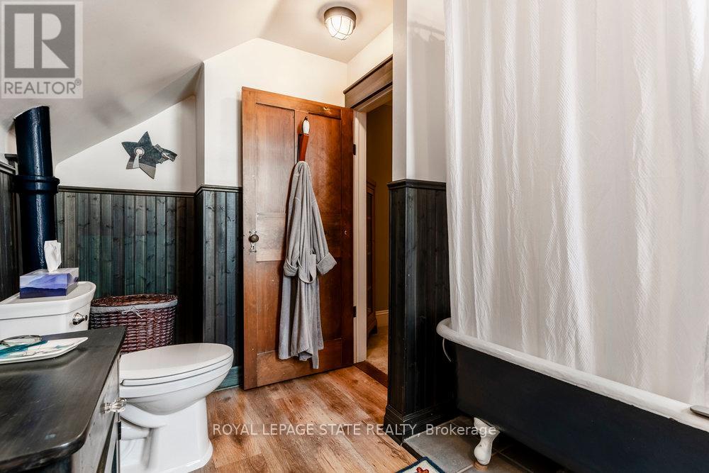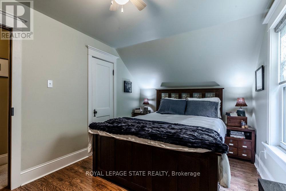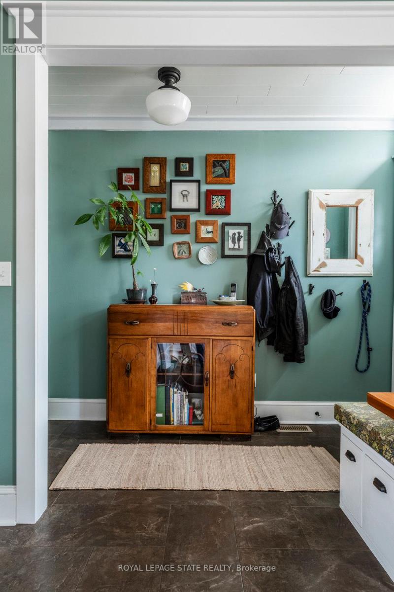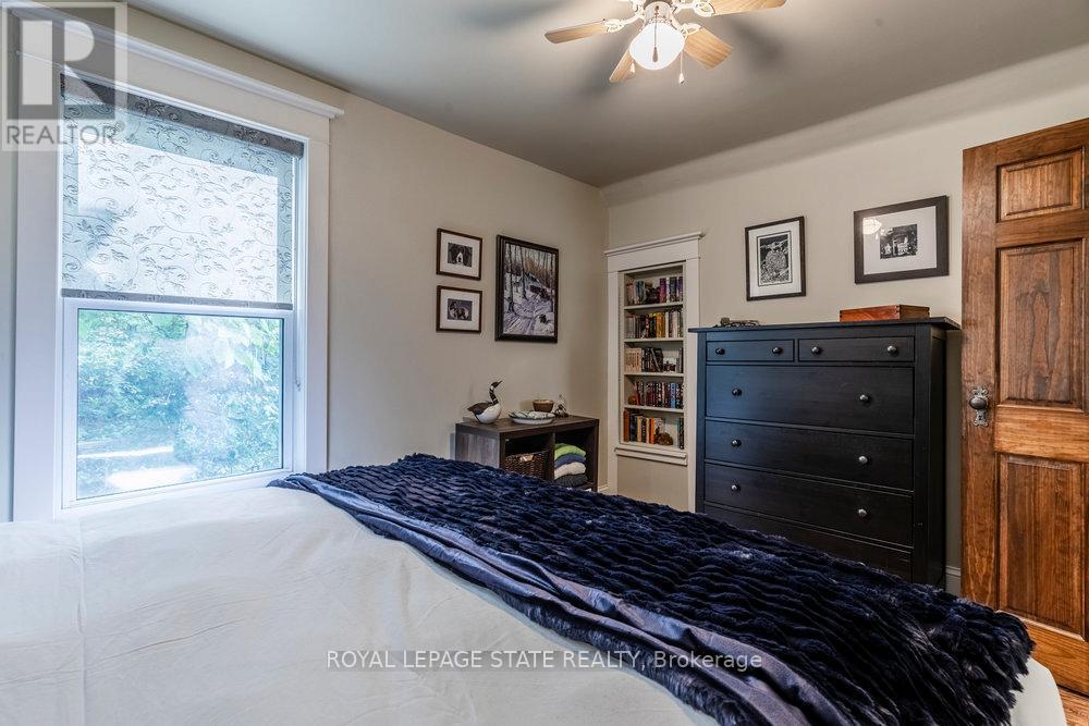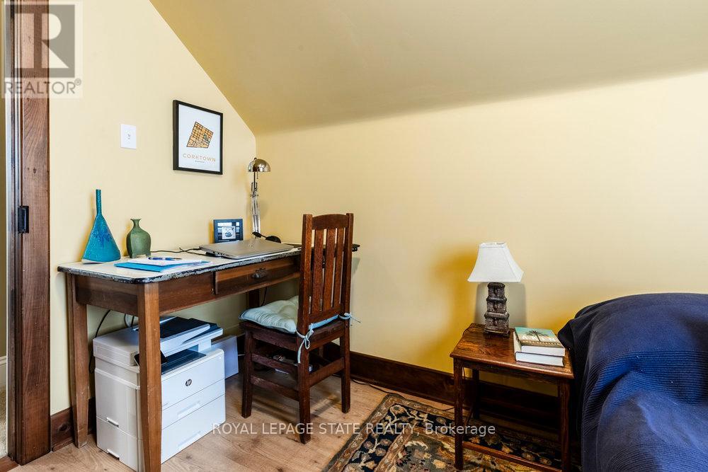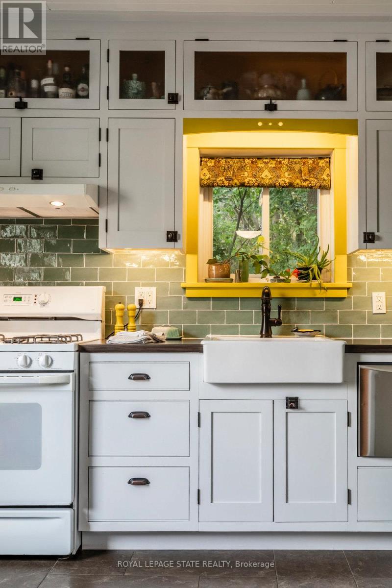 Outstanding transformation inside & out with no stone left unturned! Tucked away at the base of the escarpment, this thoughtfully renovated 2-storey, 2-bedroom, 1-bath home is full of character, creativity, and modern convenience. From its clever storage solutions to its private secret garden patio, every detail has been carefully designed to make the most of both space and style. Step inside to discover an updated kitchen thats as functional as it is beautiful, featuring built-in banquette seating with custom cushions (and hidden storage!), a pull-out butcher block for added prep space, subway tile backsplash, and generous cabinetry. The living room offers a walkout to a stunning interlock and flagstone patio a private oasis perfect for morning coffee or evening gatherings w/ built-ins & glass display shelves to add ambiance and charm. Upstairs, the primary bedroom delights with a hidden secret closet concealed behind a bookshelf, while the elegant 4-piece bathroom features a classic clawfoot tub and pedestal sink for a touch of vintage luxury. Additional highlights include two-car private parking a rare and valuable find and a unique sense of privacy and tranquility. This one-of-a-kind home offers the perfect blend of historic charm, smart updates, and whimsical details. This Corktown gem is steps to St. Jos, the GO & amenities. A must-see for those seeking something truly special. (id:51158)