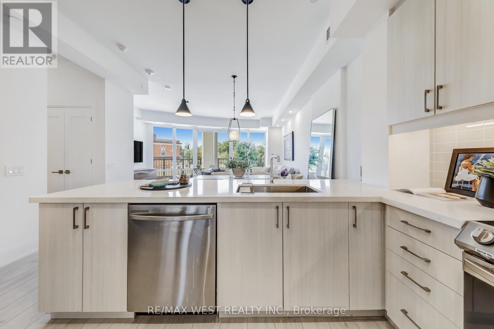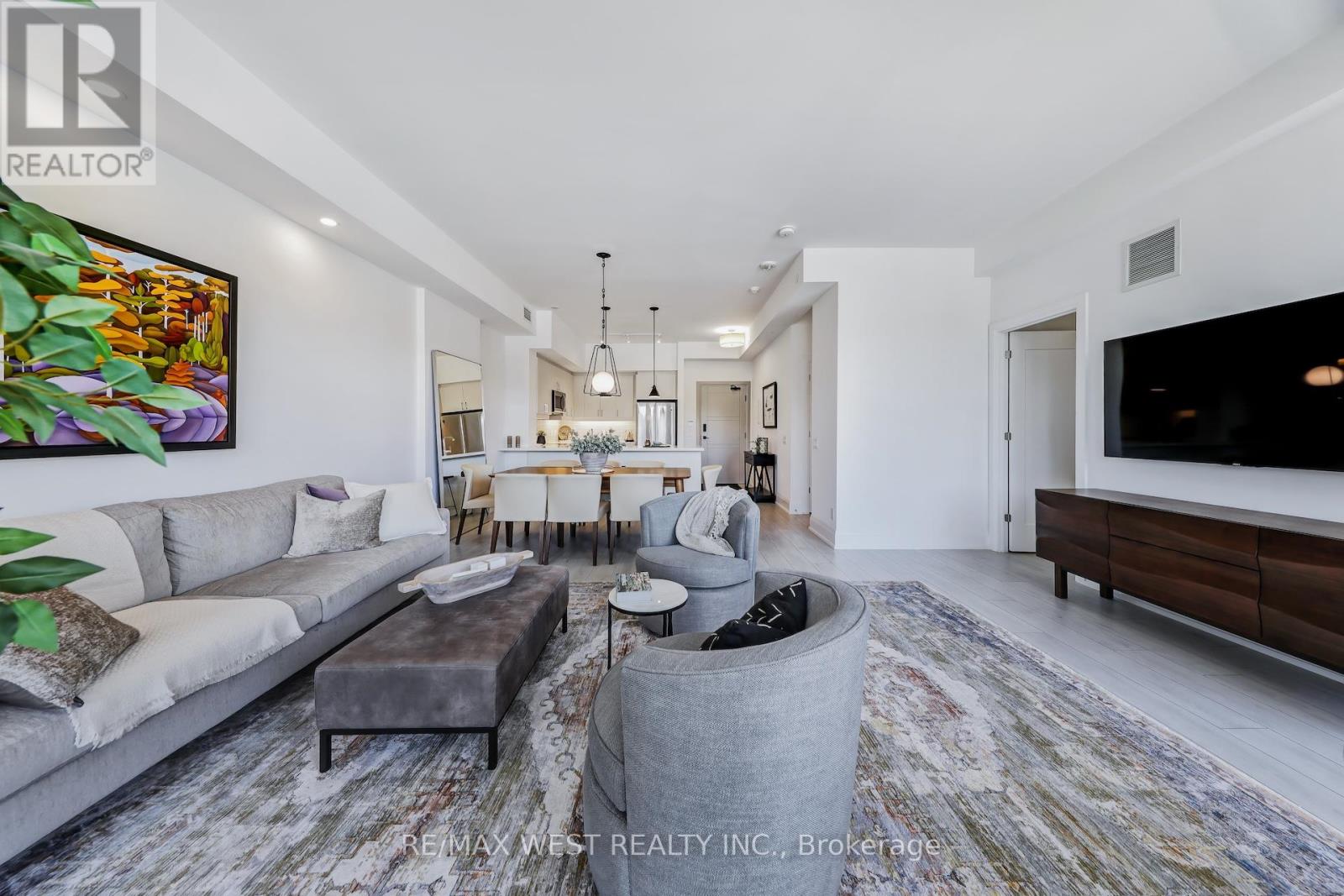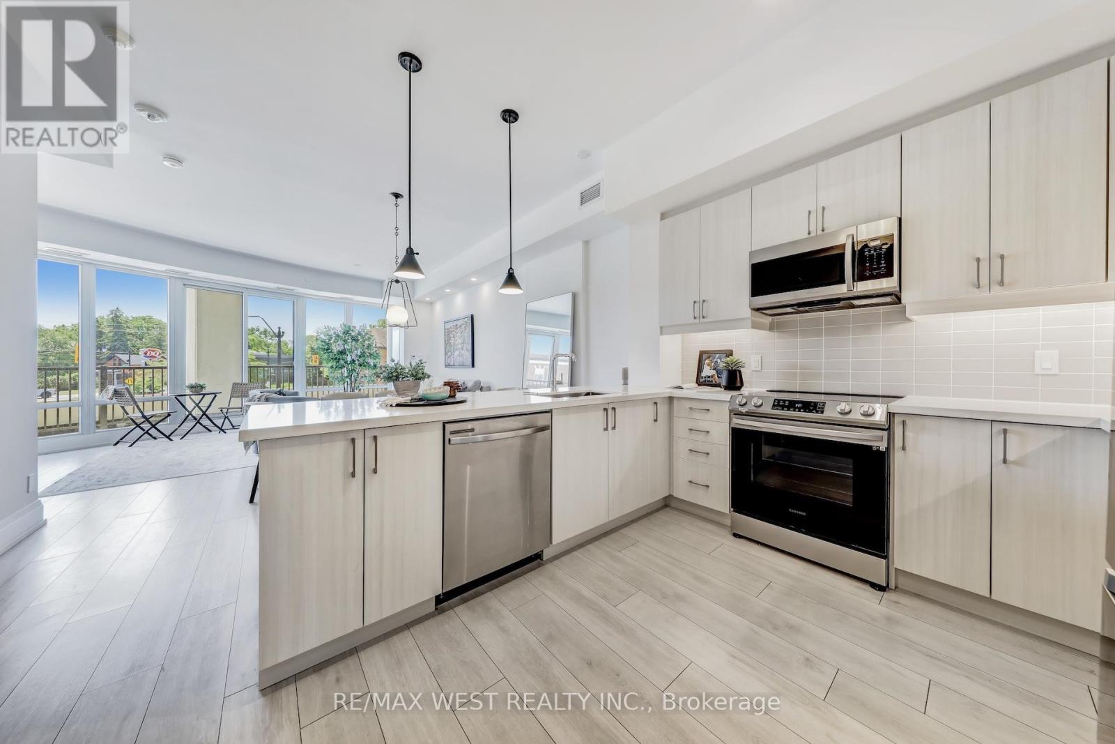 Welcome to one of the newest luxurious condo buildings in Collingwood, the Monaco. Perfectly situated in downtown Collingwood, enjoy being steps away from boutique fashion stores, an array of diverse dining options, farmers markets, theatres, extensive trails, the waterfront and marina. This 3-bedroom, 2-bathroom condo spans 1,441 square feet, seamlessly blending open-concept living with an abundance of natural light. The interior boasts premium finishes, including upgraded flooring, tall doors, and soaring ceilings, enhancing the luxurious atmosphere. The main living area, along with the expansive Primary Bedroom, features floor-to-ceiling windows that bathe the space in sunlight, while 2 walk-out balconies creates a seamless connection between indoor and outdoor living. The generously sized Primary Bedroom includes a double door walk-in closet and a spa-inspired 4 piece ensuite washroom, complete with double sinks and an over-sized glass shower for a truly indulgent experience.The chef-inspired kitchen serves as a centerpiece, featuring sleek Quartz counter-tops, high-end cabinetry, stainless steel appliances and a spacious peninsula breakfast bar for casual dining. Take in the stunning Escarpment views from the beautifully landscaped rooftop terrace, offering ample seating and BBQ areas. Indoors, enjoy the well-appointed bar area and a large, fully-equipped professional gym, both providing additional spaces to unwind while enjoying panoramic vistas.This residence also comes with two underground parking spaces, an exclusive storage locker, and a double bicycle rack, adding convenience and comfort to your upscale lifestyle. (id:51158)