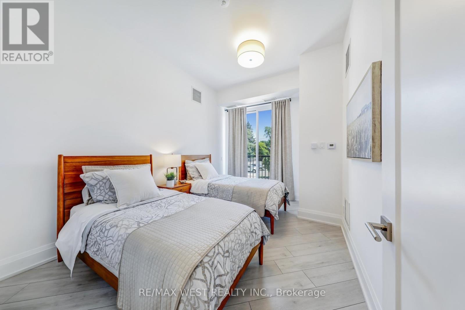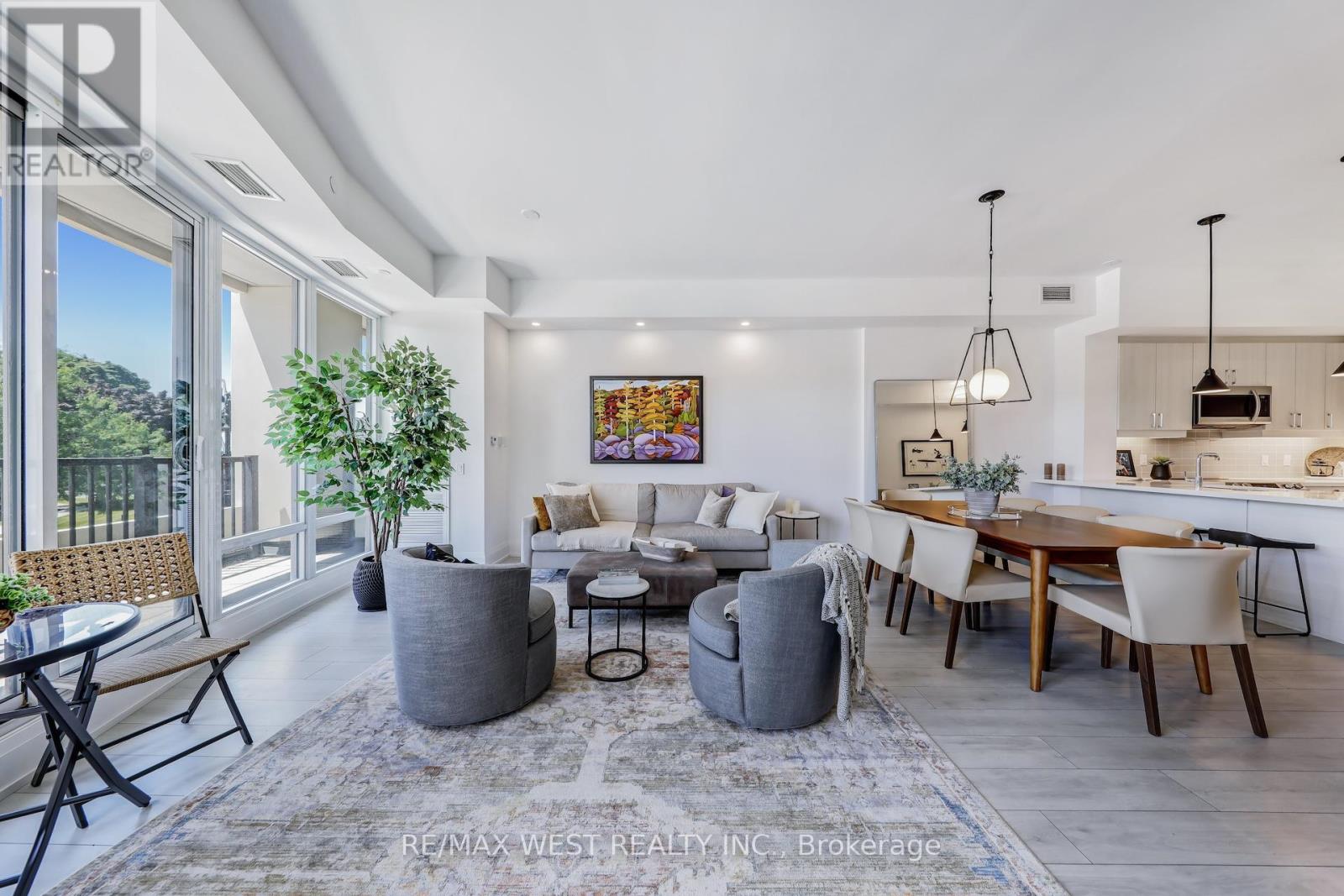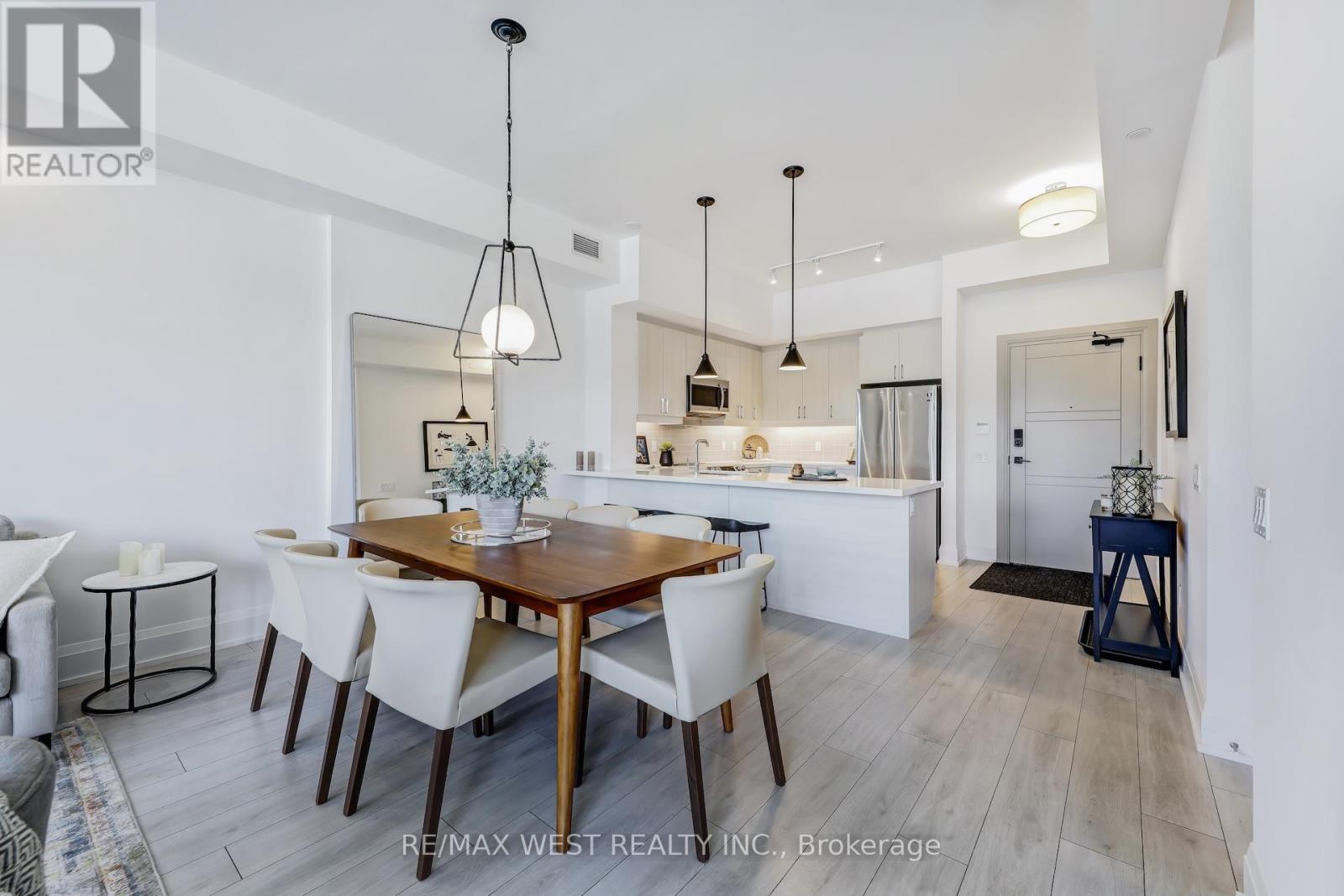 Welcome to one of the newest luxurious condo buildings in Collingwood, the Monaco. Perfectly situated in downtown Collingwood, enjoy being steps away from boutique fashion stores, an array of diverse dining options, farmers markets, theatres, extensive trails, the waterfront and marina. This 3-bedroom, 2-bathroom condo spans 1,441 square feet, seamlessly blending open-concept living with an abundance of natural light. The interior boasts premium finishes, including upgraded flooring, tall doors, and soaring ceilings, enhancing the luxurious atmosphere. The main living area, along with the expansive Primary Bedroom, features floor-to-ceiling windows that bathe the space in sunlight, while 2 walk-out balconies creates a seamless connection between indoor and outdoor living. The generously sized Primary Bedroom includes a double door walk-in closet and a spa-inspired 4 piece ensuite washroom, complete with double sinks and an over-sized glass shower for a truly indulgent experience.The chef-inspired kitchen serves as a centerpiece, featuring sleek Quartz counter-tops, high-end cabinetry, stainless steel appliances and a spacious peninsula breakfast bar for casual dining. Take in the stunning Escarpment views from the beautifully landscaped rooftop terrace, offering ample seating and BBQ areas. Indoors, enjoy the well-appointed bar area and a large, fully-equipped professional gym, both providing additional spaces to unwind while enjoying panoramic vistas.This residence also comes with two underground parking spaces, an exclusive storage locker, and a double bicycle rack, adding convenience and comfort to your upscale lifestyle. (id:51158)