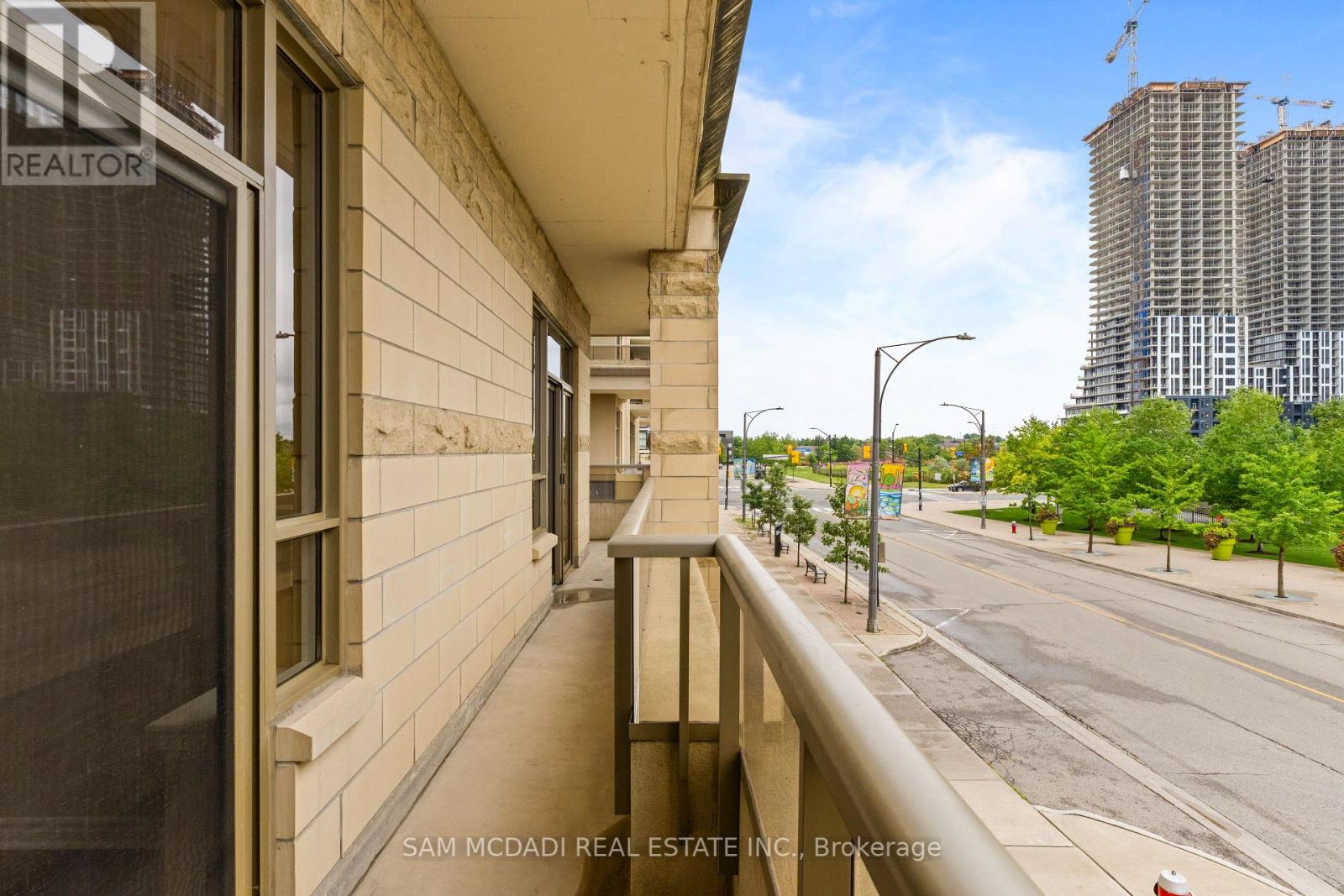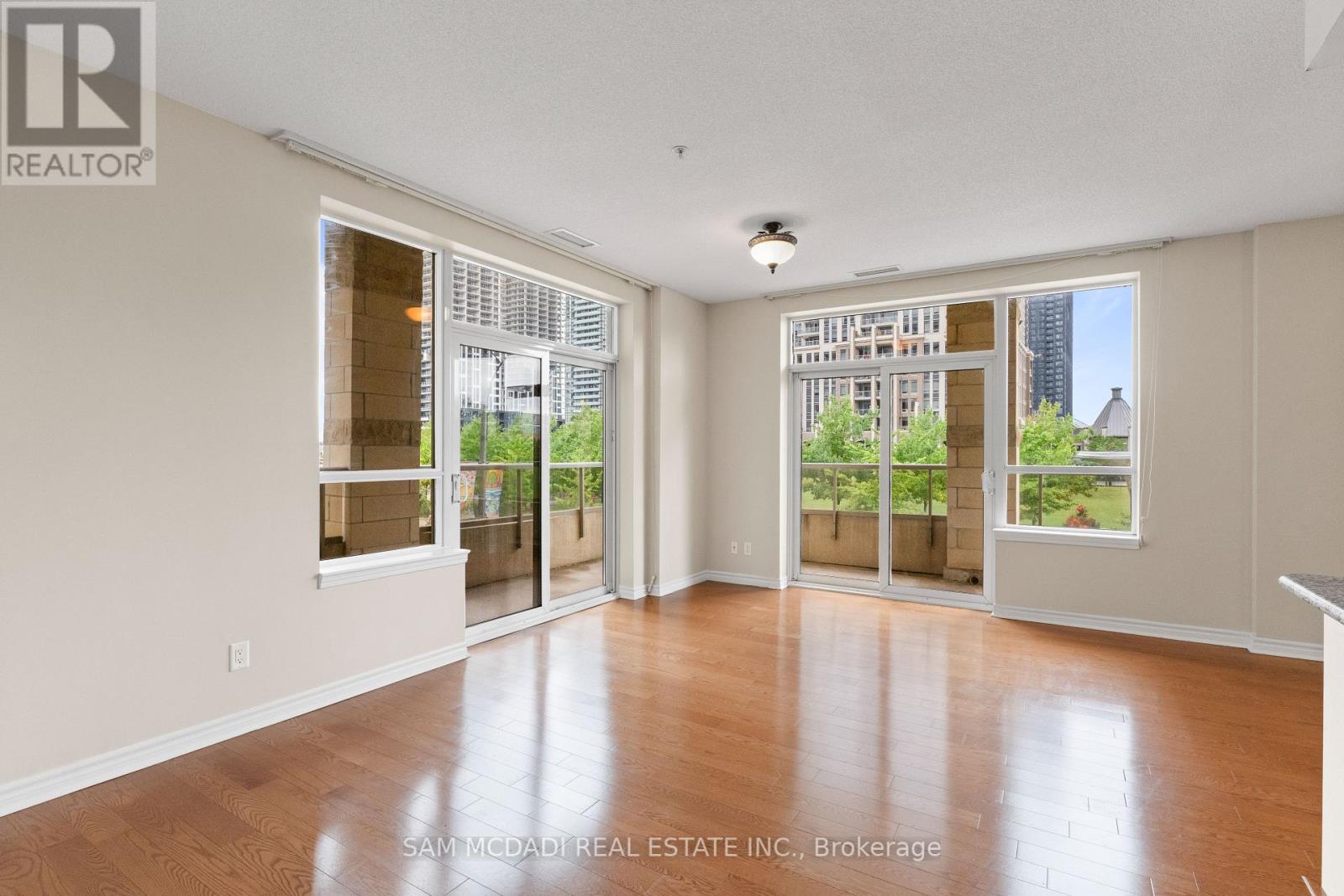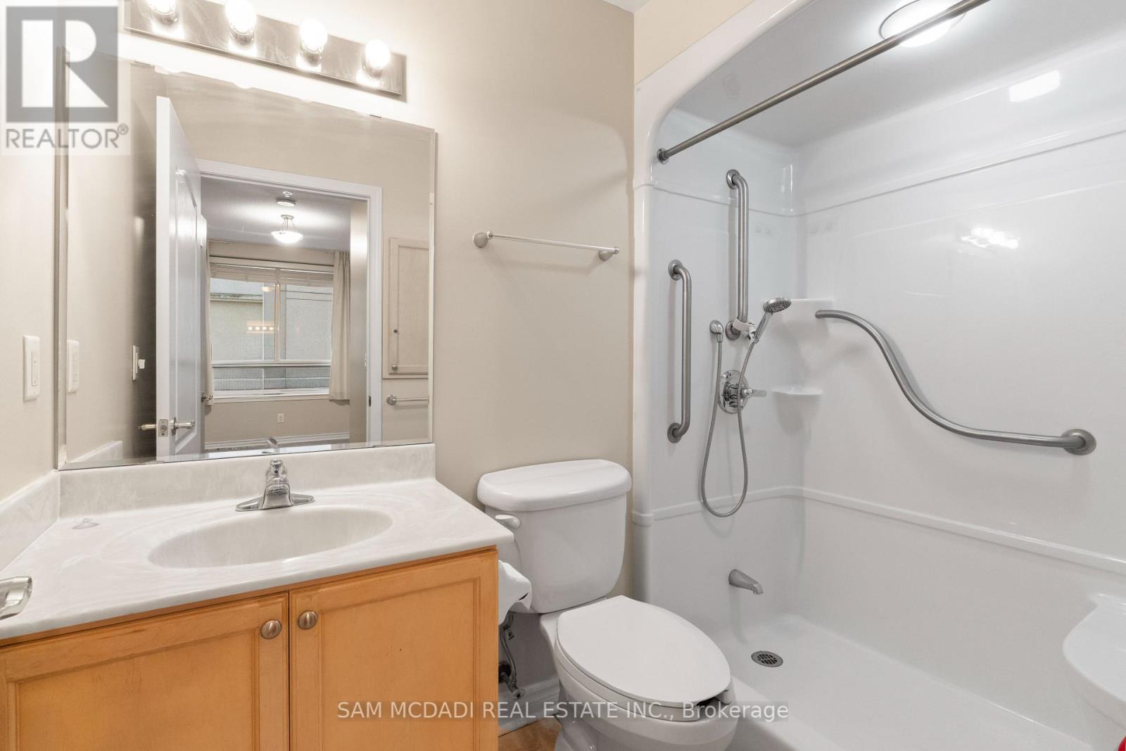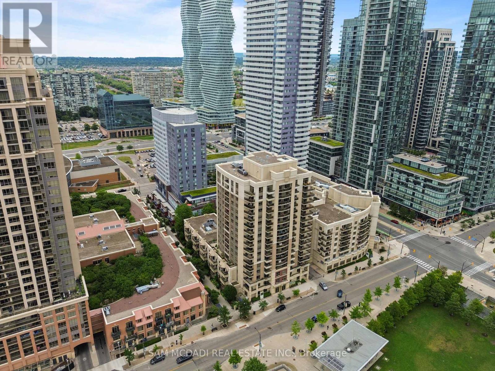 $878.30 MonthlyWelcome To This Bright And Spacious 2 Bedroom, 2 Bathroom Suite In Amica Building (no age restrictions for buying), Offering 1044 sq.Ft. Of Stylish Living In The Heart Of Mississauga City Centre! This Desirable Corner Unit Features An Open Concept Layout With 9ft. Ceilings, Hardwood Floors Throughout, And Has Been Freshly Painted For A Move-In Ready Feel. Enjoy The Wrap-Around Balcony With Expansive Views And Abundant Natural Light Flooding Every Room. The Functional Kitchen Flows Seamlessly Into The Living And Dining Area- Perfect For Entertaining. Both Bedrooms Are Generously Sized, With Primary Bedroom That Offers Walk-In Closet And 3Pc Ensuite , Walk In Shower With Seat And Accessible Bars. Located In Prime Spot, You're Steps From Sq.One, Sheridan College, Living Arts Centre, Celebration Square, Restaurants, Transit, And Major Amenities. Easy Access To Future LRT, Highway 403, 401, QEW, And GO Train. A perfect combination Of Comfort, Style And Convenience! (id:51158)