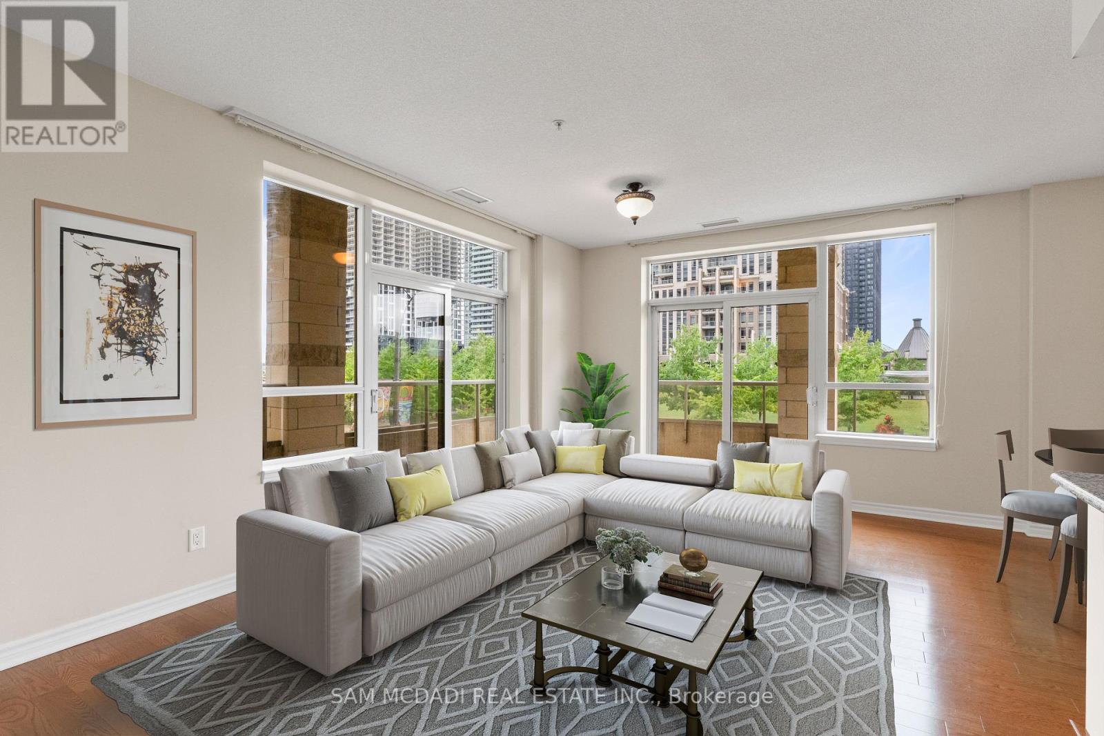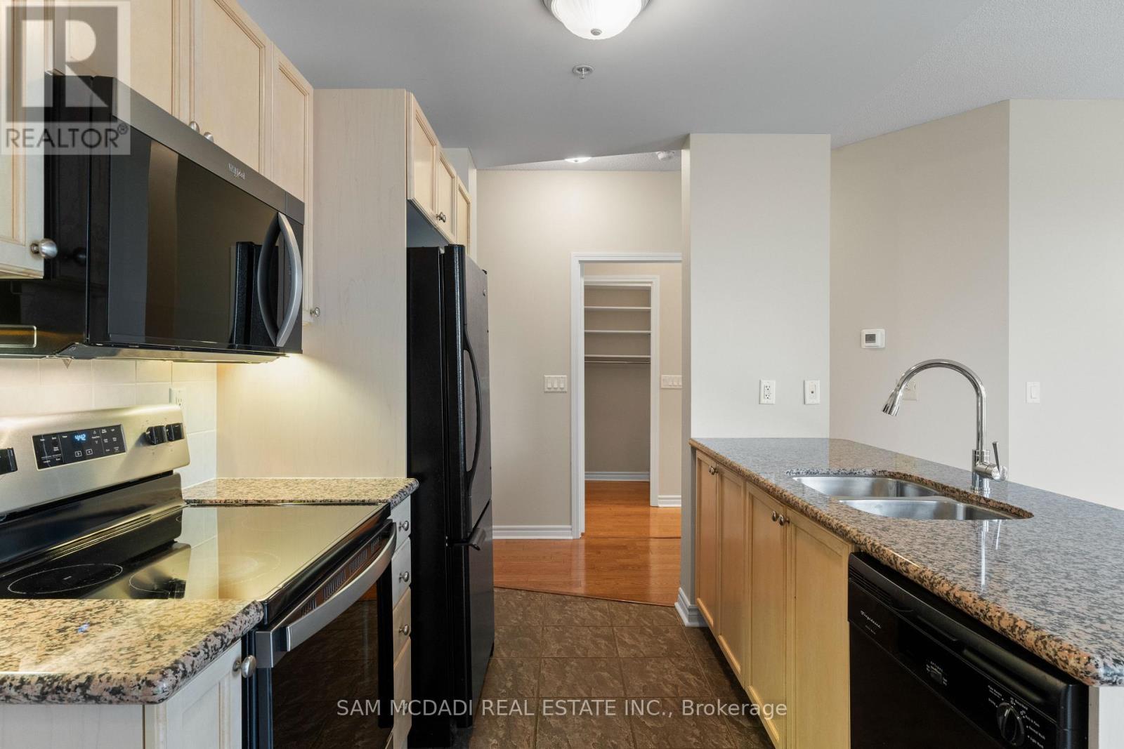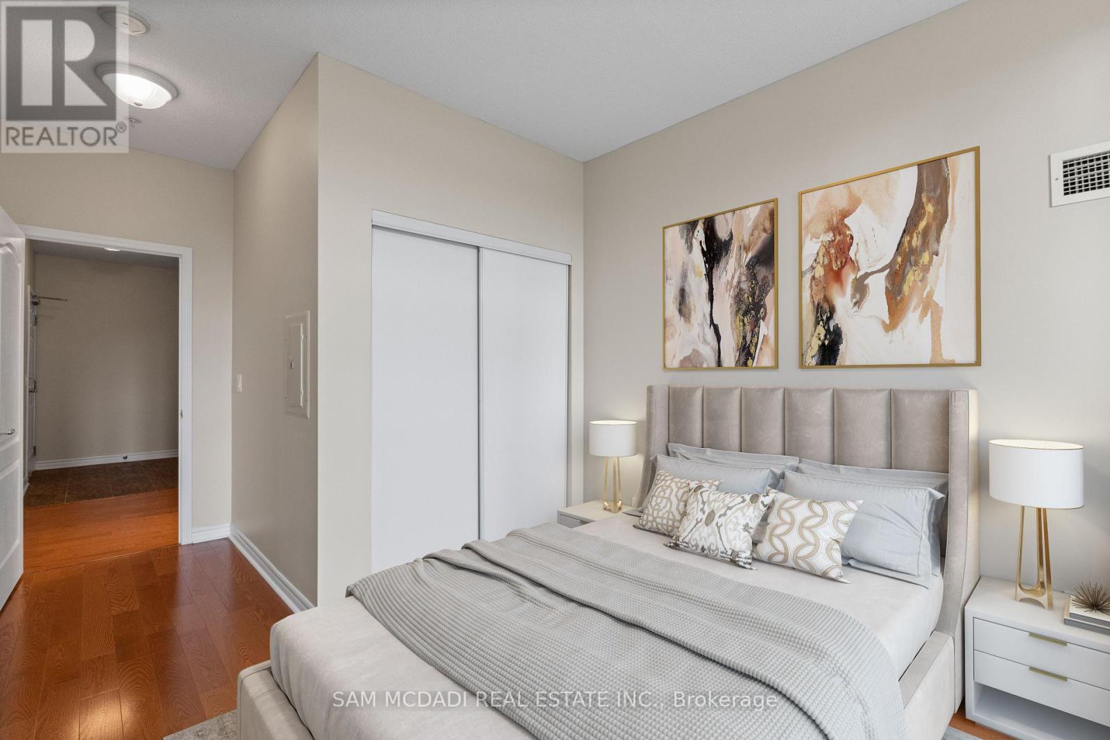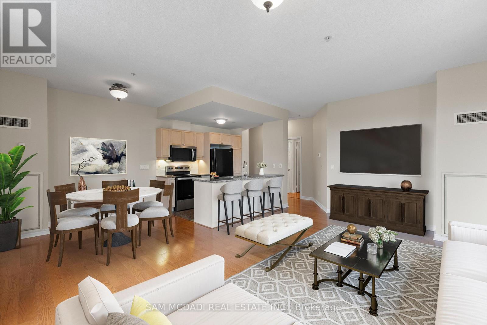 $878.30 MonthlyWelcome To This Bright And Spacious 2 Bedroom, 2 Bathroom Suite In Amica Building (no age restrictions for buying), Offering 1044 sq.Ft. Of Stylish Living In The Heart Of Mississauga City Centre! This Desirable Corner Unit Features An Open Concept Layout With 9ft. Ceilings, Hardwood Floors Throughout, And Has Been Freshly Painted For A Move-In Ready Feel. Enjoy The Wrap-Around Balcony With Expansive Views And Abundant Natural Light Flooding Every Room. The Functional Kitchen Flows Seamlessly Into The Living And Dining Area- Perfect For Entertaining. Both Bedrooms Are Generously Sized, With Primary Bedroom That Offers Walk-In Closet And 3Pc Ensuite , Walk In Shower With Seat And Accessible Bars. Located In Prime Spot, You're Steps From Sq.One, Sheridan College, Living Arts Centre, Celebration Square, Restaurants, Transit, And Major Amenities. Easy Access To Future LRT, Highway 403, 401, QEW, And GO Train. A perfect combination Of Comfort, Style And Convenience! (id:51158)