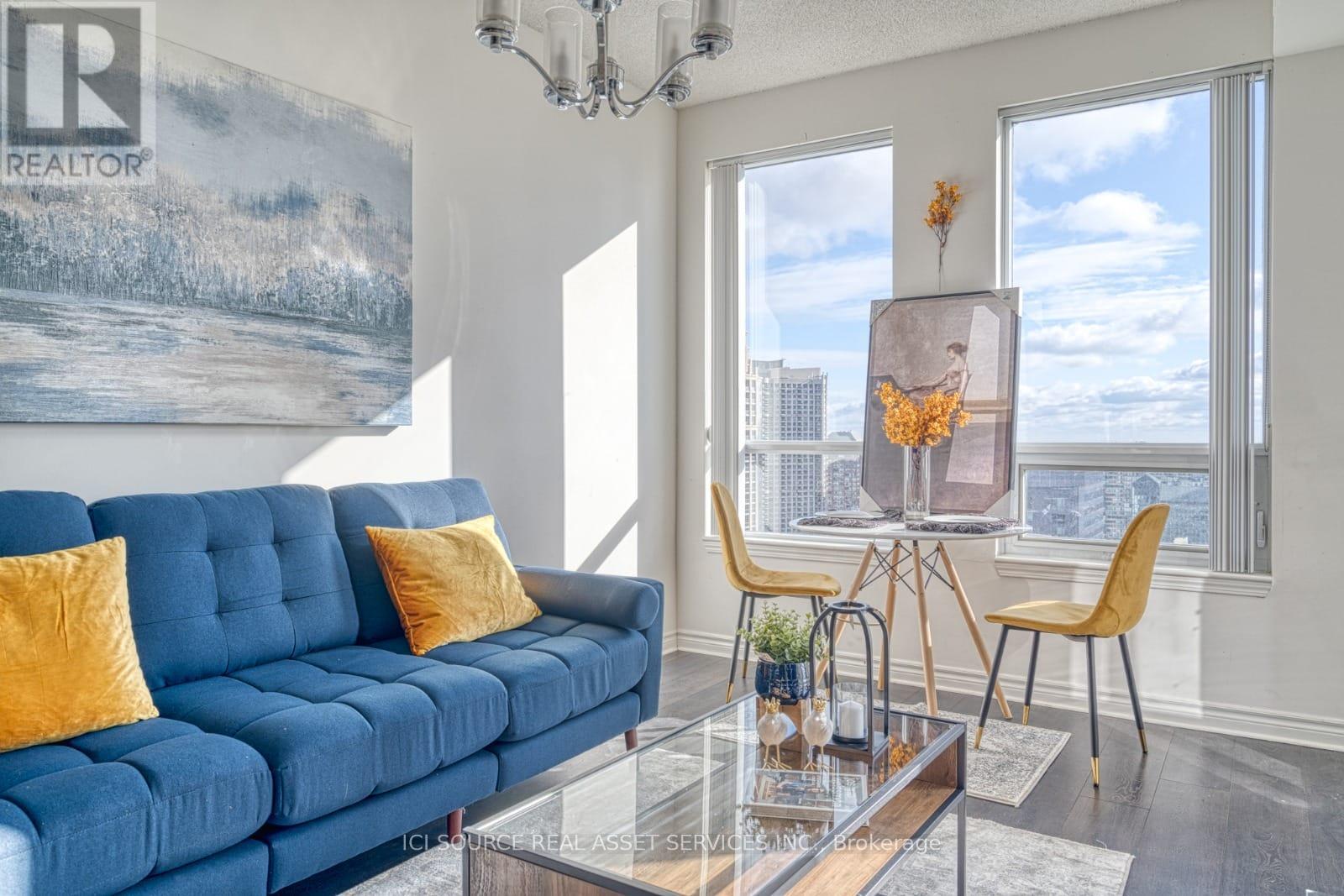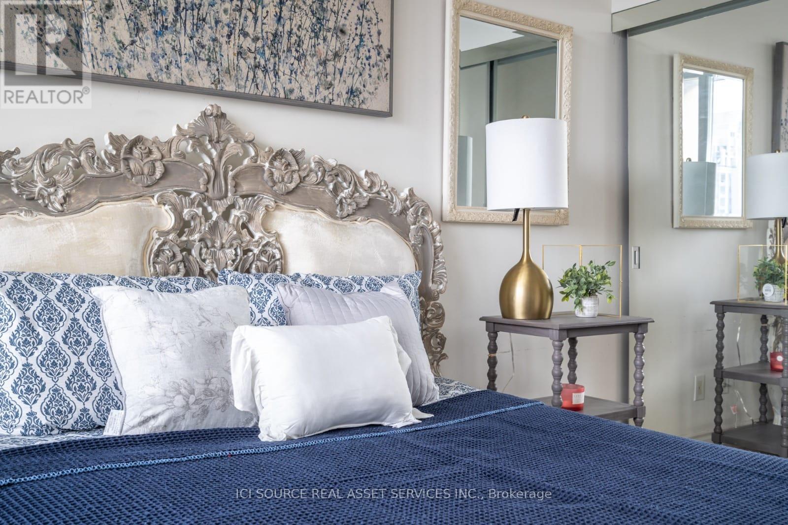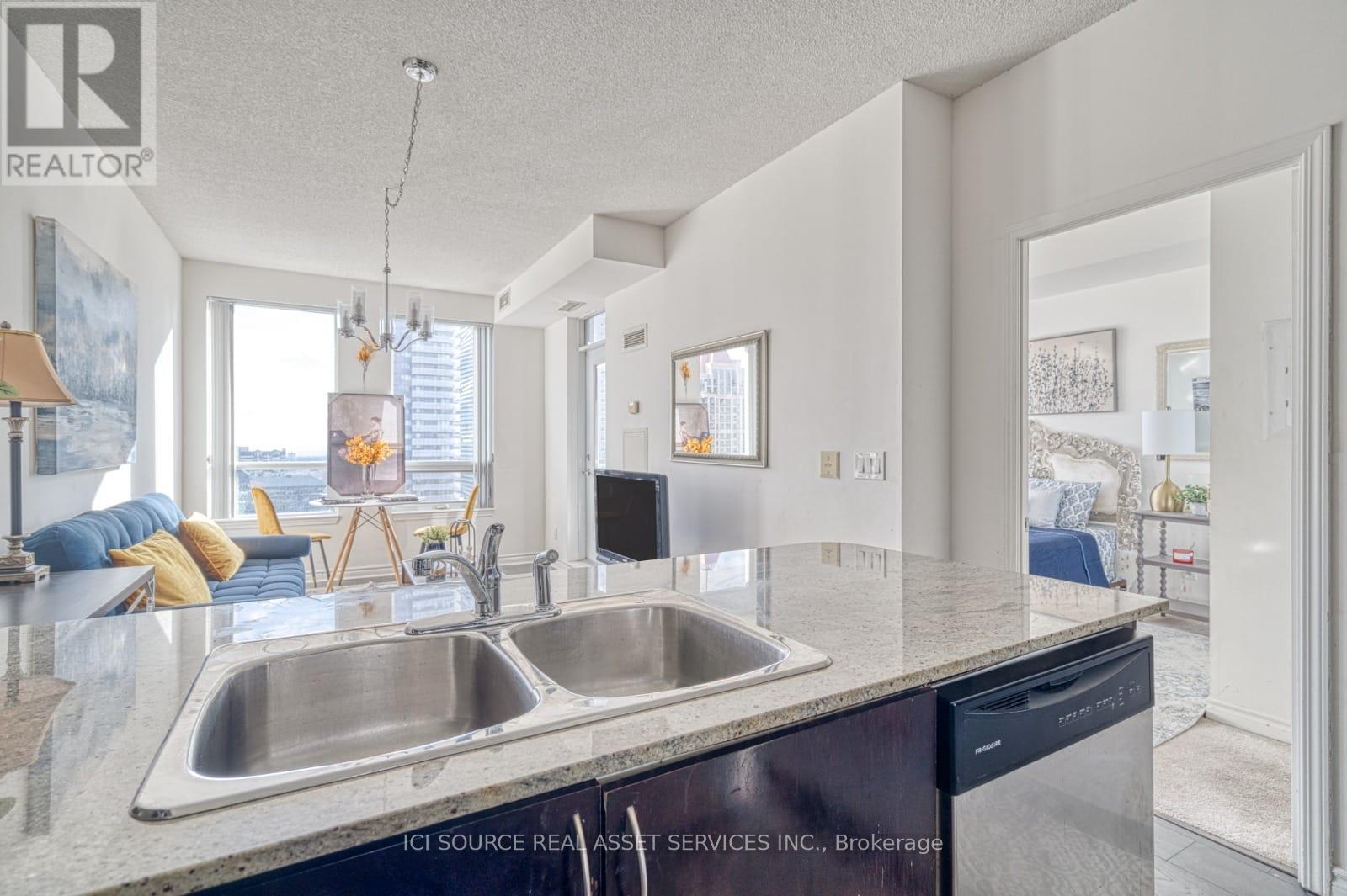 A bright and Furnished 1 bedroom + den condo in the heart of downtown Mississauga. Situated on a high floor with stunning panoramic views, this beautifully maintained unit is fully furnished and move-in ready. Property Features:* 1 spacious bedroom + functional den (can be used as 2nd sleeping area or office)* 2 full bathrooms for added comfort* Open-concept kitchen with stainless steel appliances & granite countertop* Modern living & dining space with floor-to-ceiling windows* Private balcony with unobstructed city views* In-suite laundry* Includes 1 underground parking spot. Extras:* Fully furnished (bedding, kitchenware, décor, TV & more)* Bright and elegant interior with tasteful finishes* Well-equipped kitchen and stylish furnishings. Location Highlights:* Steps to Square One Shopping Centre, Celebration Square, Sheridan College* Minutes from public transit, GO Station, Highway 403 & 401* Surrounded by dining, entertainment, and parks* Utilities: Tenants pay* First & last month required. Ready for immediate occupancy. Just bring your suitcase! *For Additional Property Details Click The Brochure Icon Below* (id:51158)