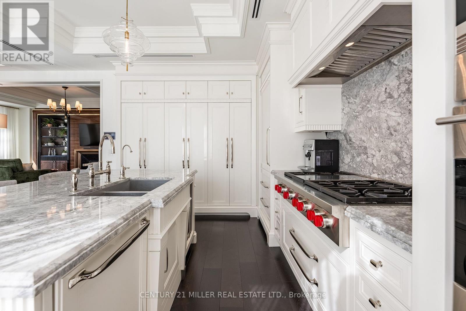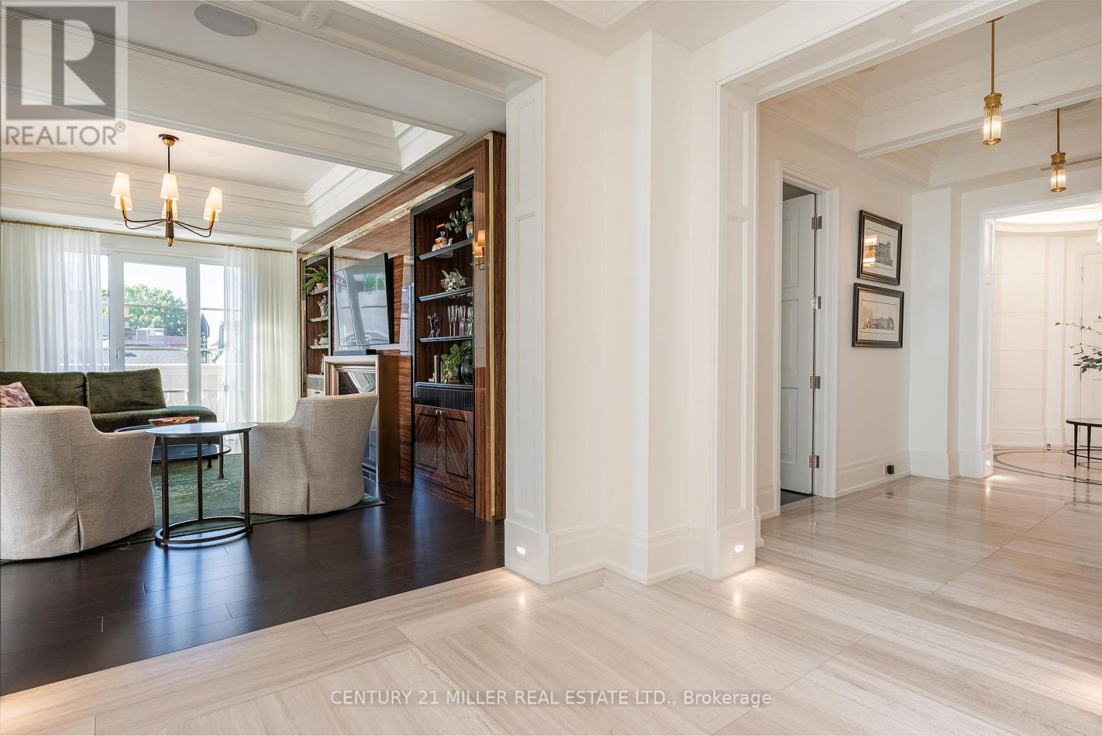 Experience refined living at The Randall Residences, right in the heart of Downtown Oakville. Inspired by timeless Parisian style and built by award-winning Rosehaven Homes, this exceptional corner suite offers 2,758 square feet of one level living with 10-foot ceilings throughout. Step inside the grand rotunda foyer with marble floors and classic detailing, setting the tone for the rest of the suite. The Downsview kitchen is a true showpiece - with high-end appliances, marble counters, and intricate crown moulding - perfect for both cooking and entertaining. The kitchen opens to a spacious great room with a gas fireplace and adjoining dining area, creating a warm and inviting space to gather with friends and family.The principal bedroom is a true retreat, featuring two dressing rooms and dual ensuite baths - each with heated marble floors - offering a spa-like escape. The second bedroom includes its own ensuite, a wall-to-wall closet, and a charming Juliette balcony. Enjoy the ease of modern living with a Crestron home automation system, a sun-filled private terrace, three parking spaces, and two storage lockers. Steps from Lake Ontario, fine dining, and boutique shopping, this residence combines sophistication, comfort, and convenience in one of Oakvilles most coveted addresses. (id:51158)