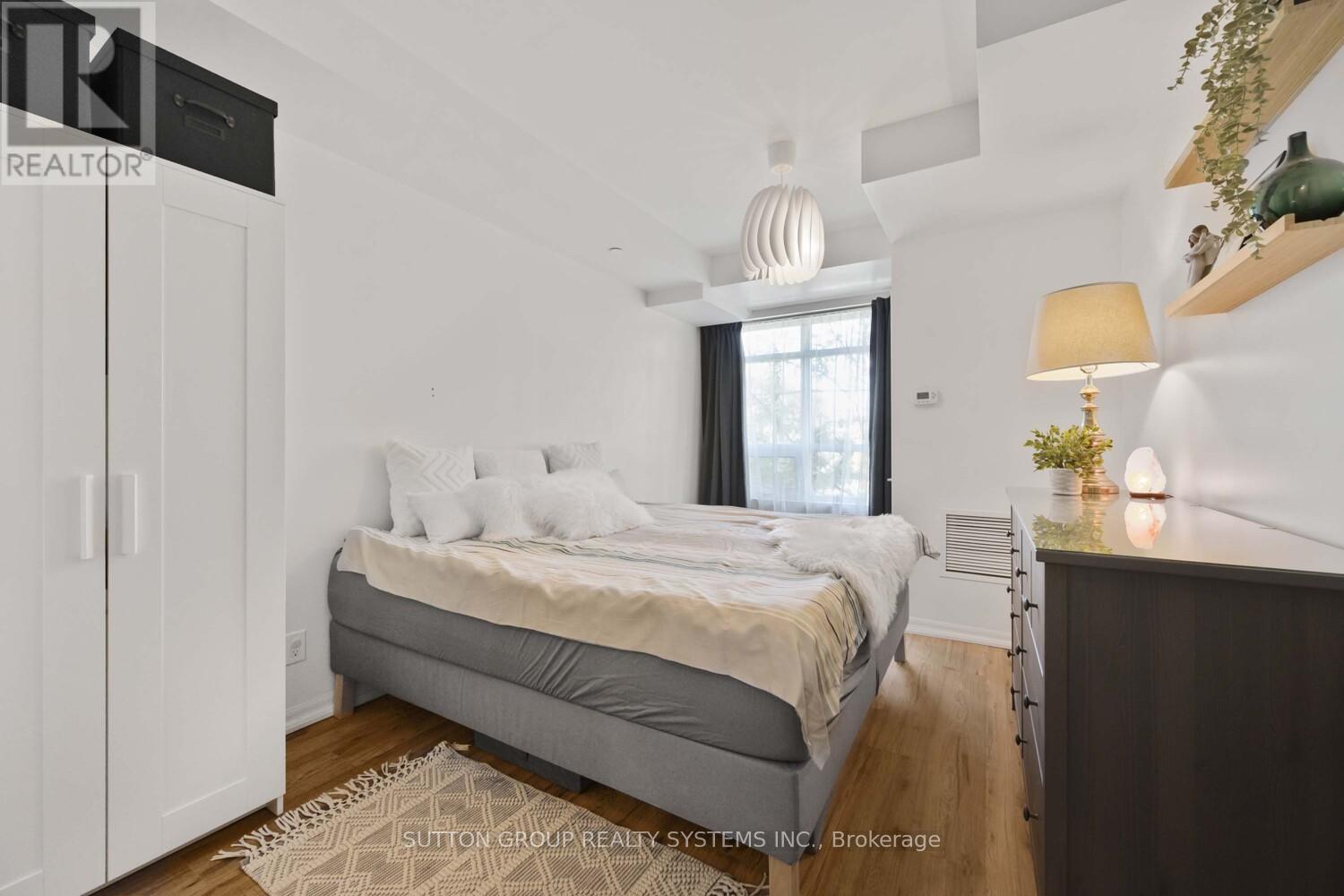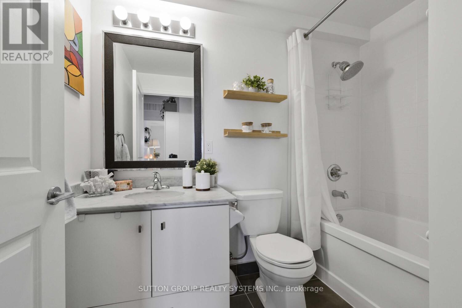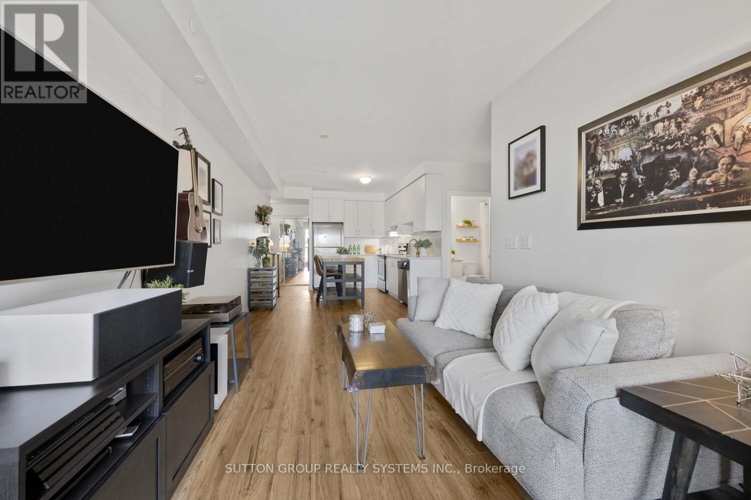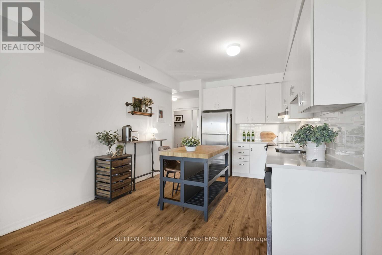 $702.45 MonthlyBoutique Watermark Residence! Bright and spacious 1-bedroom unit offering nearly 700 sq. ft. of functional living space. Features include 9' ceilings, laminate floors throughout in '2024, floor-to-ceiling windows, and open-concept living with a walk-out to a private balcony. The modern white kitchen is complete with quartz countertops and stainless steel appliances. The generous primary bedroom showcases a custom walk-in closet and a luxurious spa-inspired bathroom.. Originally designed as a 1+Den and converted by the builder into a larger 1-bedroom with a walk-in closet (can easily be reverted). Exceptional location just steps to the Lake, major transit hub (GO, TTC, MiWay), and only minutes to highways, the airport, and premier shopping. Amenities include a fitness room, rooftop deck with BBQ area, and party/meeting room. Conveniently attached to a street-front TD Bank. (id:51158)