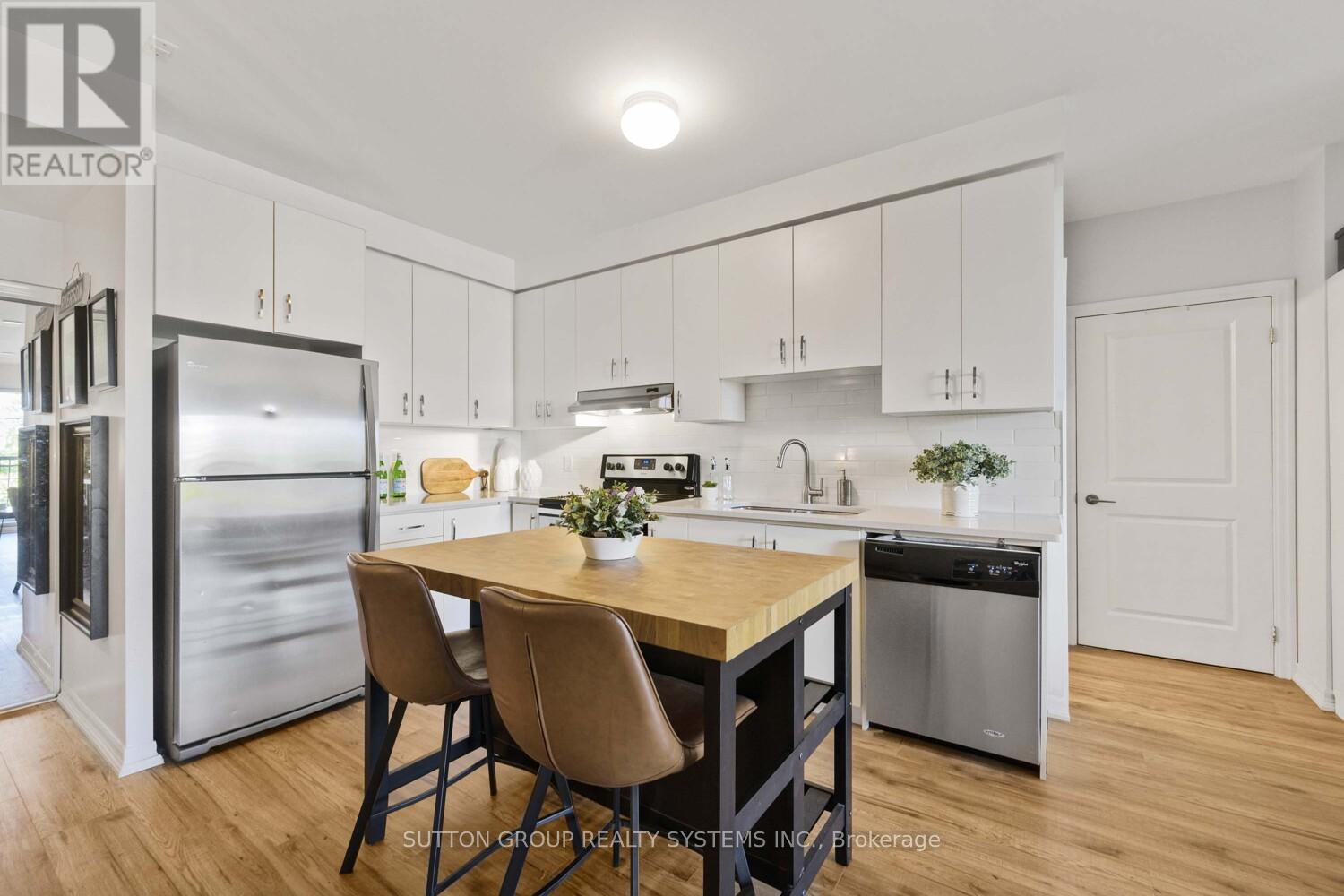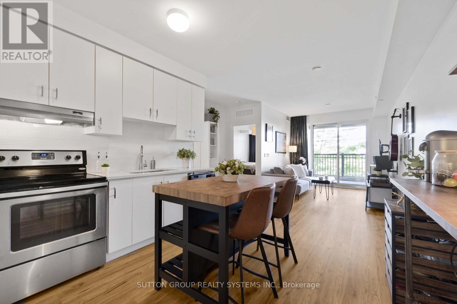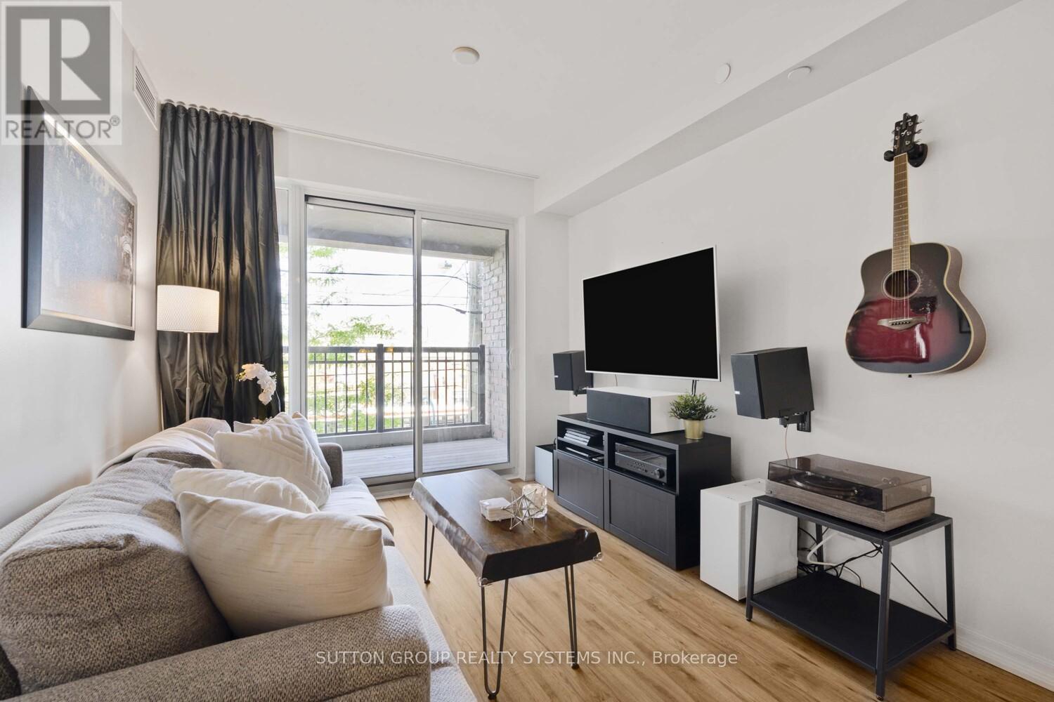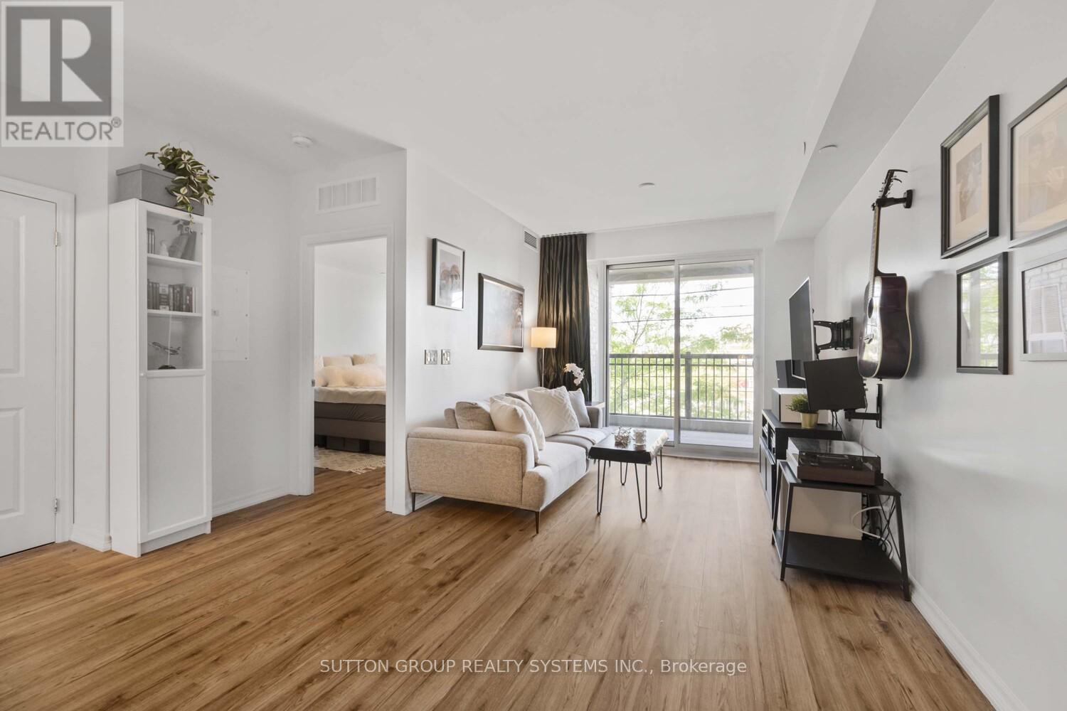 $702.45 MonthlyBoutique Watermark Residence! Bright and spacious 1-bedroom unit offering nearly 700 sq. ft. of functional living space. Features include 9' ceilings, laminate floors throughout in '2024, floor-to-ceiling windows, and open-concept living with a walk-out to a private balcony. The modern white kitchen is complete with quartz countertops and stainless steel appliances. The generous primary bedroom showcases a custom walk-in closet and a luxurious spa-inspired bathroom.. Originally designed as a 1+Den and converted by the builder into a larger 1-bedroom with a walk-in closet (can easily be reverted). Exceptional location just steps to the Lake, major transit hub (GO, TTC, MiWay), and only minutes to highways, the airport, and premier shopping. Amenities include a fitness room, rooftop deck with BBQ area, and party/meeting room. Conveniently attached to a street-front TD Bank. (id:51158)