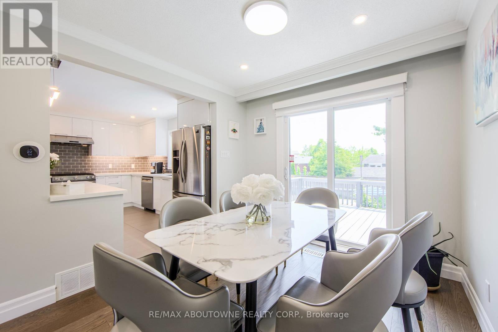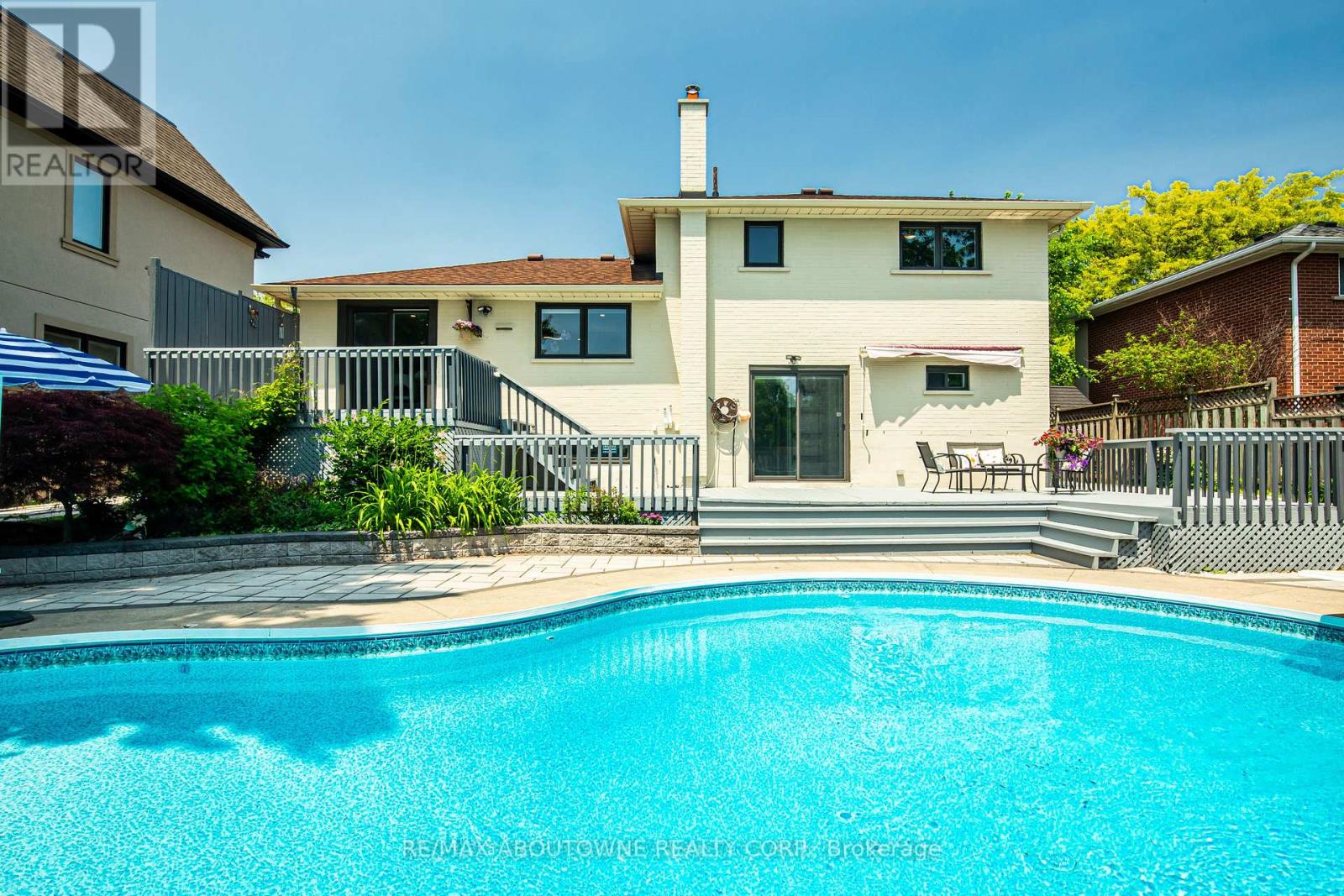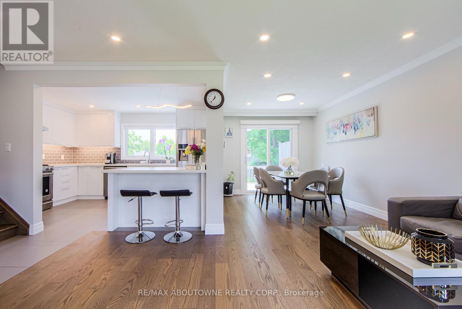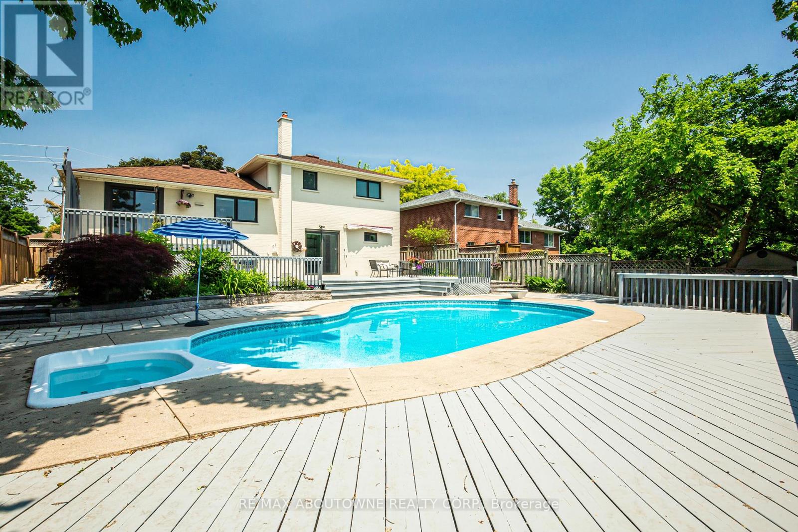 Welcome to this beautifully updated 3+1 bedroom side-split, ideally situated on a spacious 60 x 125 ft lot in a family-friendly neighbourhood. Offering nearly 2,000 sq ft of finished living space, this home blends comfort, style, and functionality. The open-concept main floor is filled with natural light and features hardwood flooring, pot lights, and a renovated white kitchen with a large island perfect for family gatherings and entertaining. The dining area flows seamlessly into the bright living space, with expansive windows offering picturesque views of both the front and back gardens. Upstairs, you'll find three generous bedrooms and a full bathroom, while the lower level provides a 4th bedroom, second full bathroom, large rec room, laundry area and 2nd walk out. Step outside to your private, south-facing backyard complete with a stunning saltwater pool, mature perennial gardens, and ample space for summer entertaining. Extensively updated from top to bottom over the past six years including exterior stucco, roof, furnace just move in and enjoy. Close to Bronte, Coronation Park, walking trails, shopping, excellent schools, highway and GO access close by. Don't miss this exceptional opportunity to make this turnkey property your home just in time for summer! (id:51158)