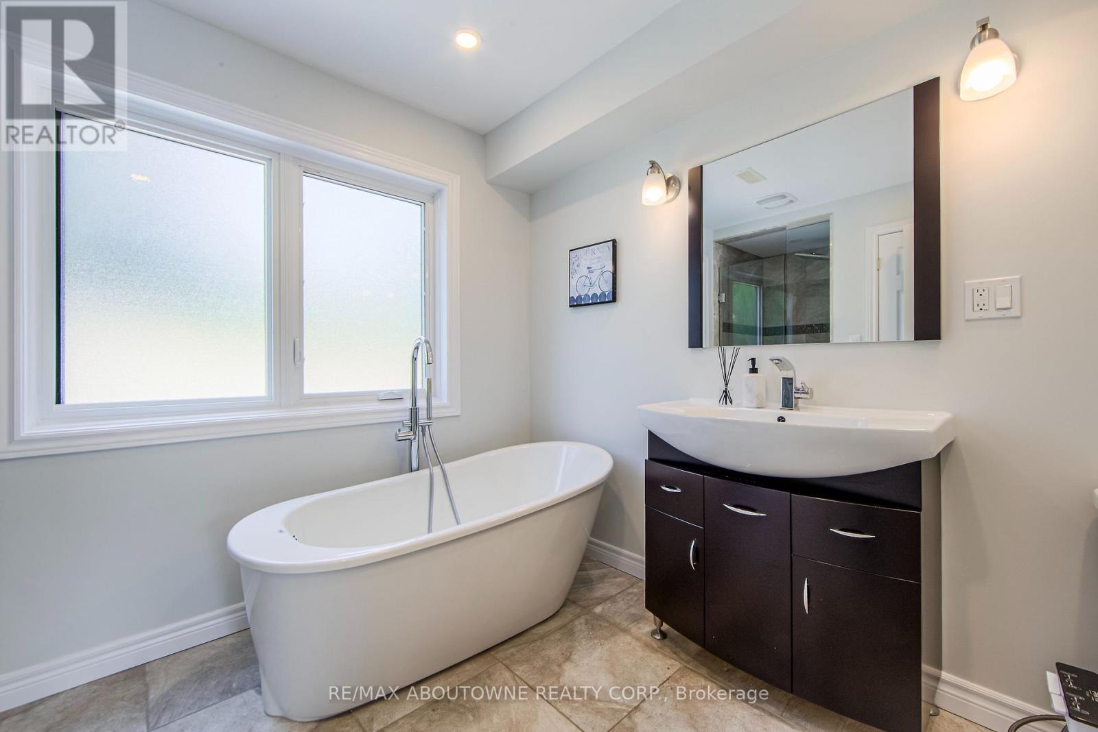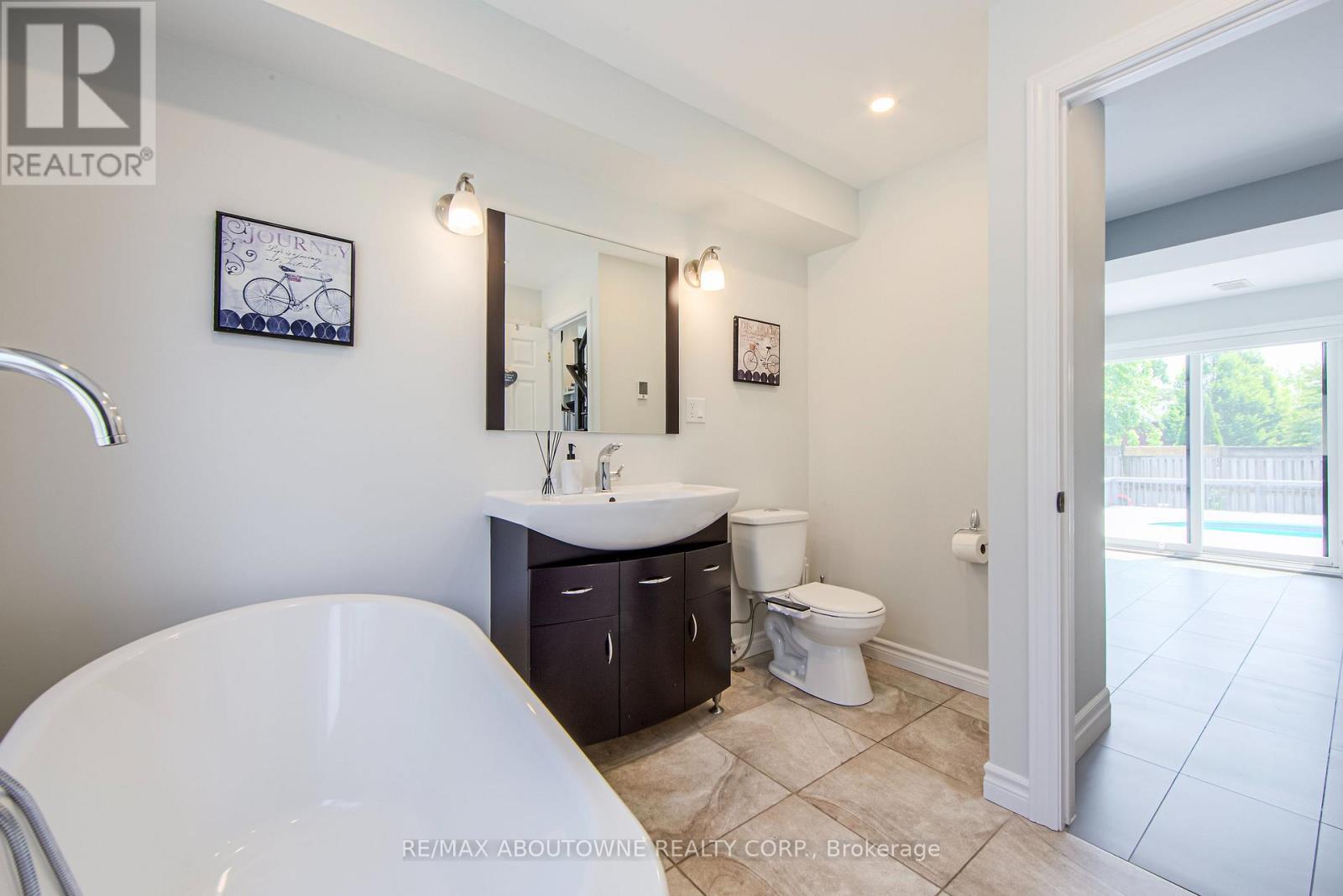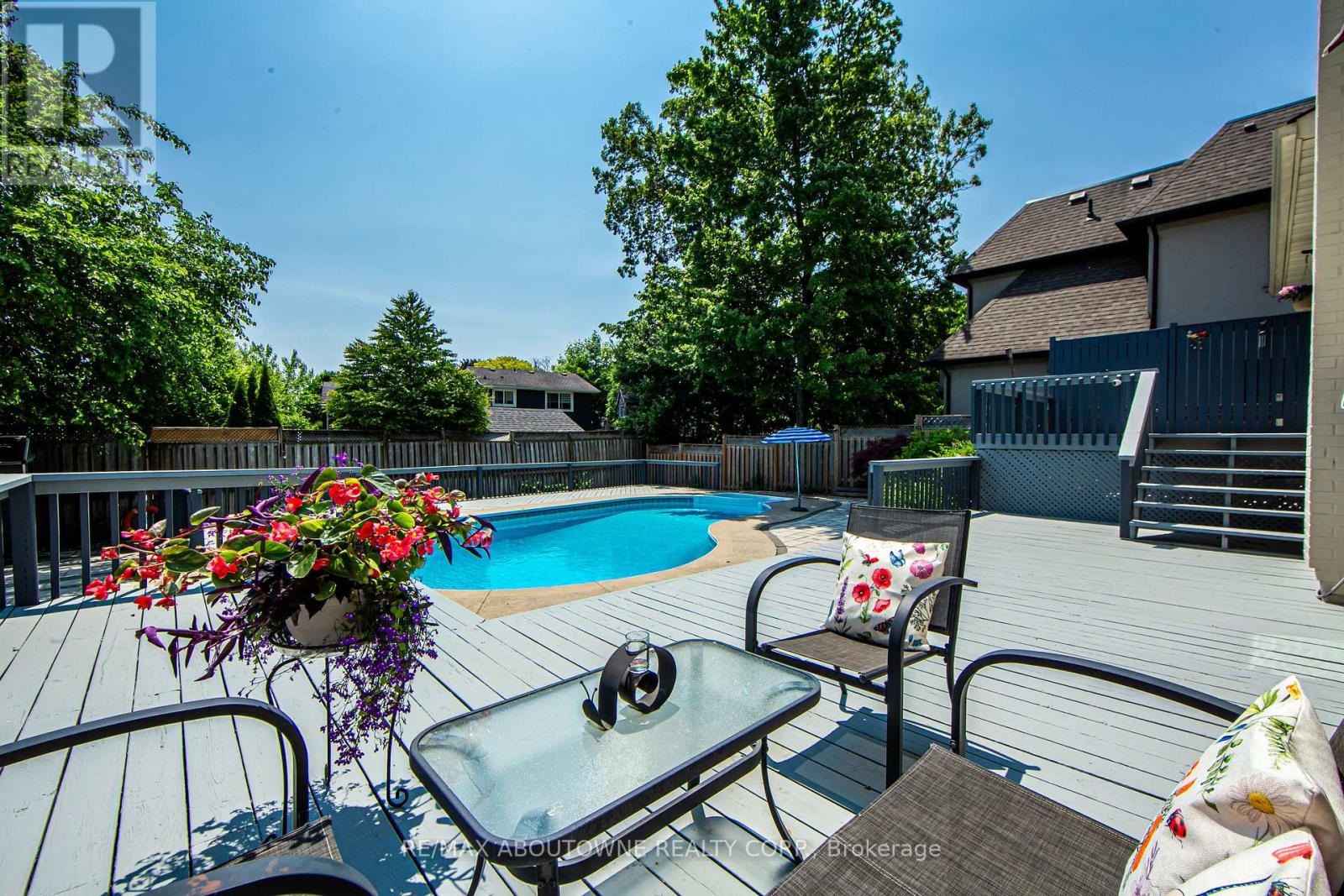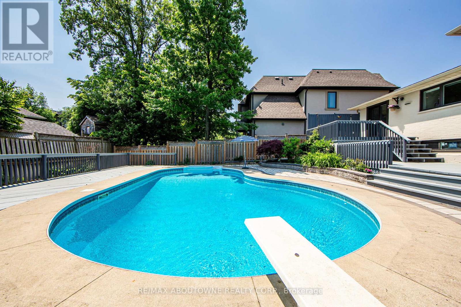 Welcome to this beautifully updated 3+1 bedroom side-split, ideally situated on a spacious 60 x 125 ft lot in a family-friendly neighbourhood. Offering nearly 2,000 sq ft of finished living space, this home blends comfort, style, and functionality. The open-concept main floor is filled with natural light and features hardwood flooring, pot lights, and a renovated white kitchen with a large island perfect for family gatherings and entertaining. The dining area flows seamlessly into the bright living space, with expansive windows offering picturesque views of both the front and back gardens. Upstairs, you'll find three generous bedrooms and a full bathroom, while the lower level provides a 4th bedroom, second full bathroom, large rec room, laundry area and 2nd walk out. Step outside to your private, south-facing backyard complete with a stunning saltwater pool, mature perennial gardens, and ample space for summer entertaining. Extensively updated from top to bottom over the past six years including exterior stucco, roof, furnace just move in and enjoy. Close to Bronte, Coronation Park, walking trails, shopping, excellent schools, highway and GO access close by. Don't miss this exceptional opportunity to make this turnkey property your home just in time for summer! (id:51158)